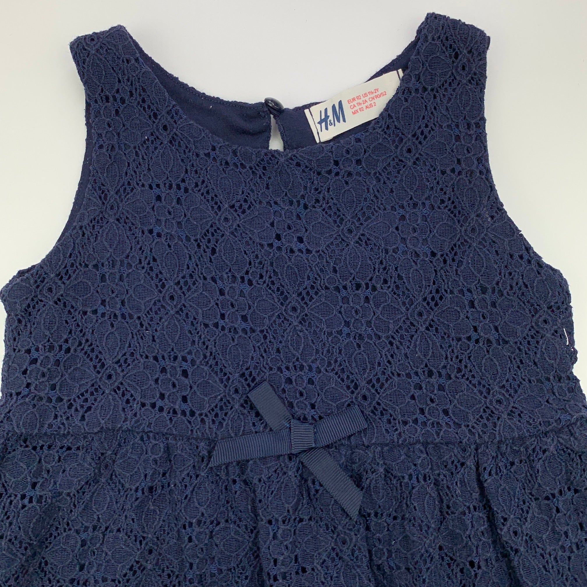 H&M, lined navy floral lace party dress, EUC, size 2, L: 45cm