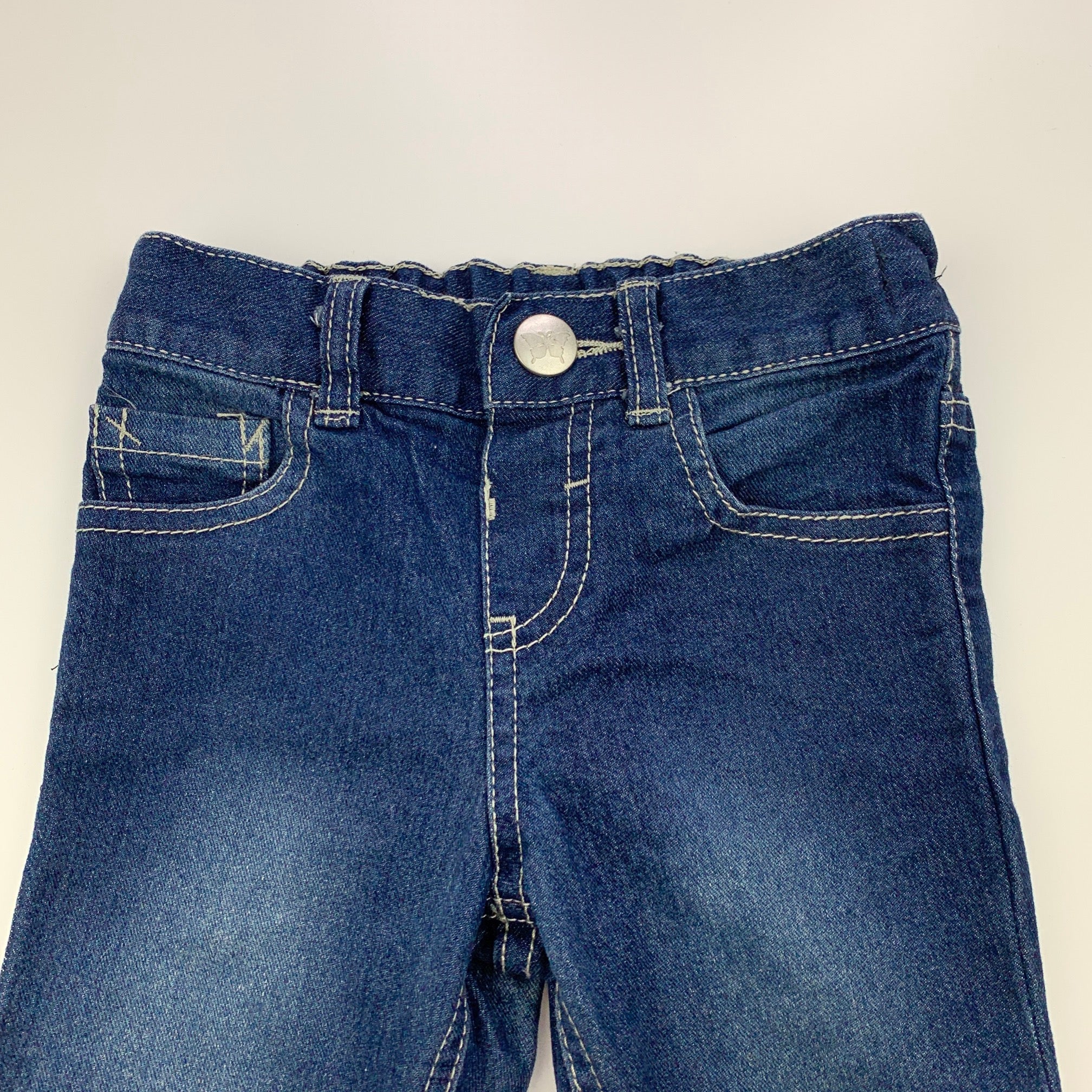 H&T blue stretch denim jeans, adjustable, Inside leg: 27.5cm, size 1, Pre-loved