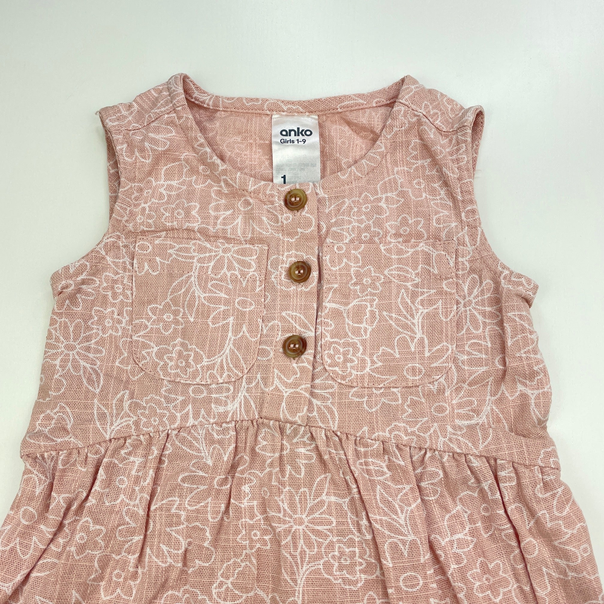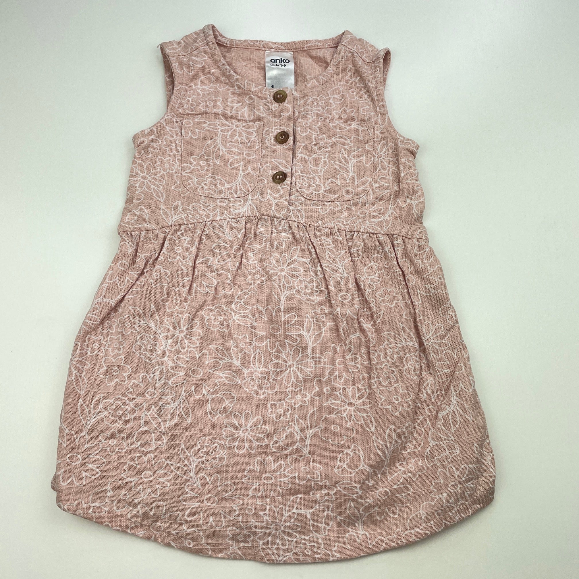 Anko, pink & white floral cotton dress, EUC, size 1, L: 41cm