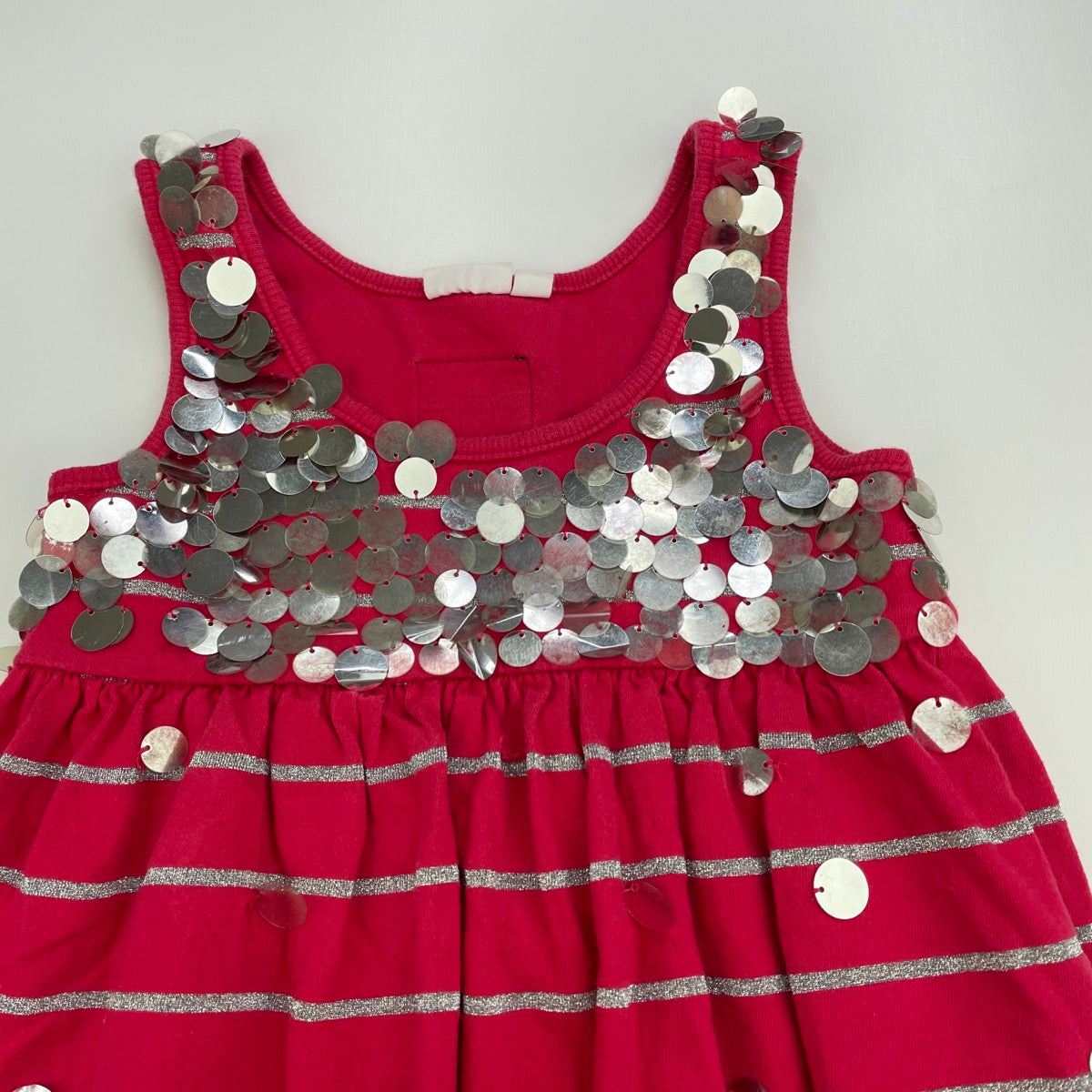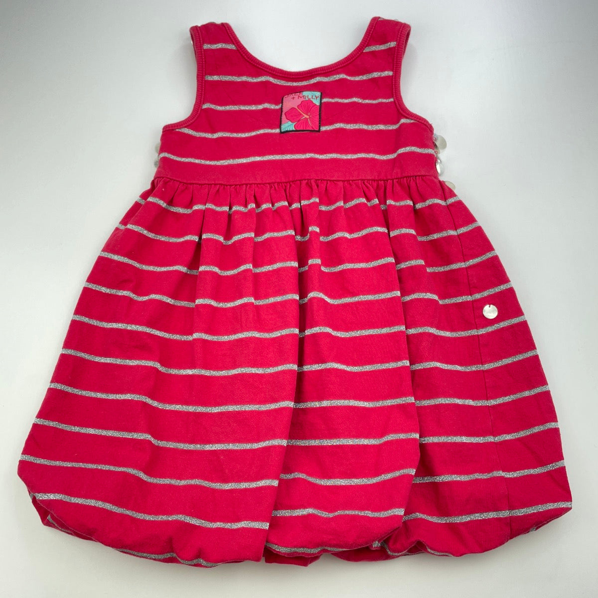 Girls Jack & Milly, red & silver cotton bubble dress, sequins, FUC, size 4, L: 50cm