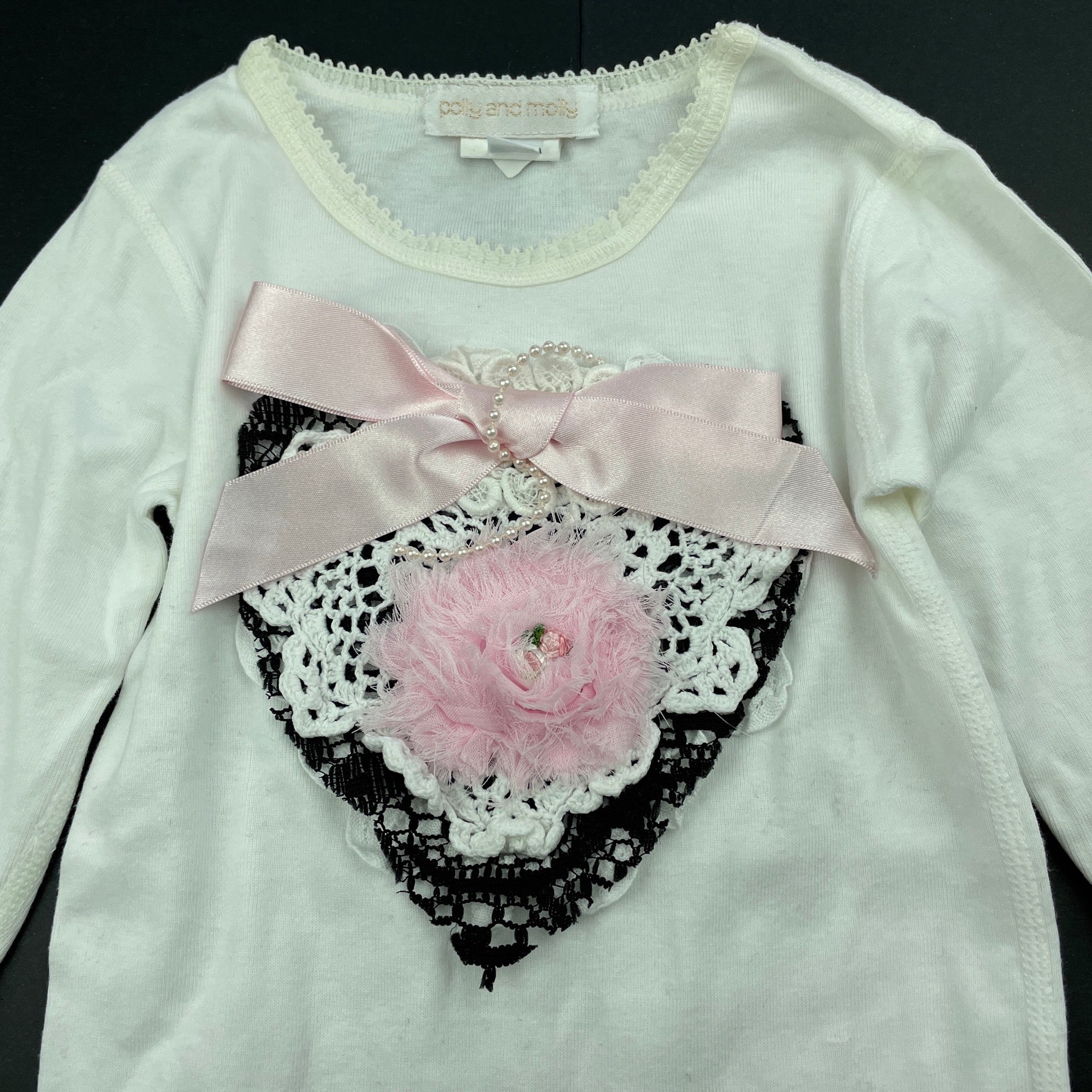 Polly and Molly, embellished long sleeve top, L: 45cm, GUC, size 2,