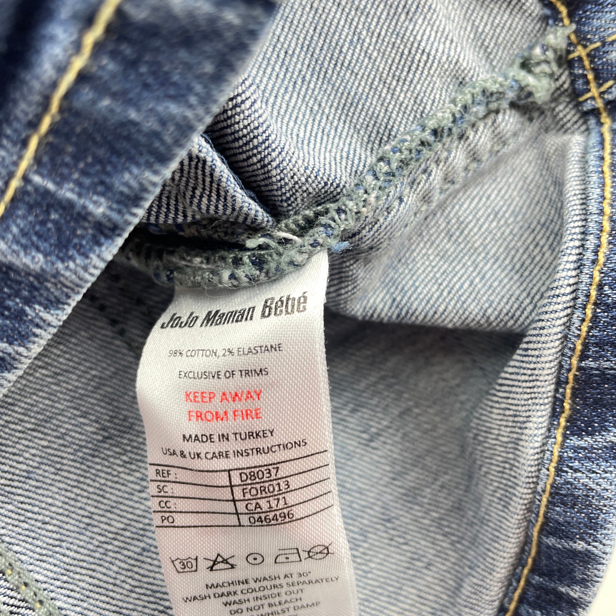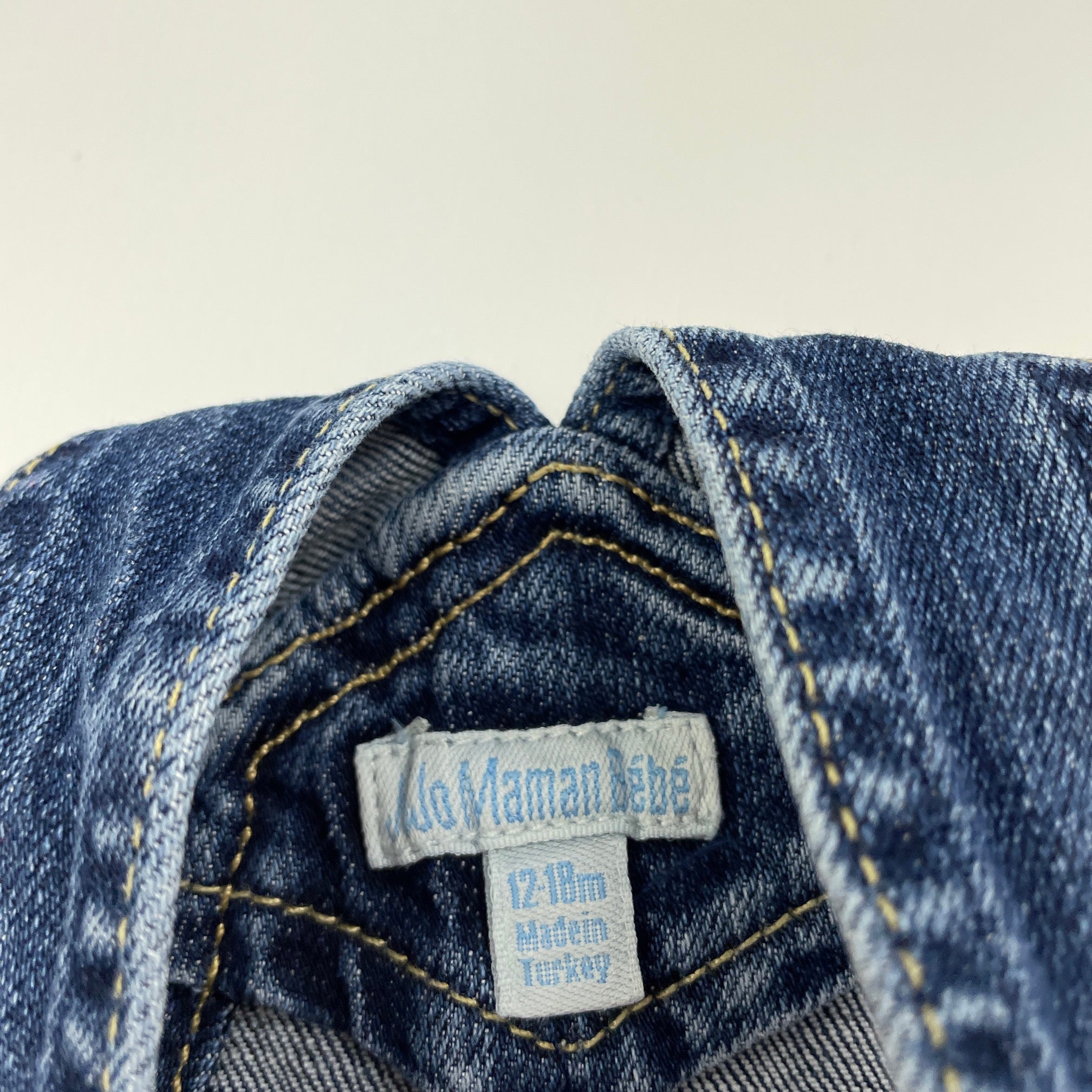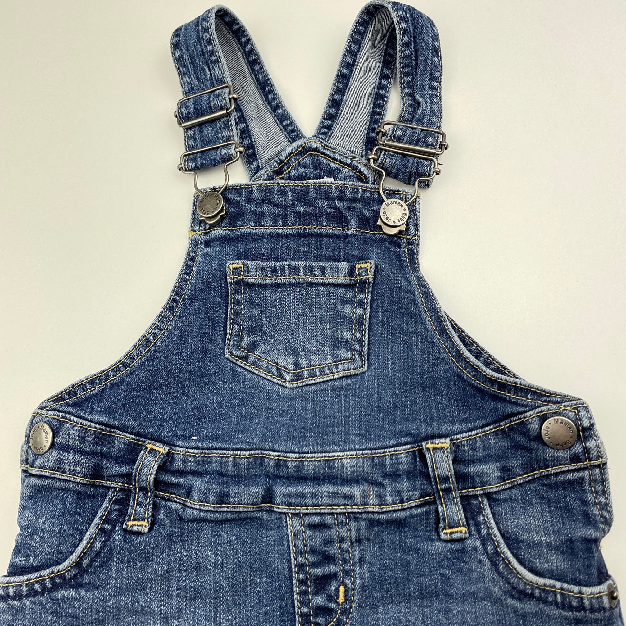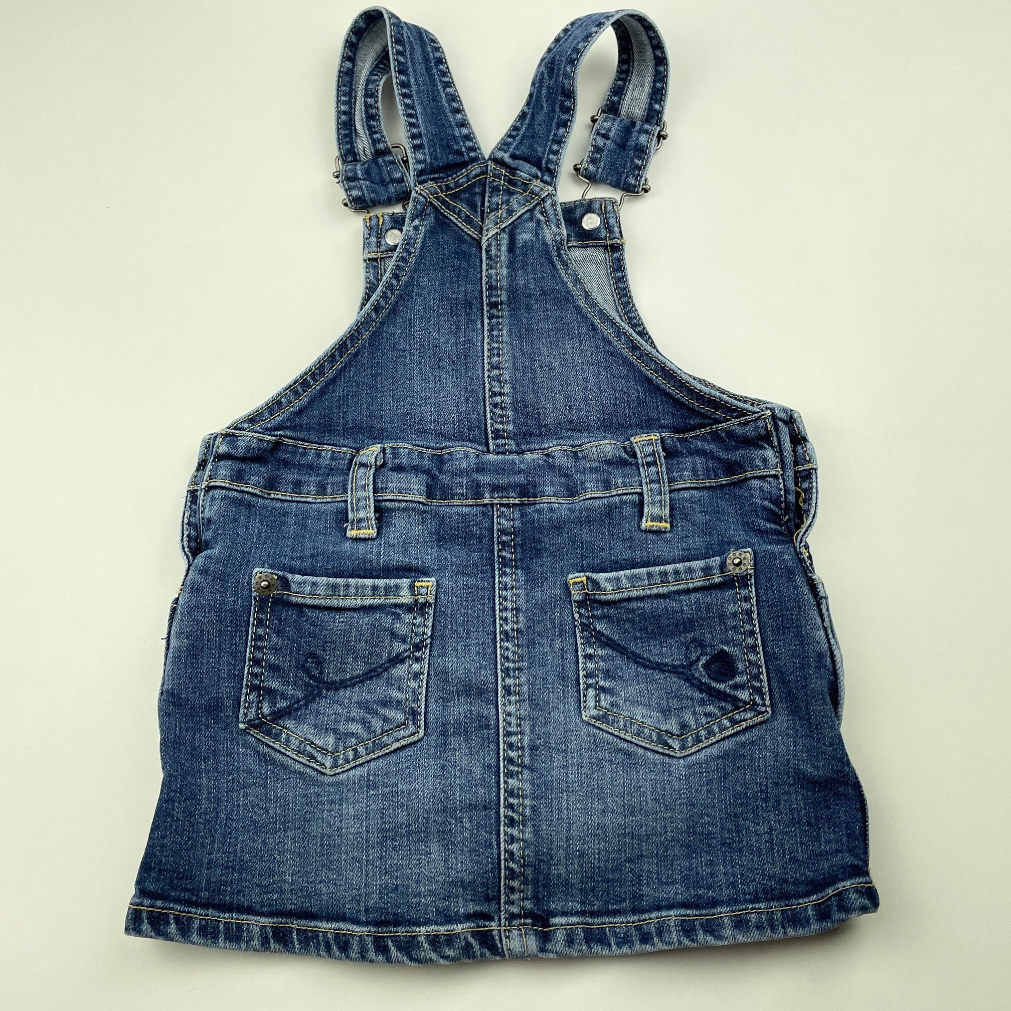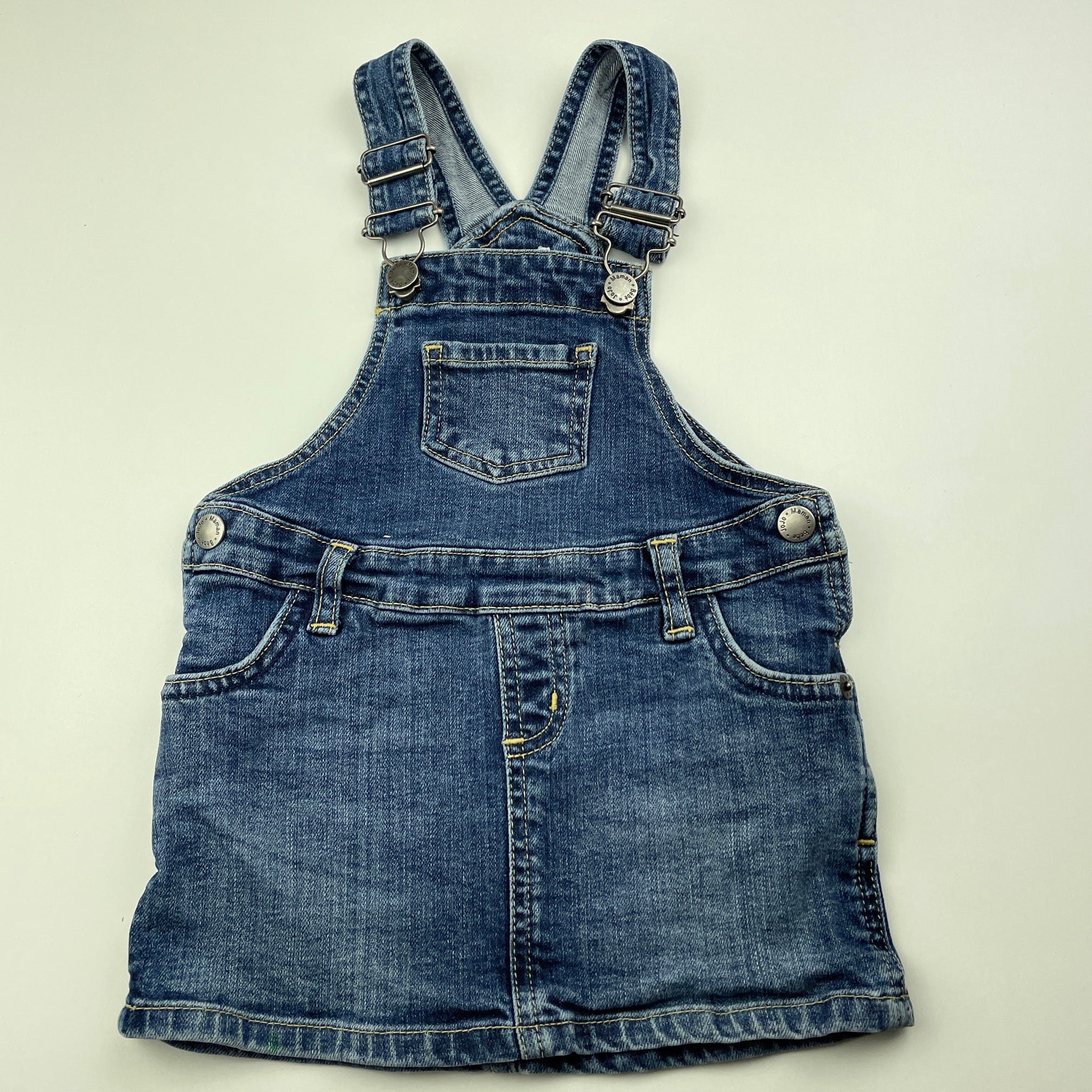 JoJo Maman Bebe, stretch denim overalls dress / pinafore, GUC, size 1, L: 44cm