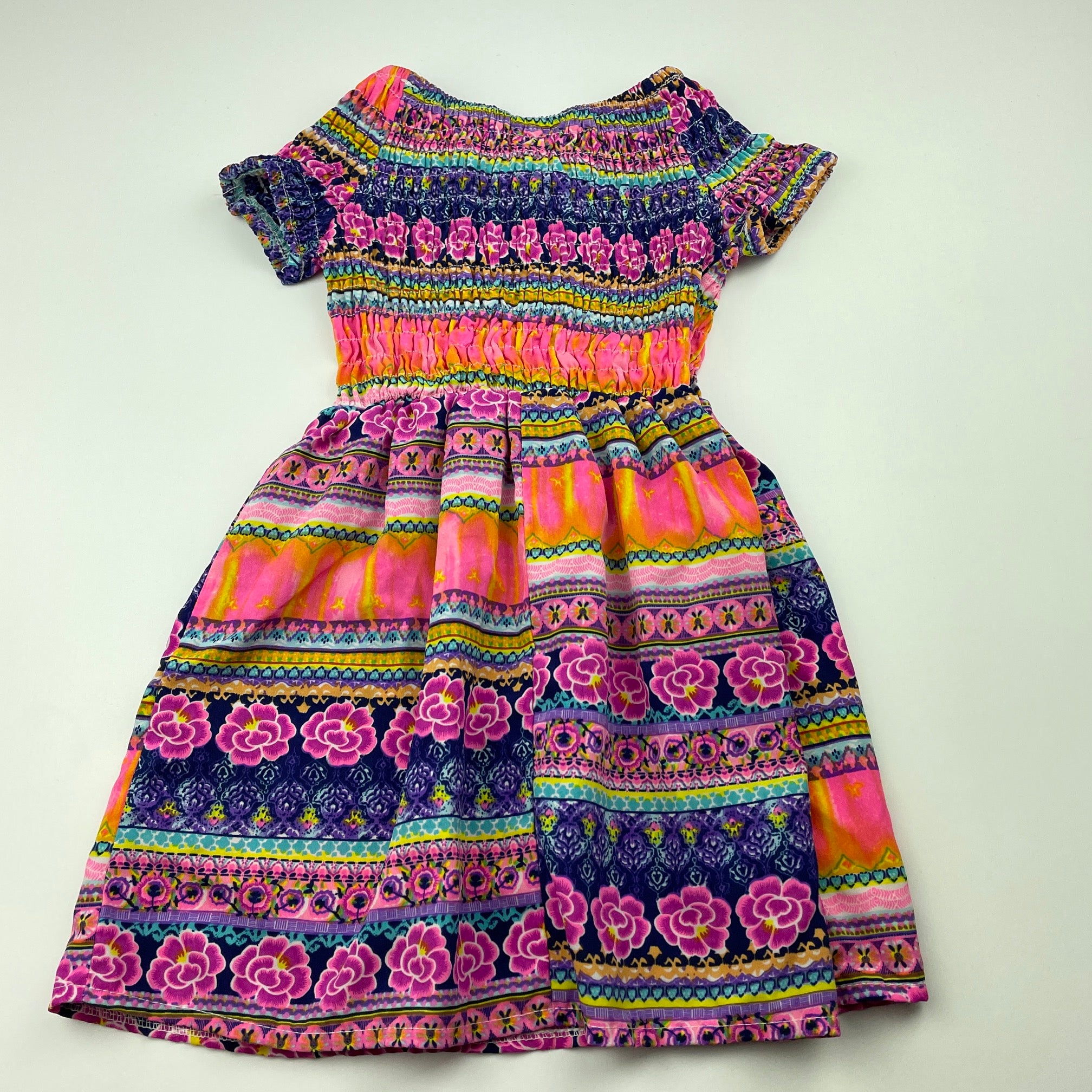 Girls Mango, colourful lightweight party dress, GUC, size 1, L: 45cm