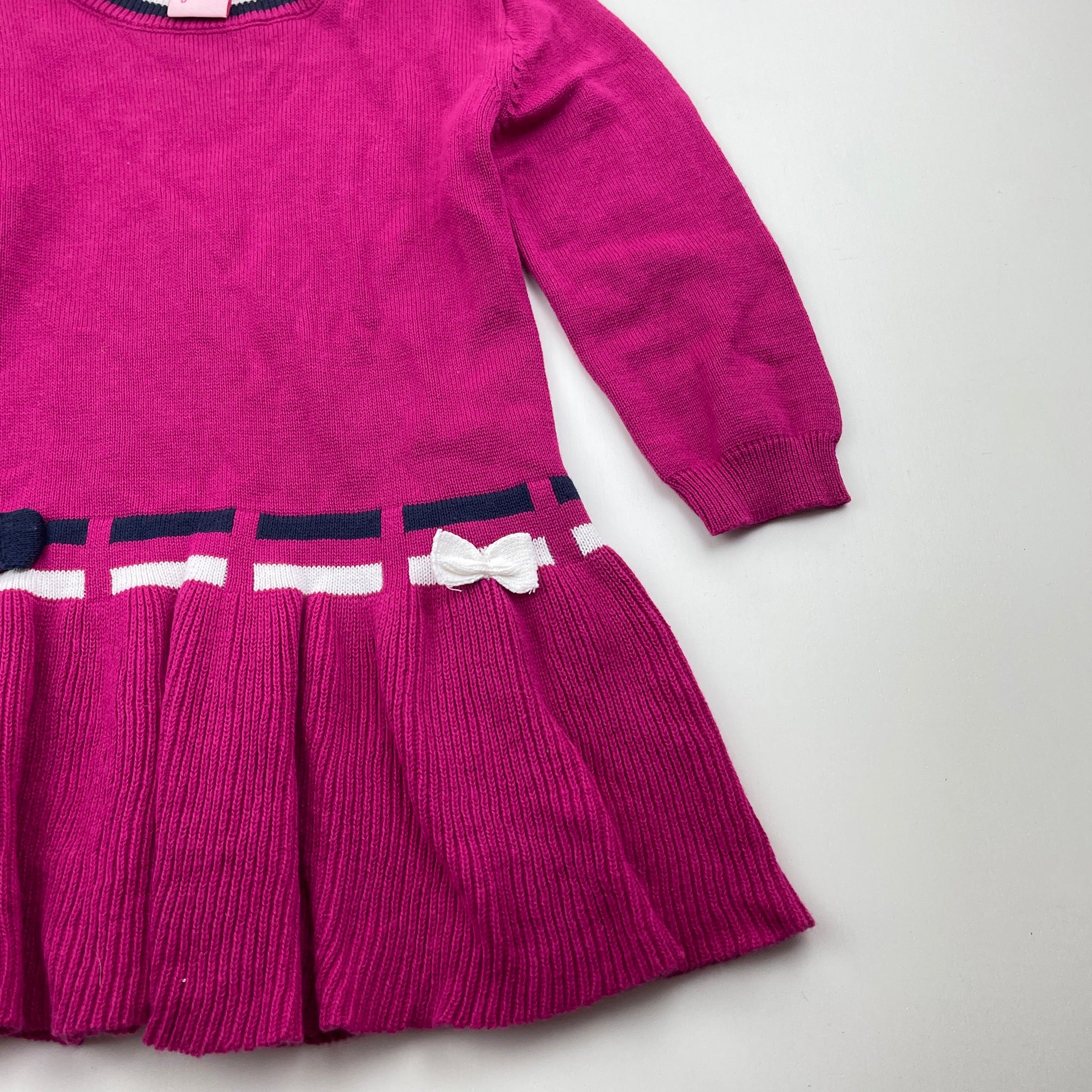 Juniors, knitted cotton long sleeve dress, EUC, size 1-2, L: 40cm