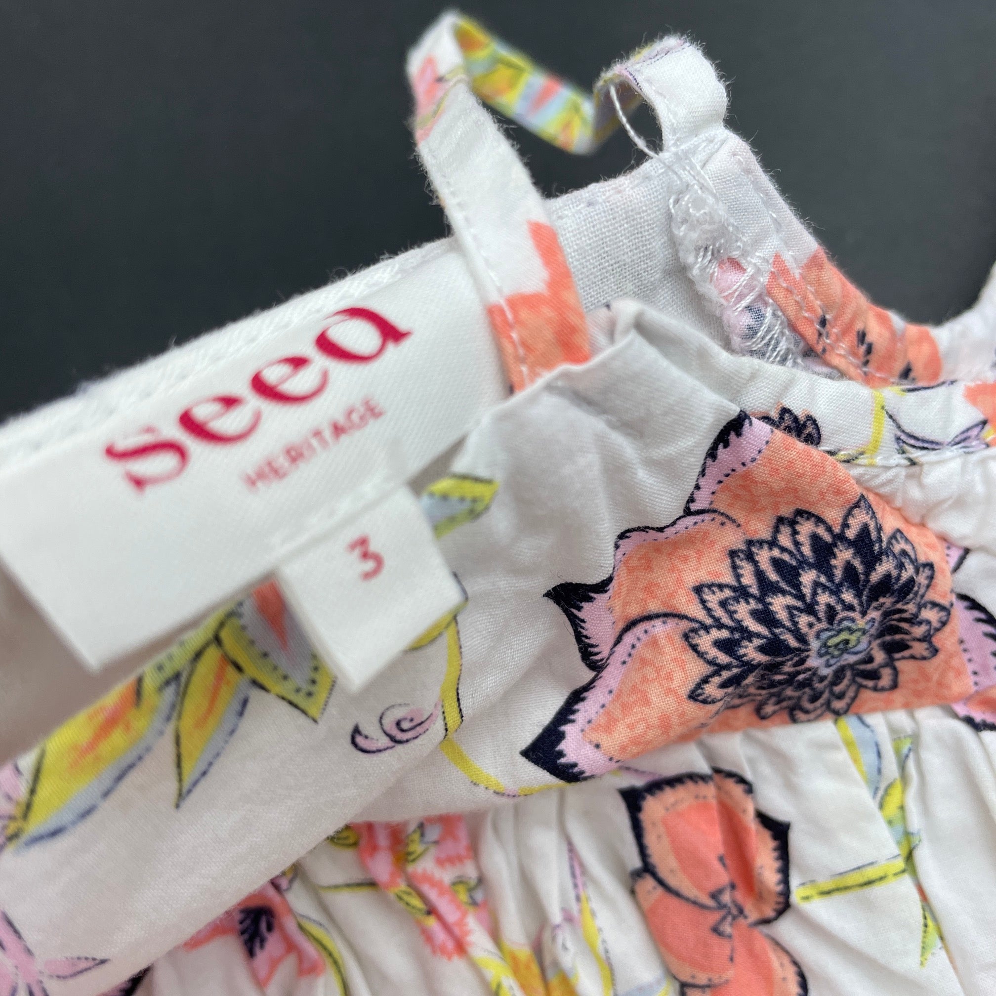 Girls Seed, lined lightweight floral cotton summer dress, EUC, size 3, L: 52cm