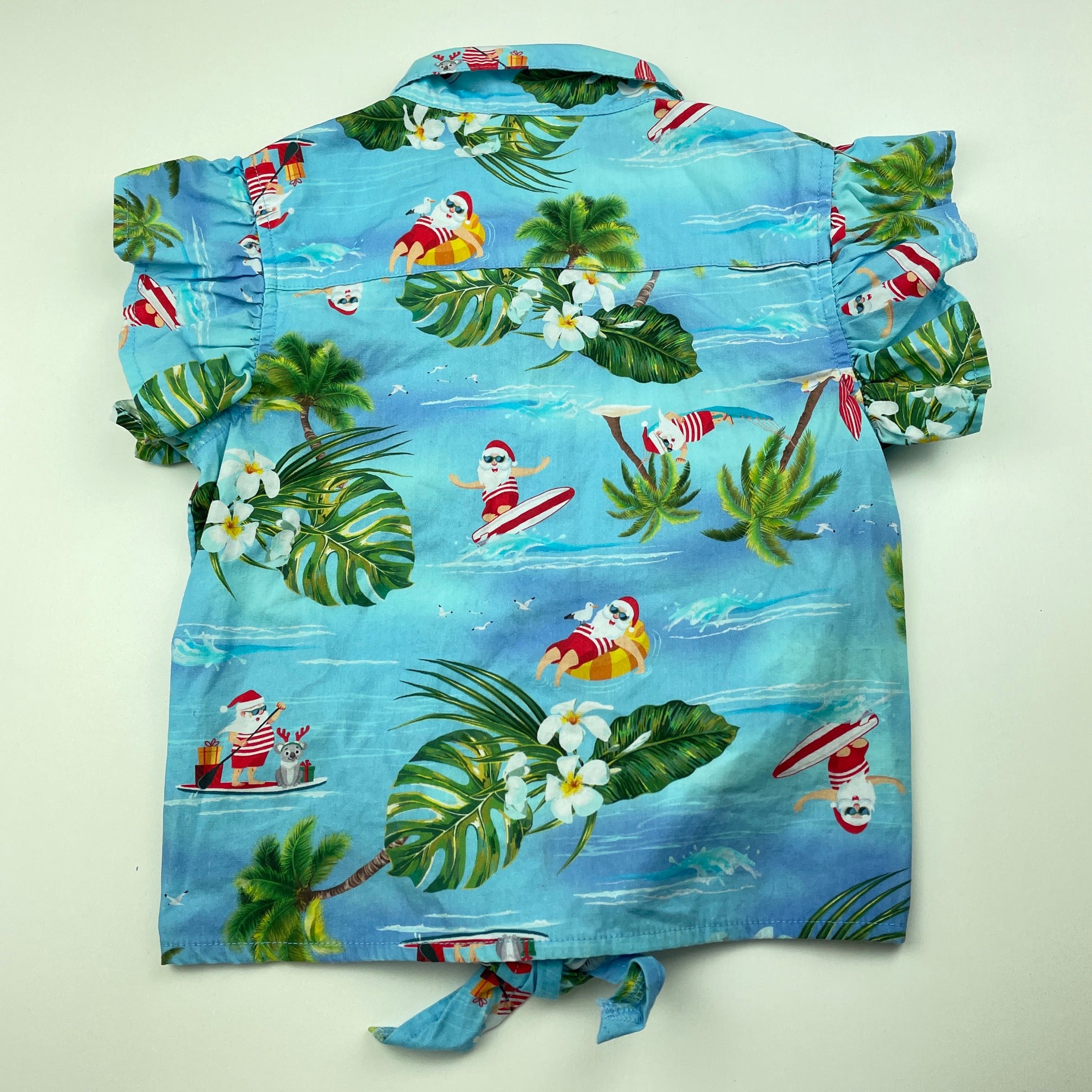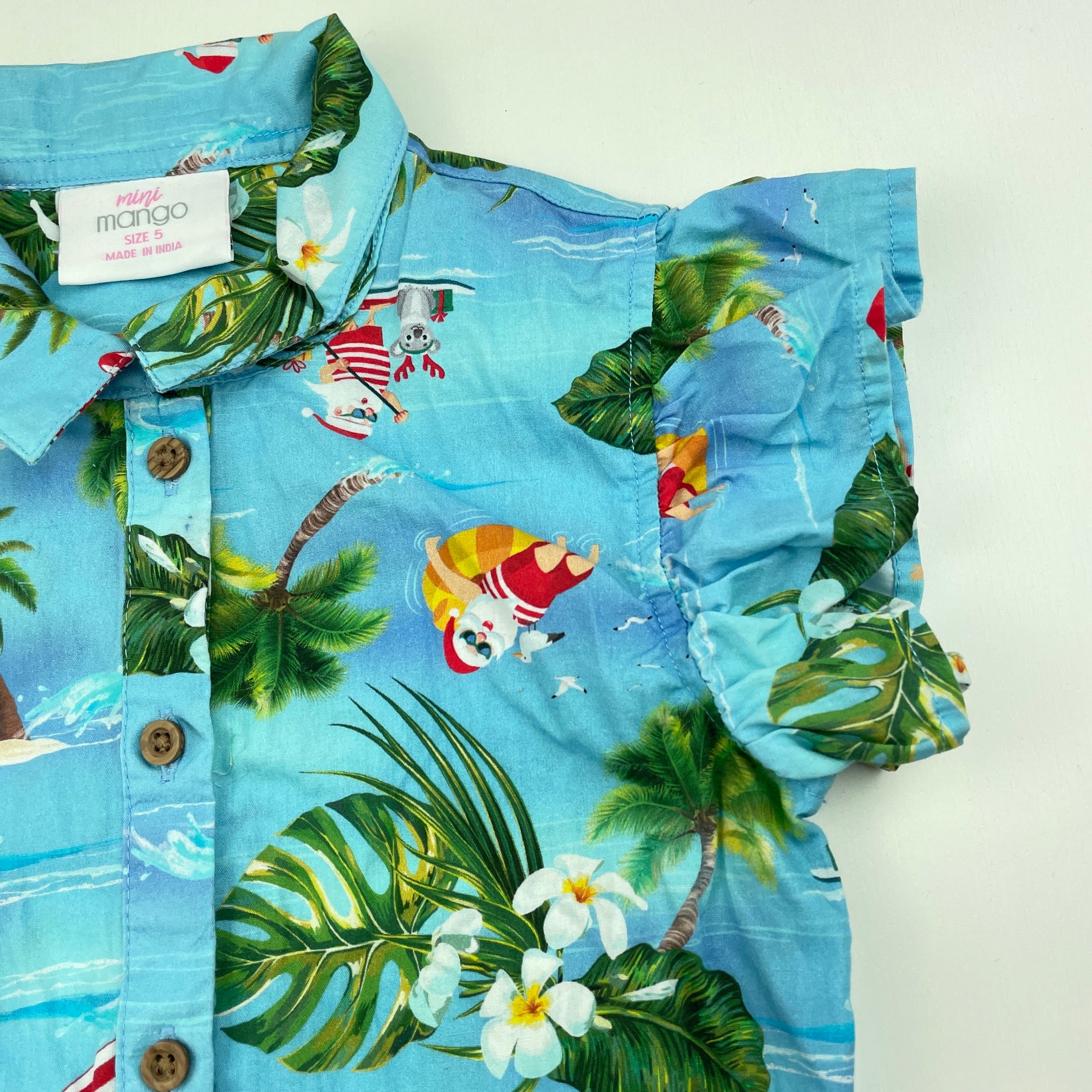 Mango, tie front cotton Christmas top, EUC, size 5,