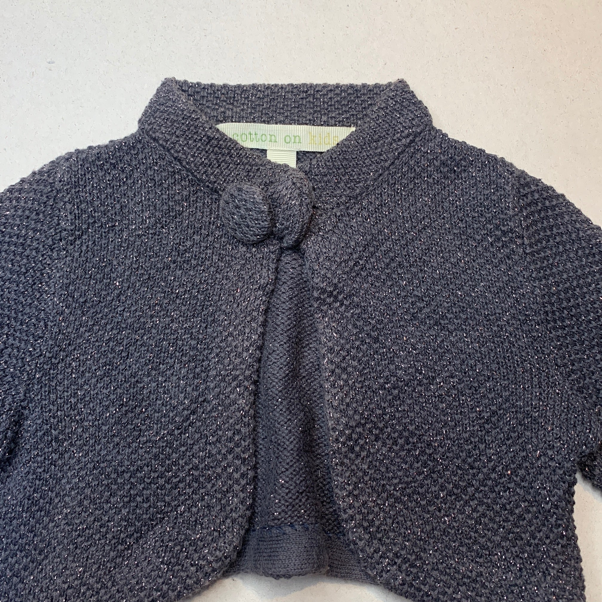 Cotton On, grey metallic knitted bolero cardigan, FUC, size 1-2,