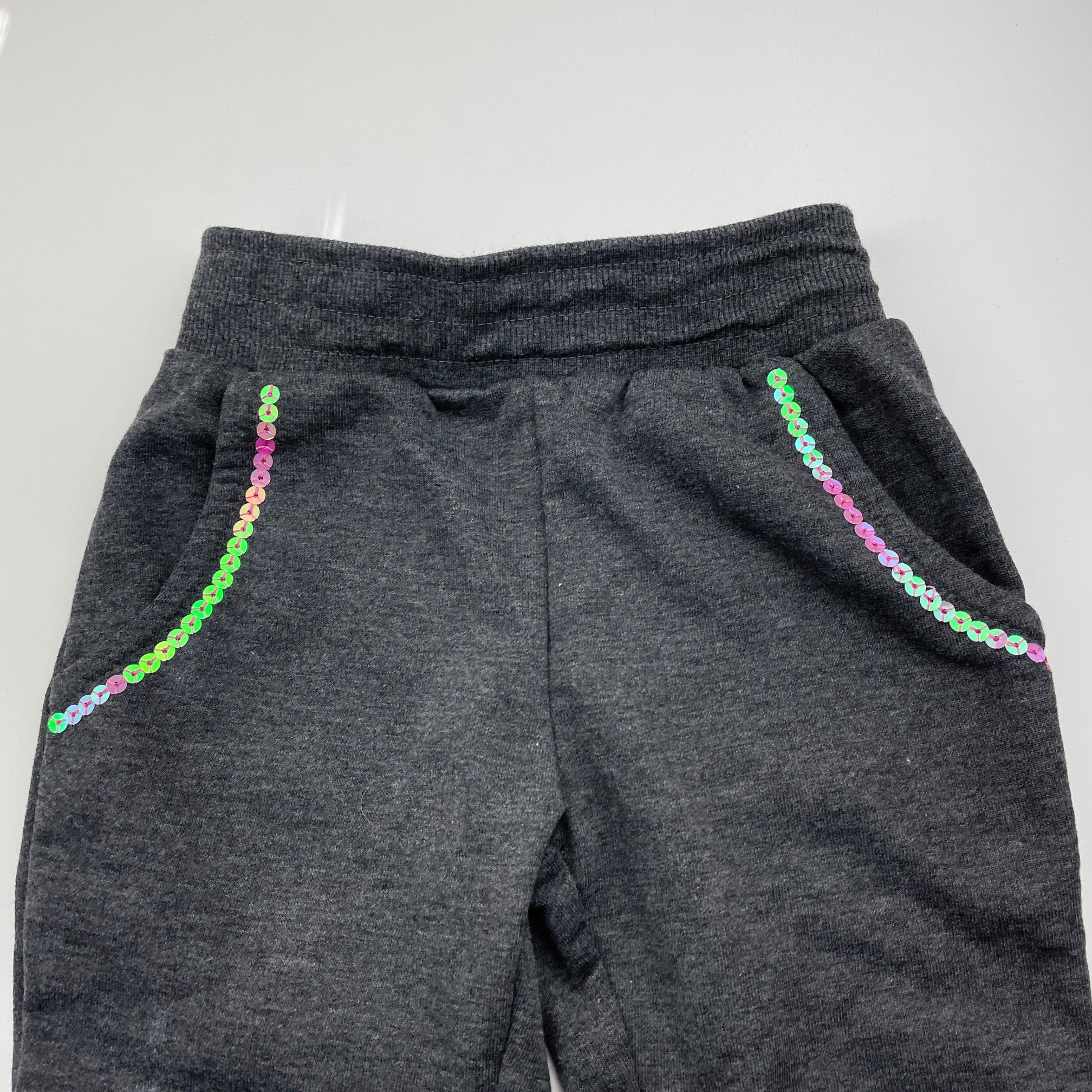 H&T, grey marle casual pants, elasticated, Inside leg: 31.5cm, GUC, size 2,