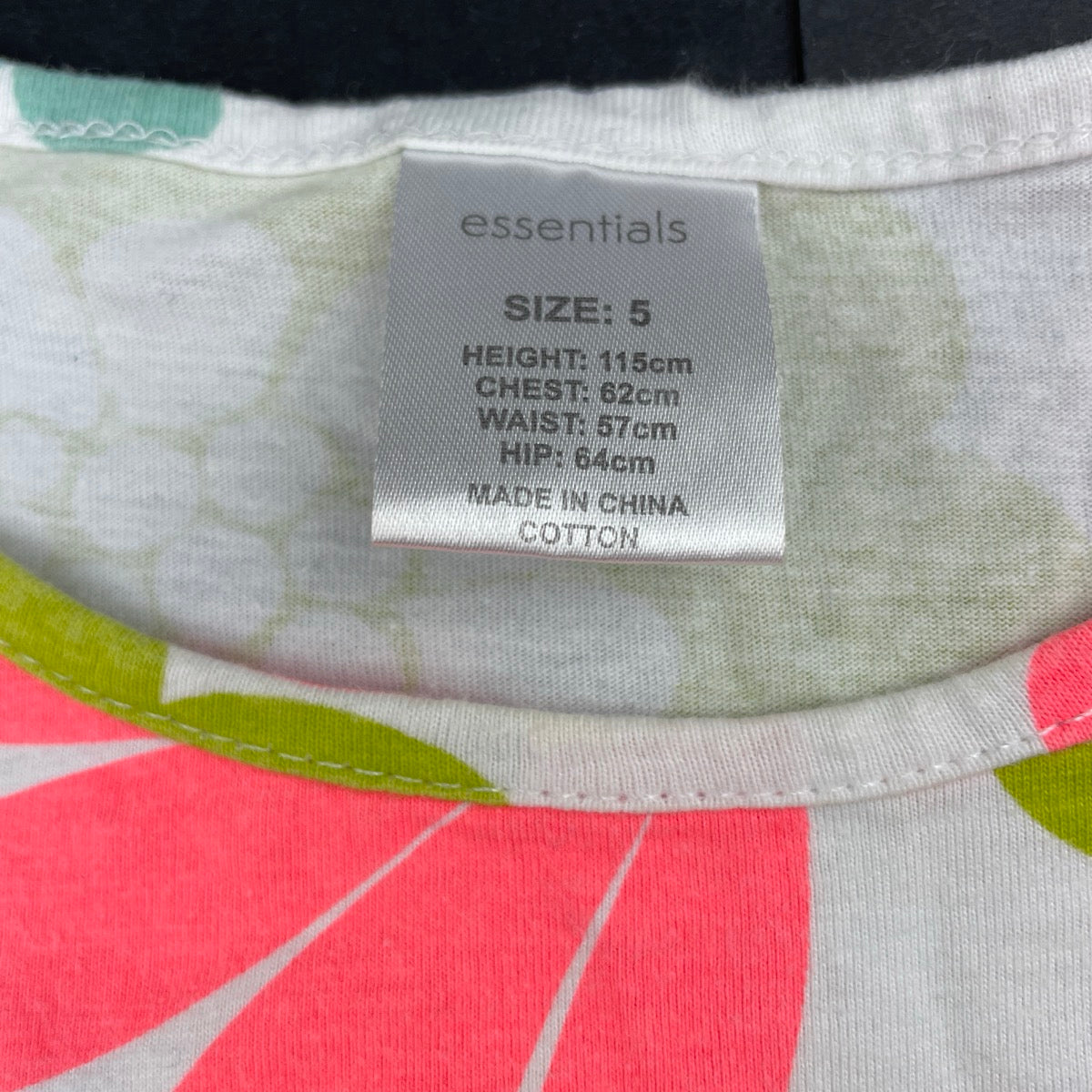 Girls Essentials, colourful floral cotton summer top, FUC, size 5,
