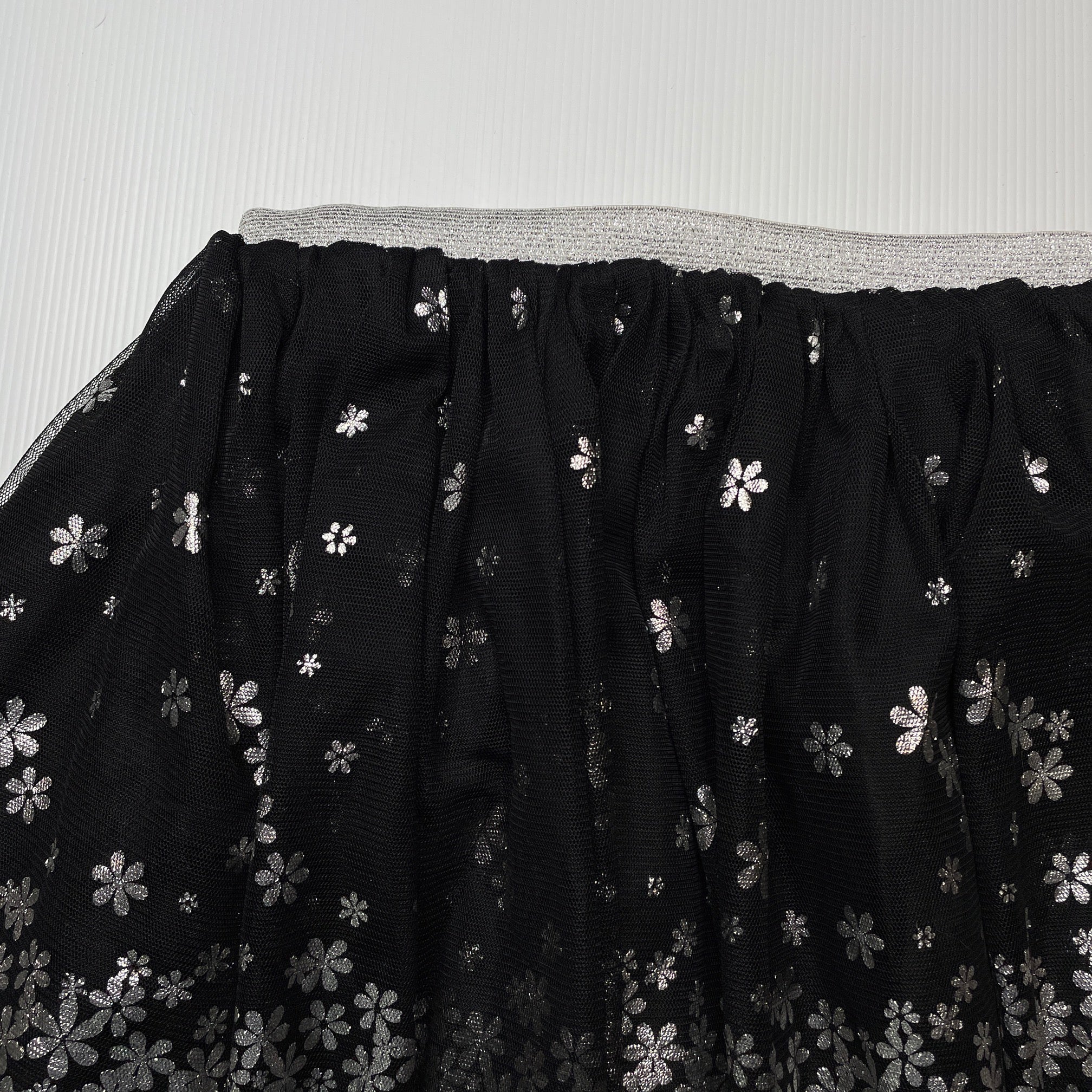 Girls Mango, lined black & silver tulle skirt, elasticated, L: 26.5cm, EUC, size 5,
