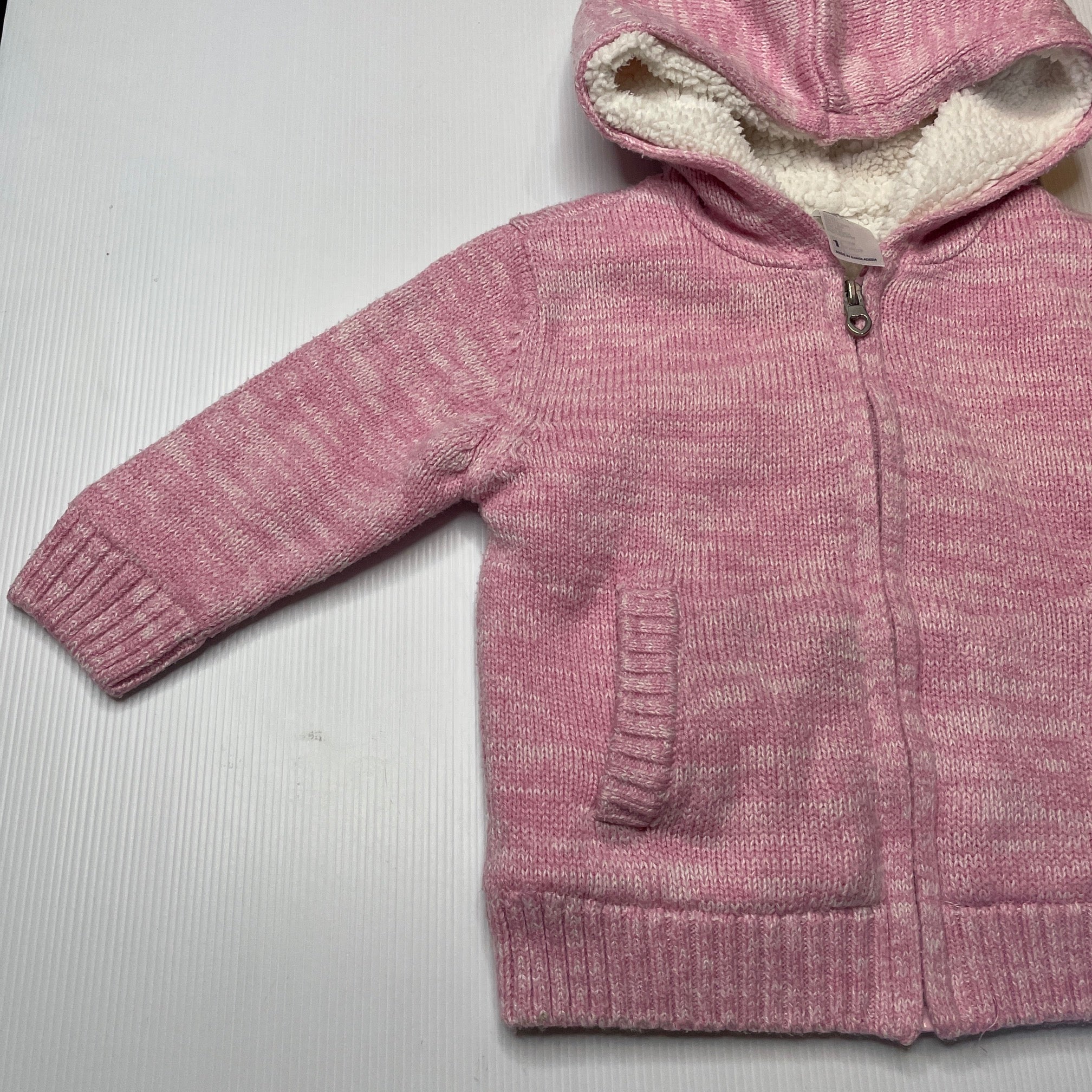 Anko, fleece lined knit zip hoodie sweater, light mark hood, FUC, size 1,