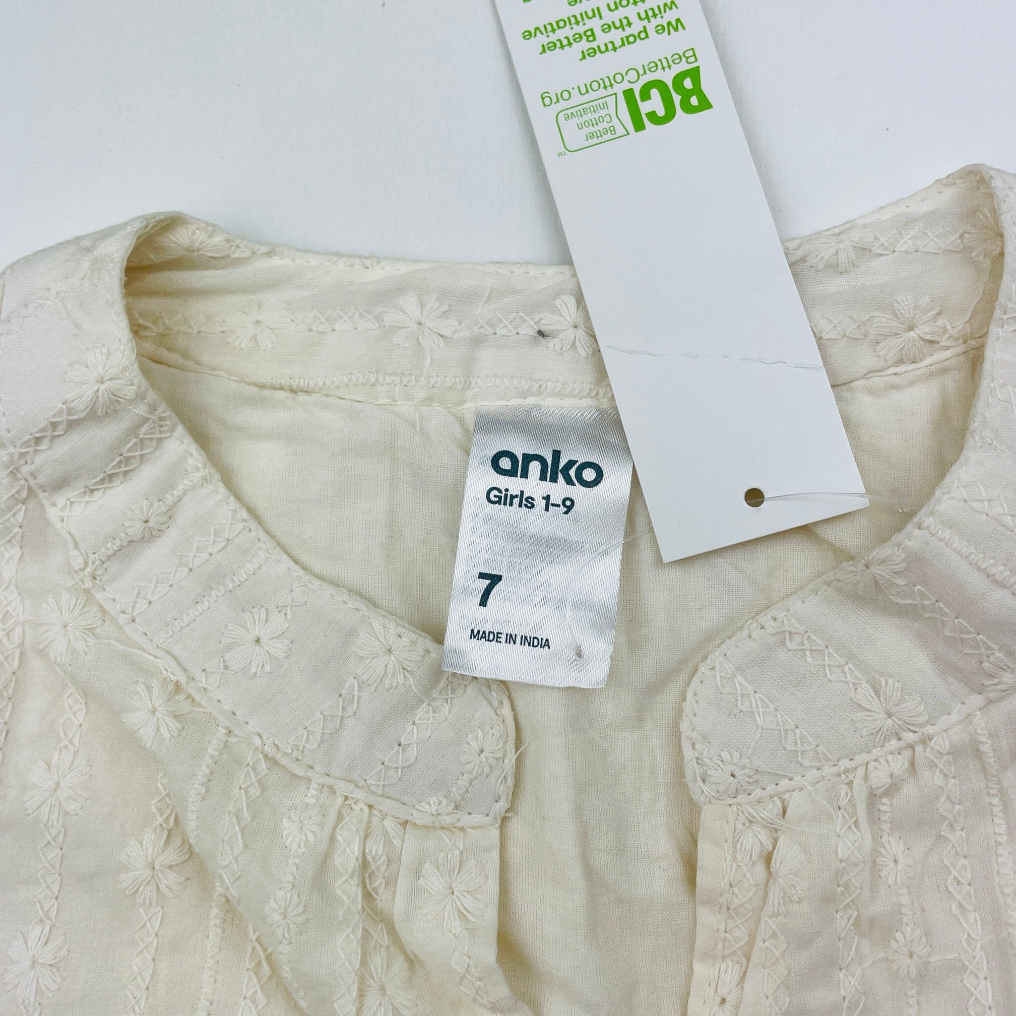 Anko lined embroidered cotton dress, size 7, BNWT