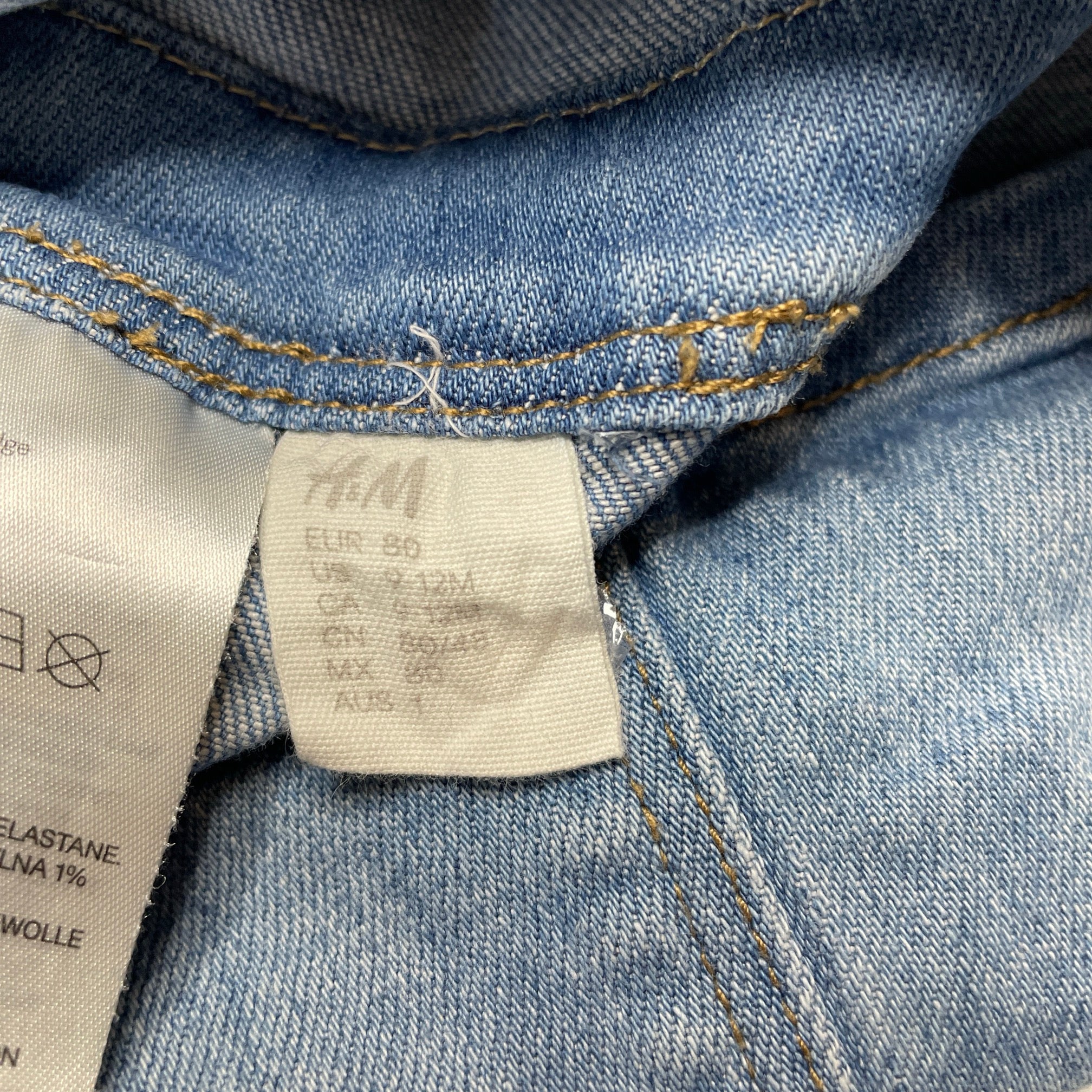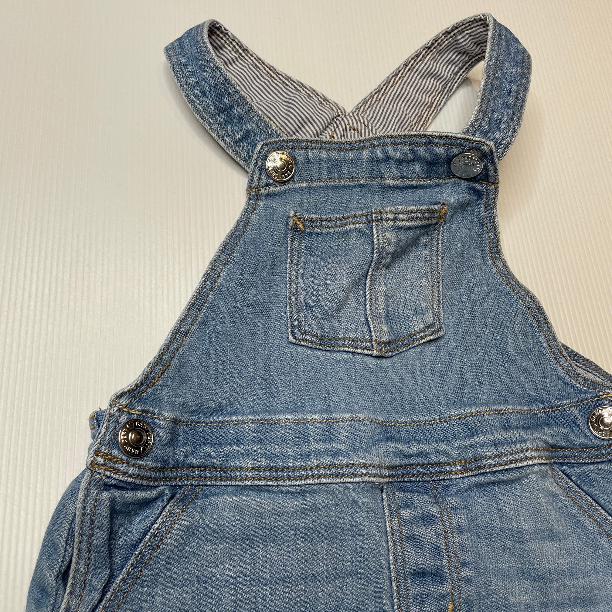 H&M, stretch denim overalls dress / pinafore, GUC, size 1, L: 43cm