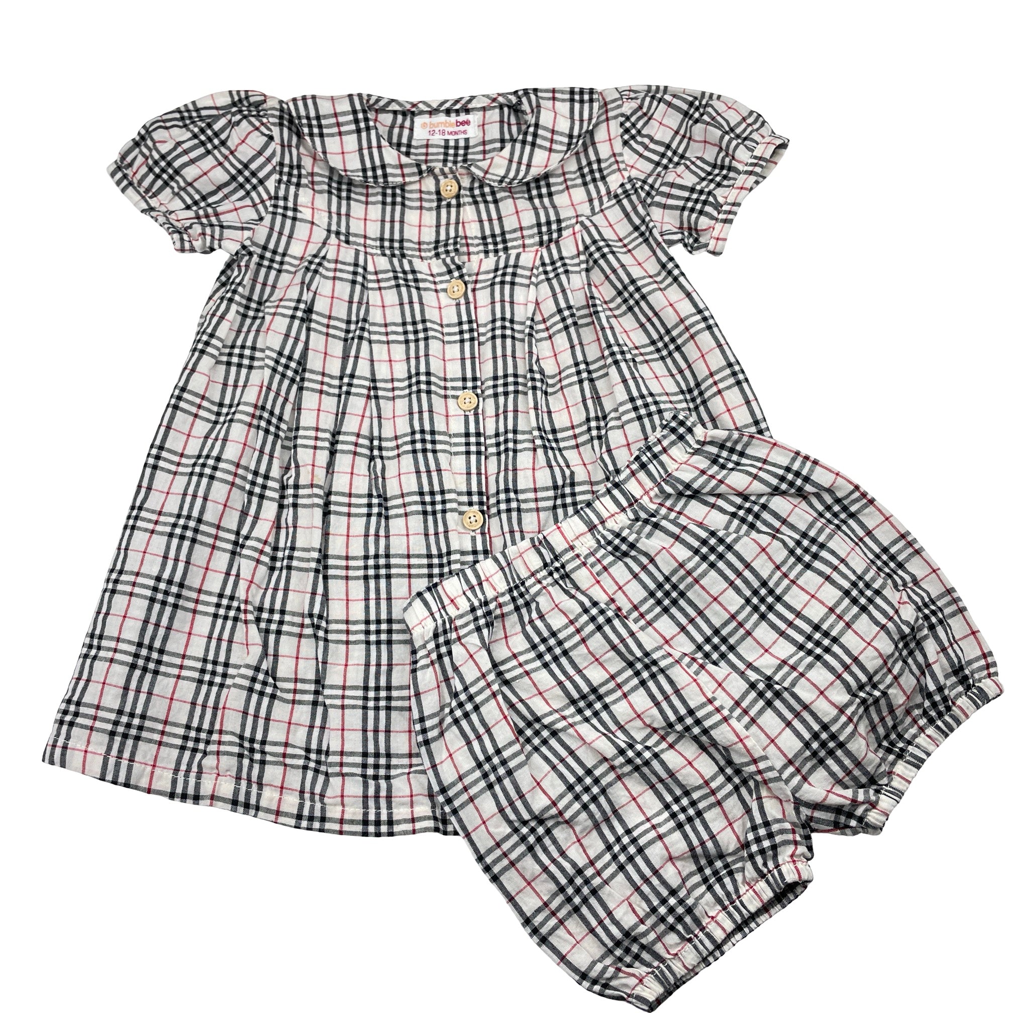 bumblebee checked lightweight cotton dress & bloomers, size 1, Pre-loved