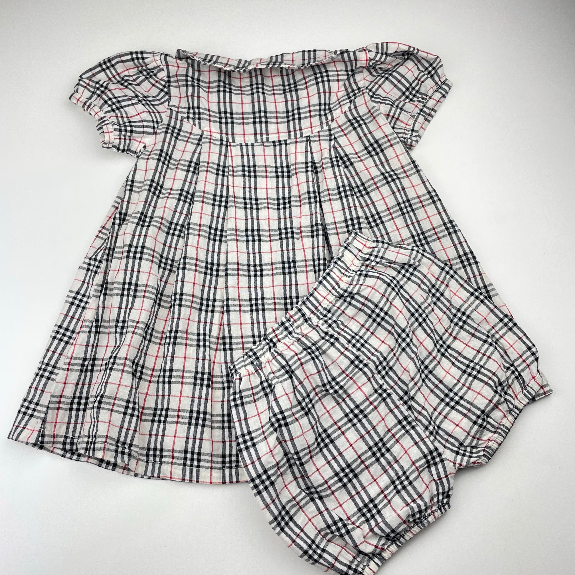 bumblebee, checked lightweight cotton dress & bloomers, FUC, size 1, L: 43cm