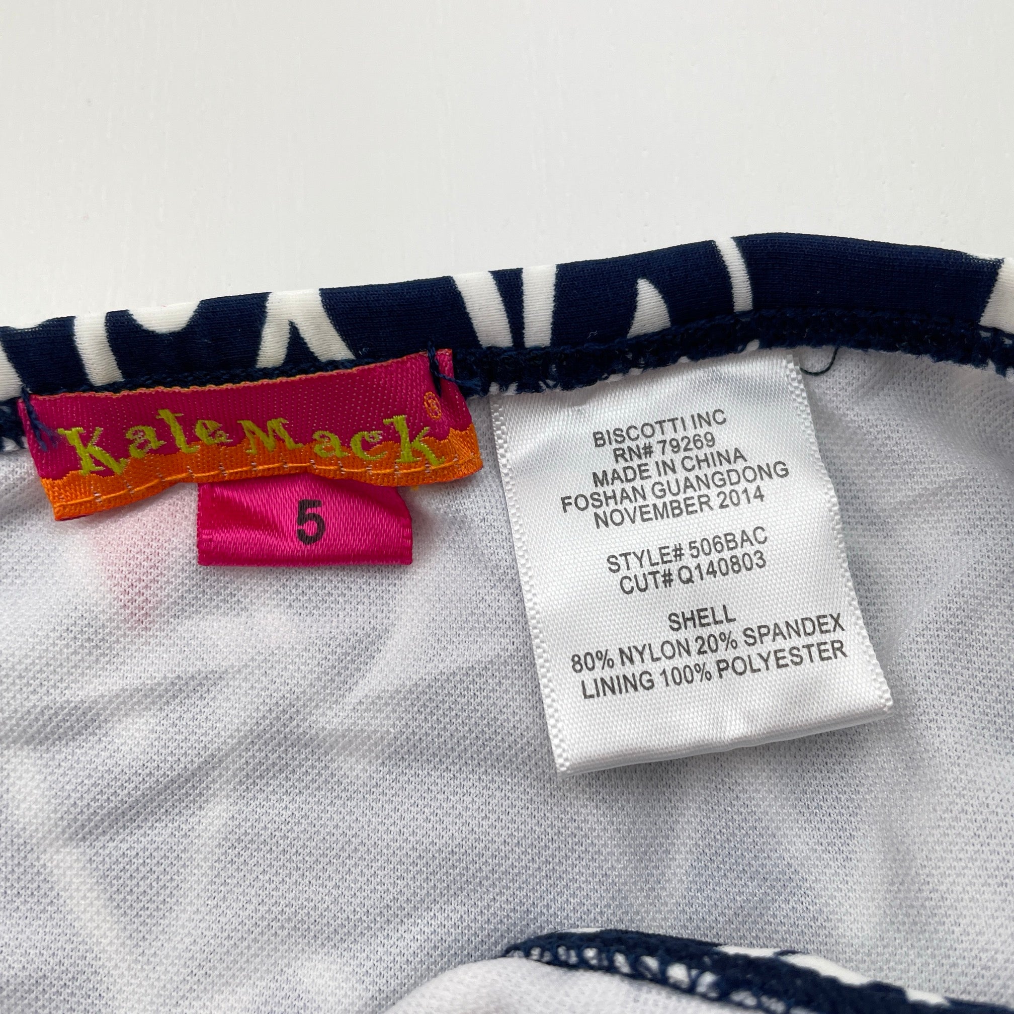 Kate Mack, navy & white swim top & bottoms, EUC, size 5,