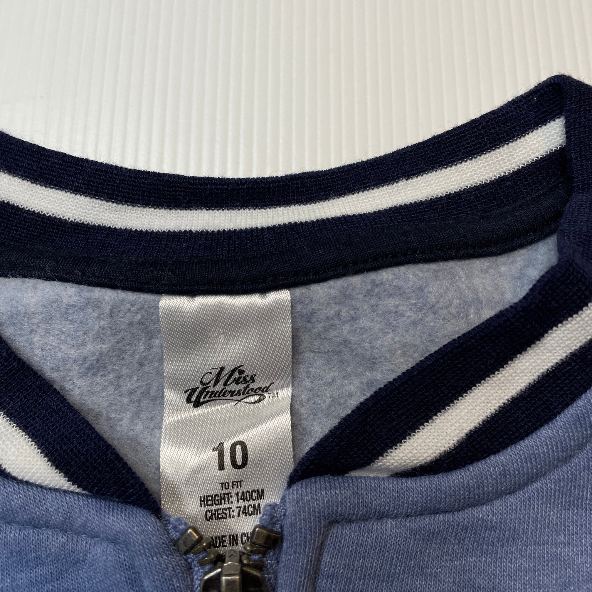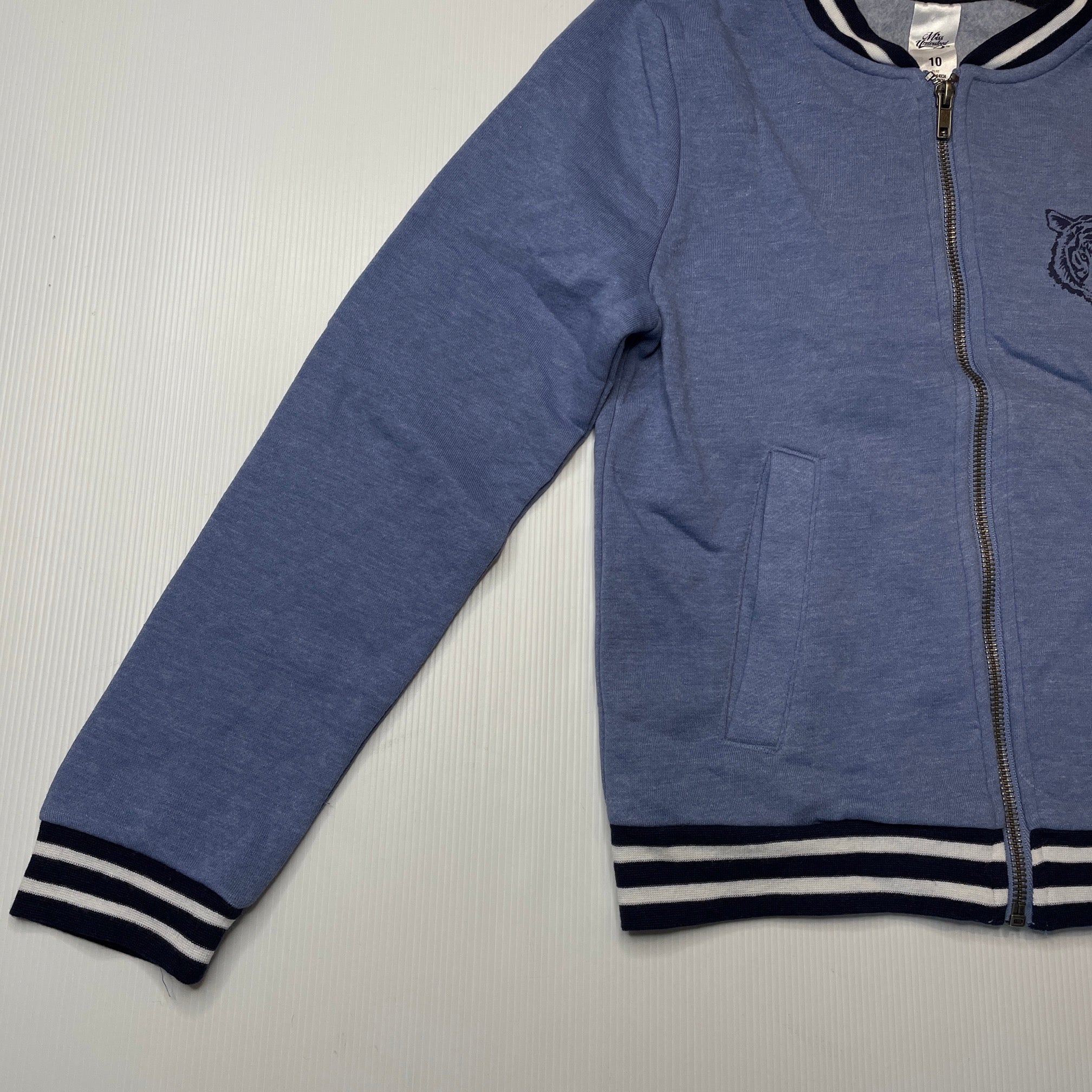 Miss Understood, fleece lined zip up sweater, tiger, EUC, size 10,