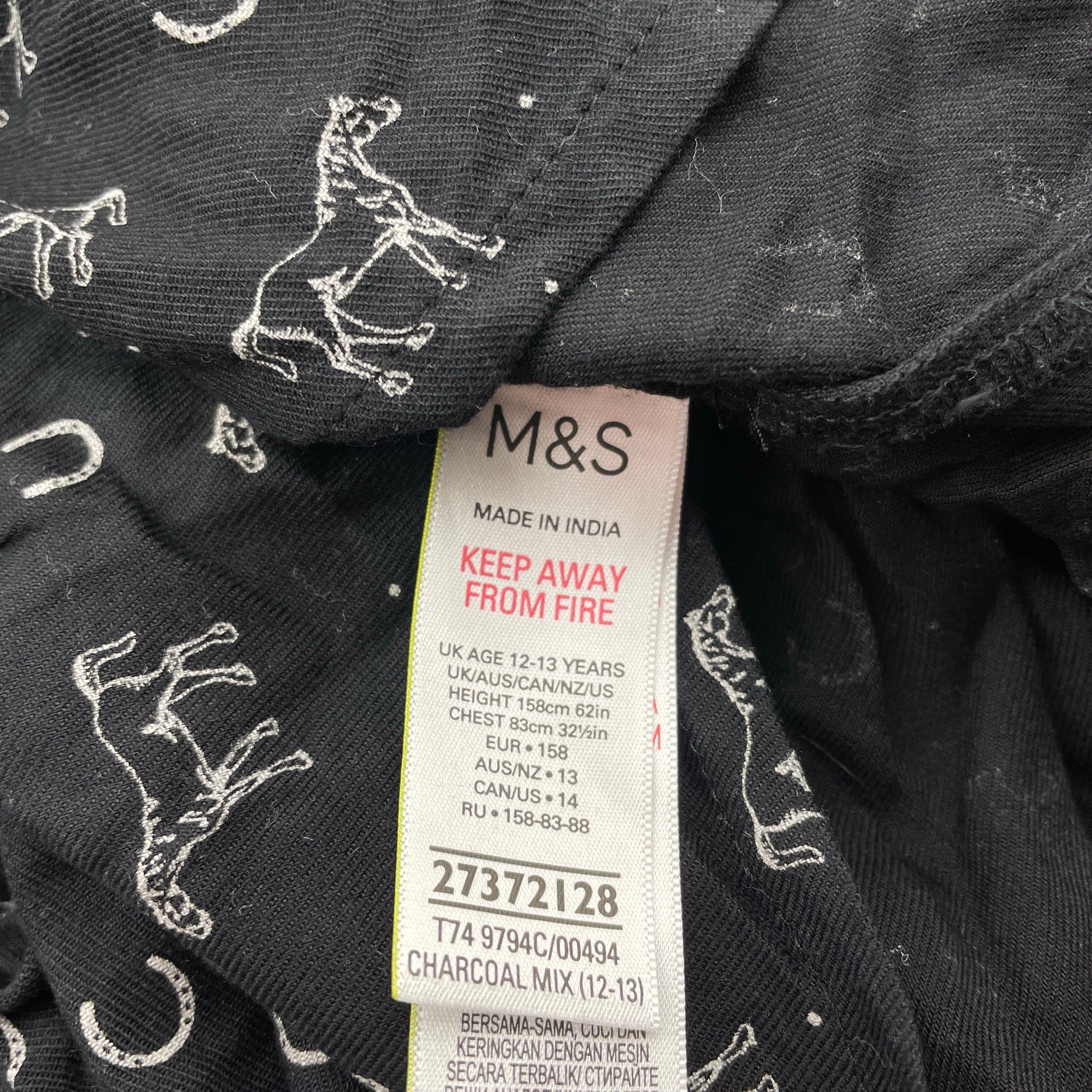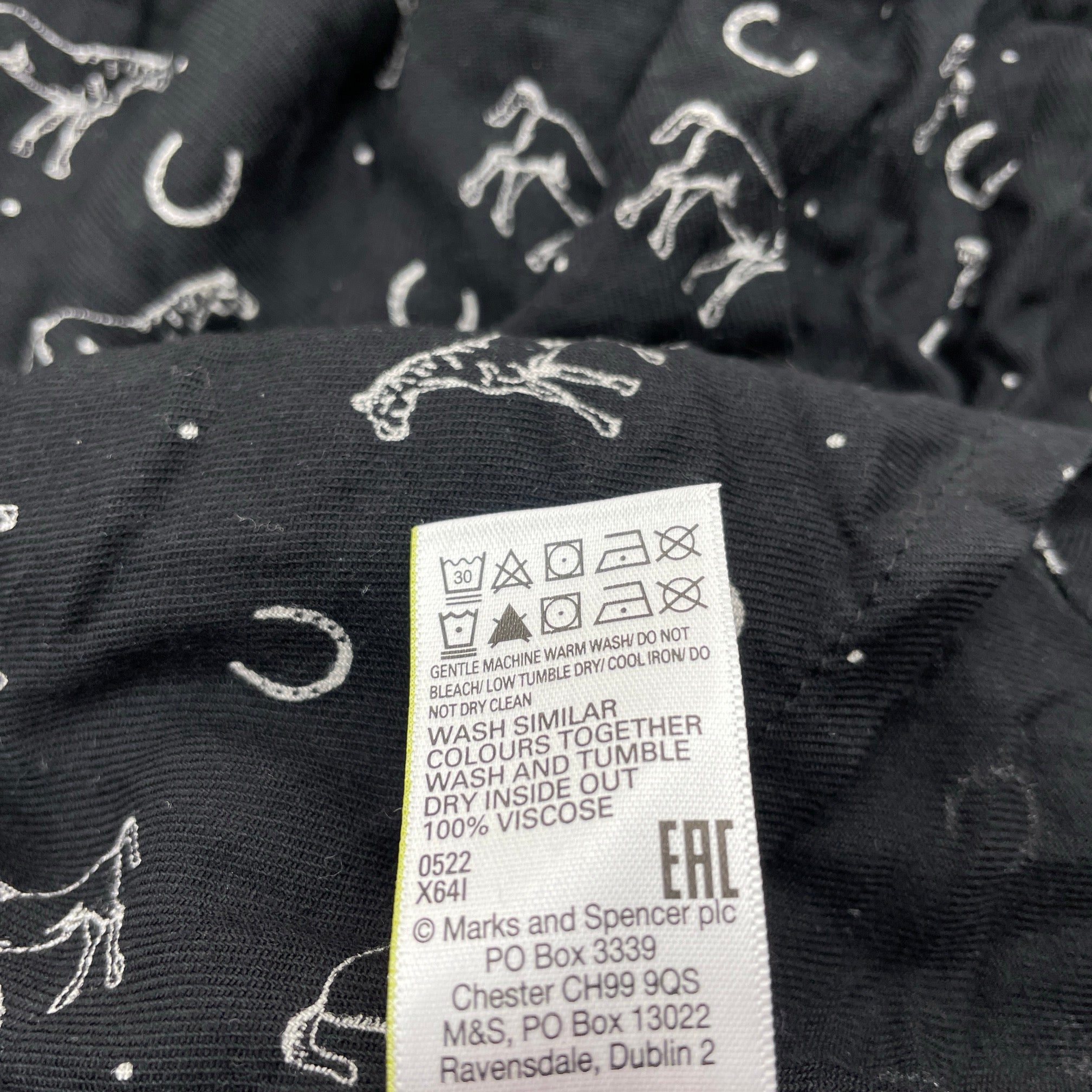 M&S, viscose long sleeve dress, horses, EUC, size 12-13, L: 75cm