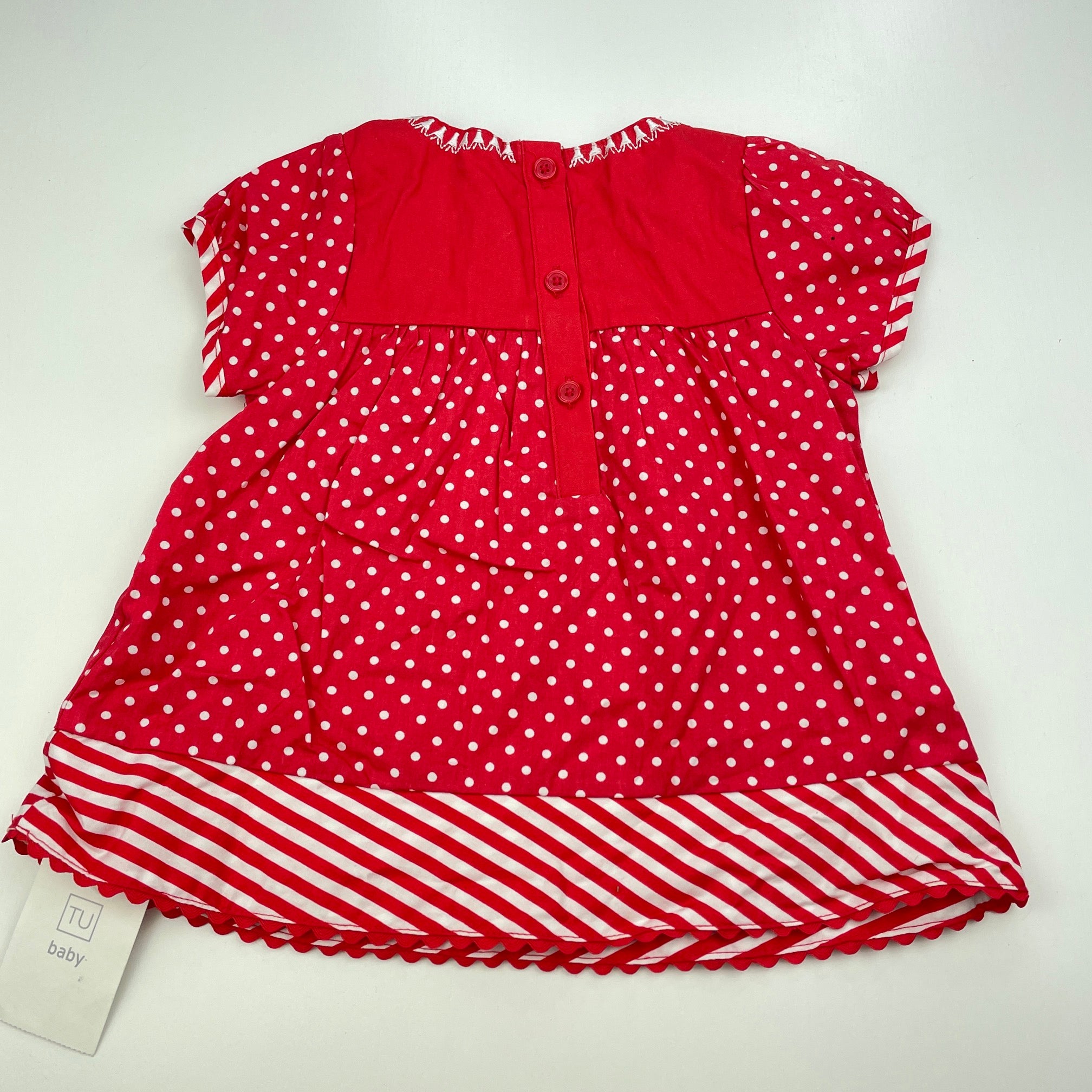 Tu, red & white lightweight cotton top, L: 35cm, NEW, size 0,