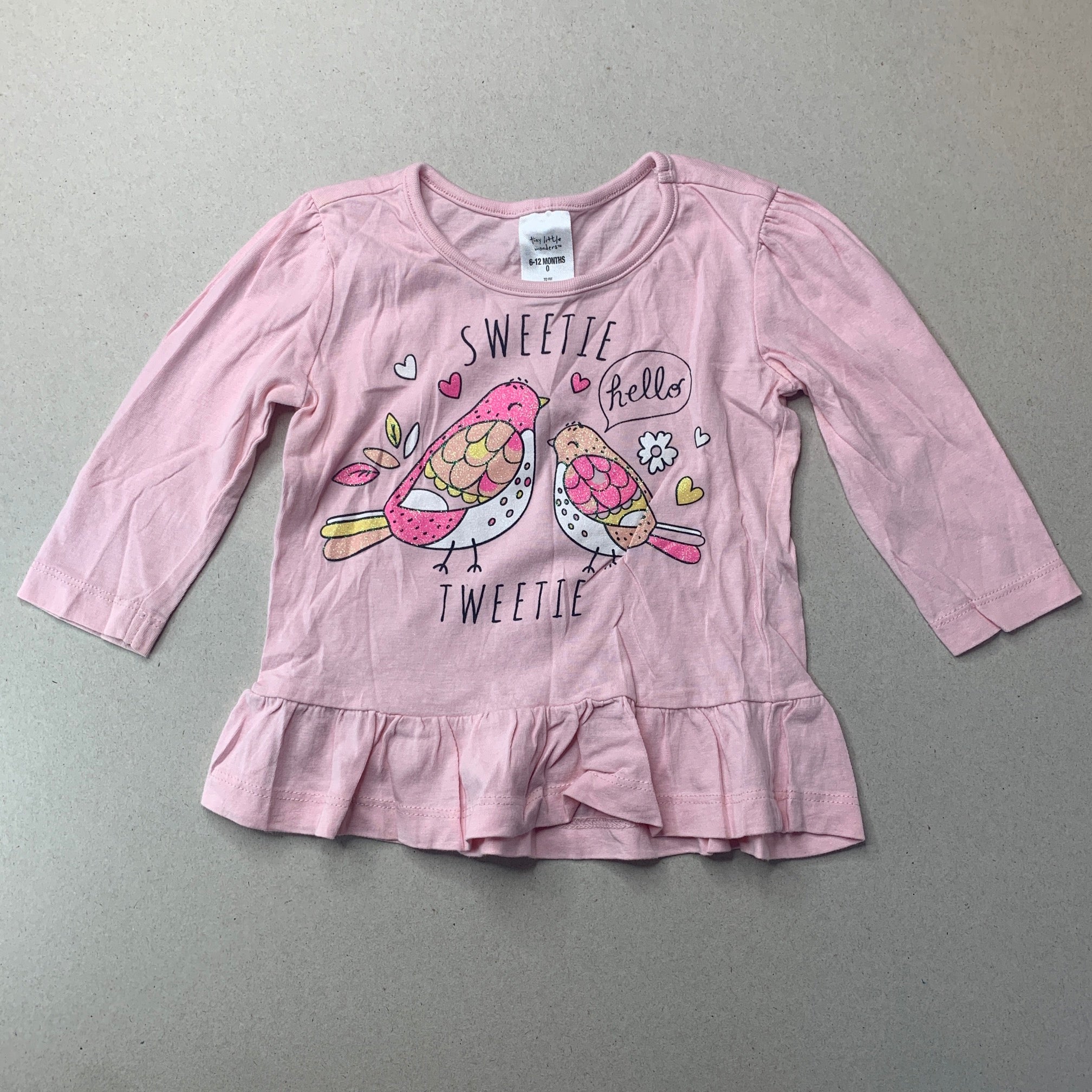 Tiny Little Wonders, cotton long sleeve top, birds, FUC, size 0,