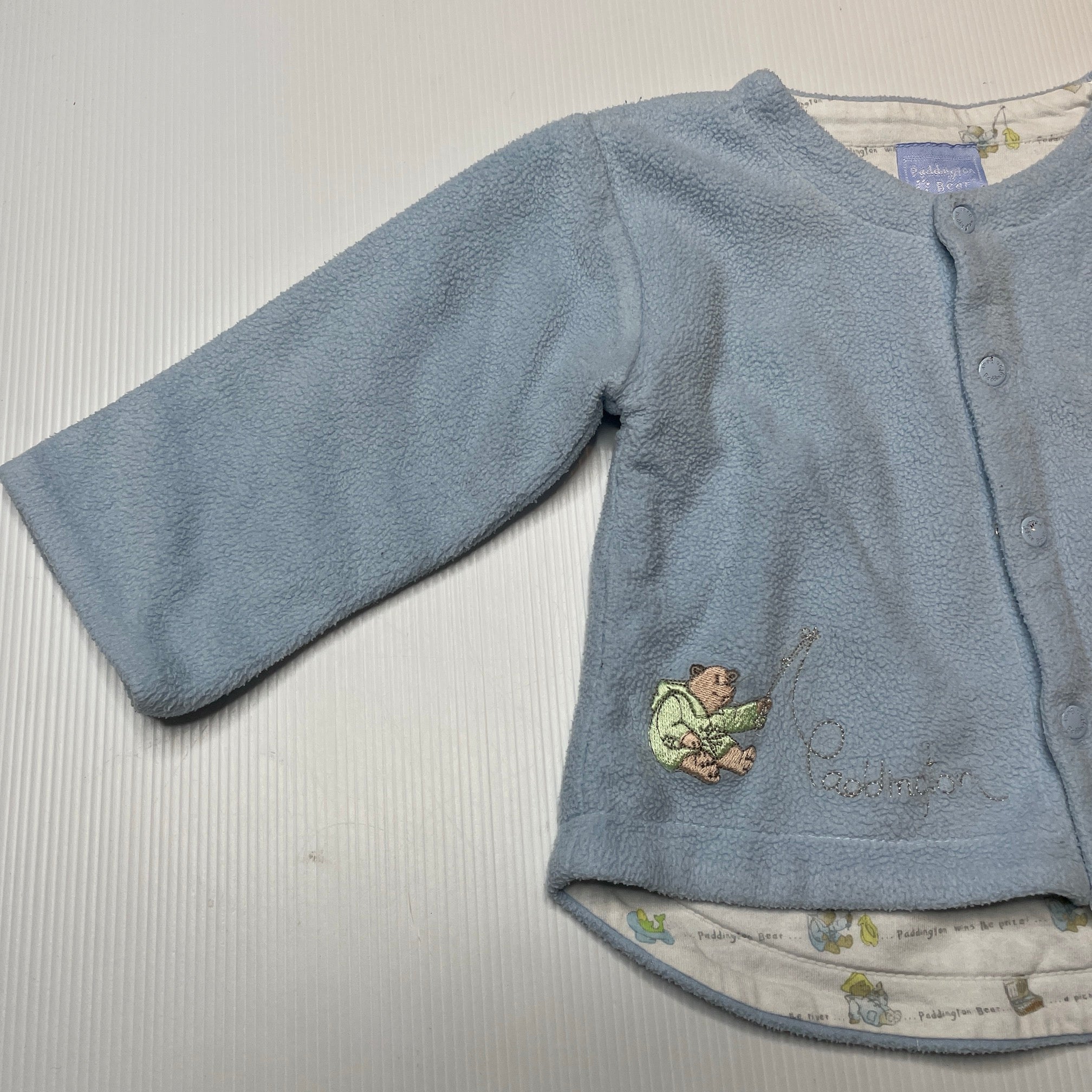 Paddington Bear reversible cotton / fleece top, poppers, size 0, Pre-loved