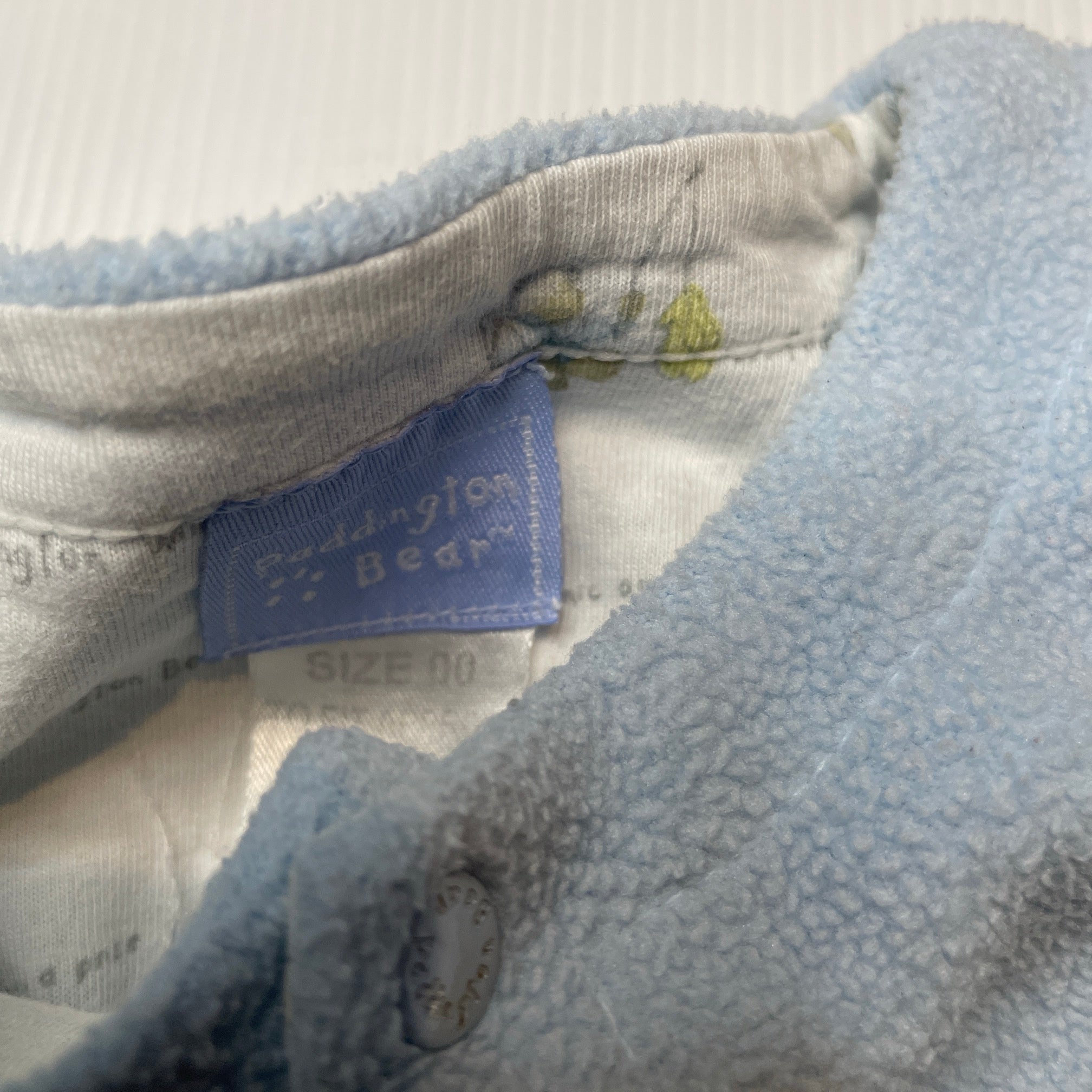Paddington Bear, reversible cotton / fleece top, poppers, GUC, size 0,