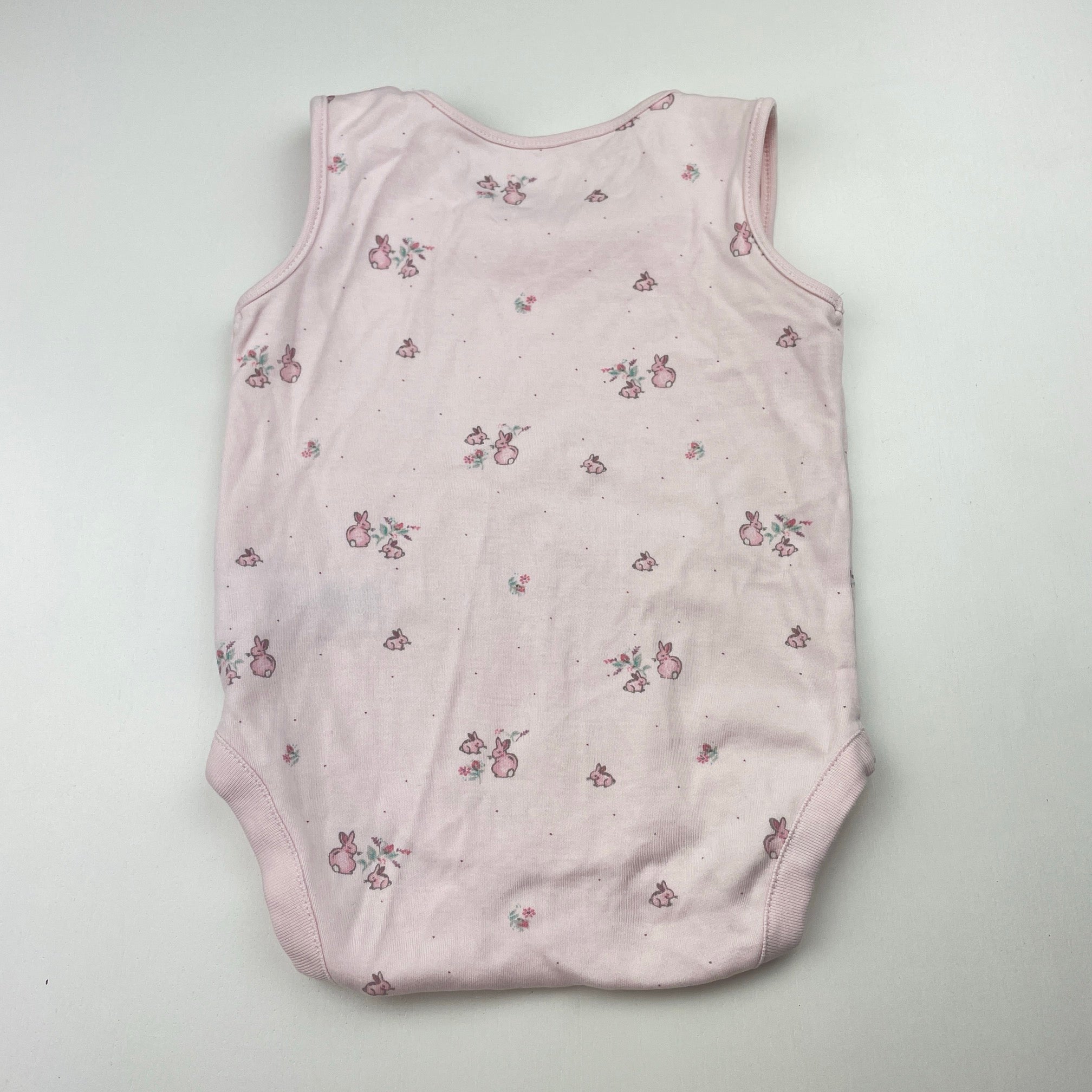Next, pink cotton bodysuit / romper, rabbits, EUC, size 0,