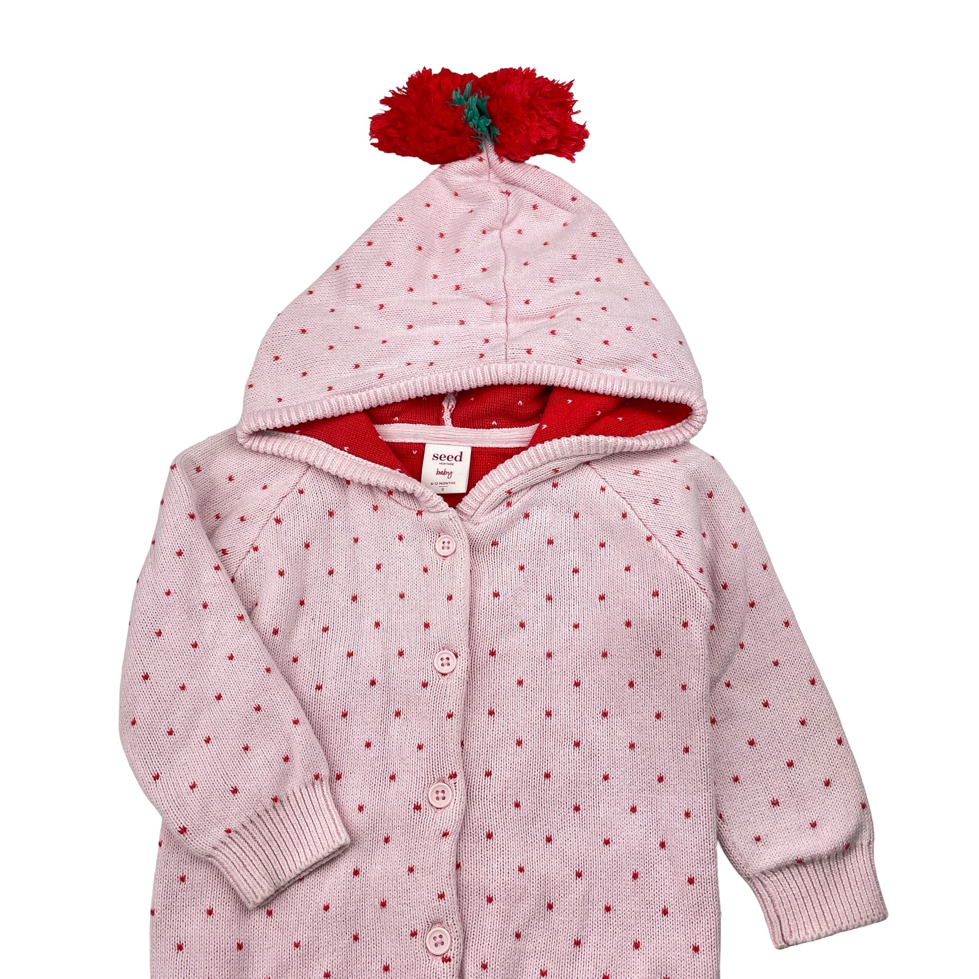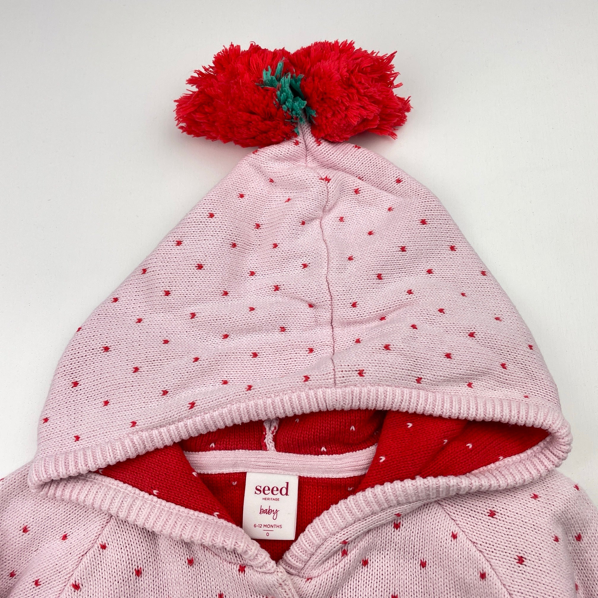 Seed, knitted cotton hooded cardigan (light marks cuffs), FUC, size 0,