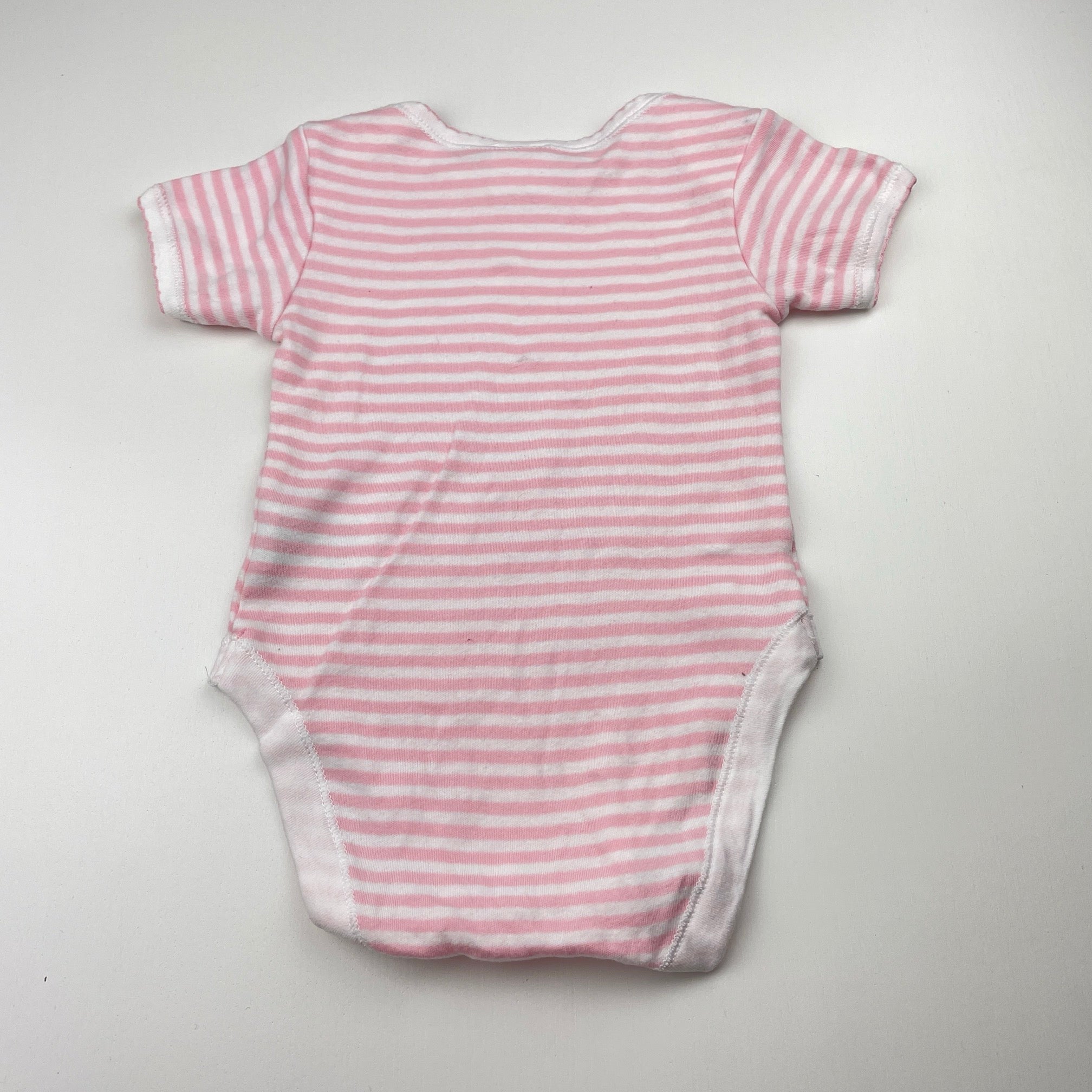 Mothercare pink stripe soft cotton bodysuit / romper, size 0, Pre-loved