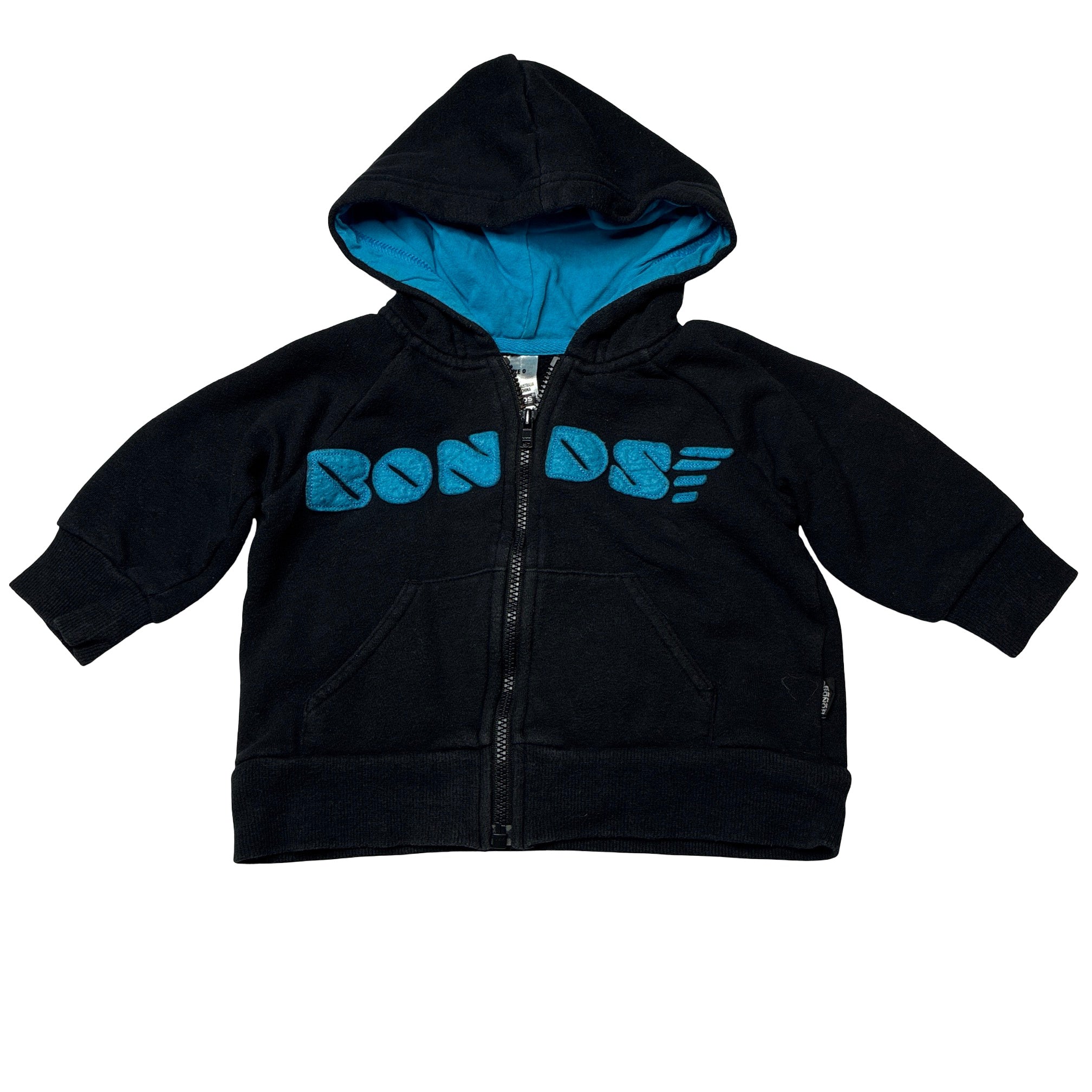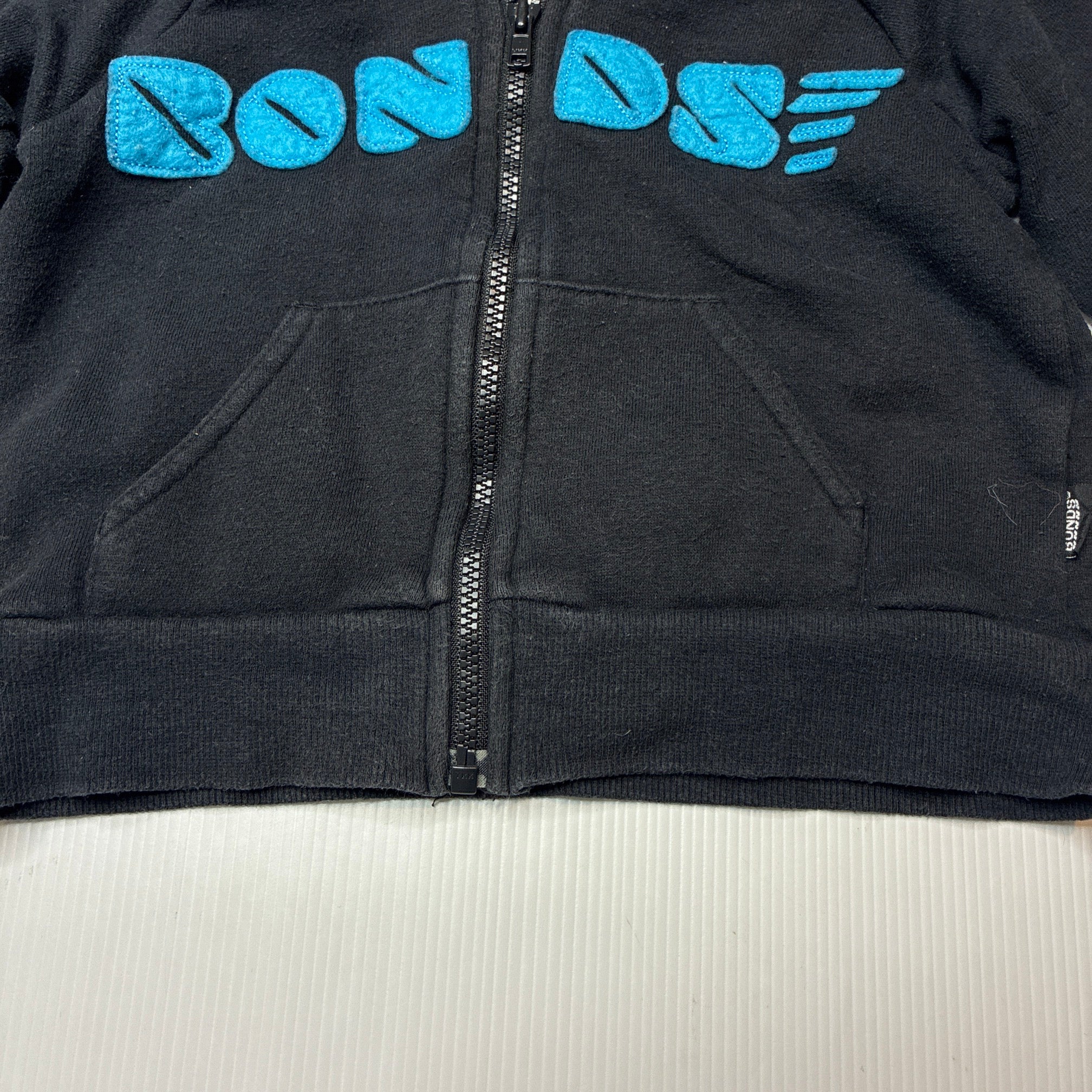 Bonds, fleece lined zip hoodie sweater, wash fade & pilling, FUC, size 0,