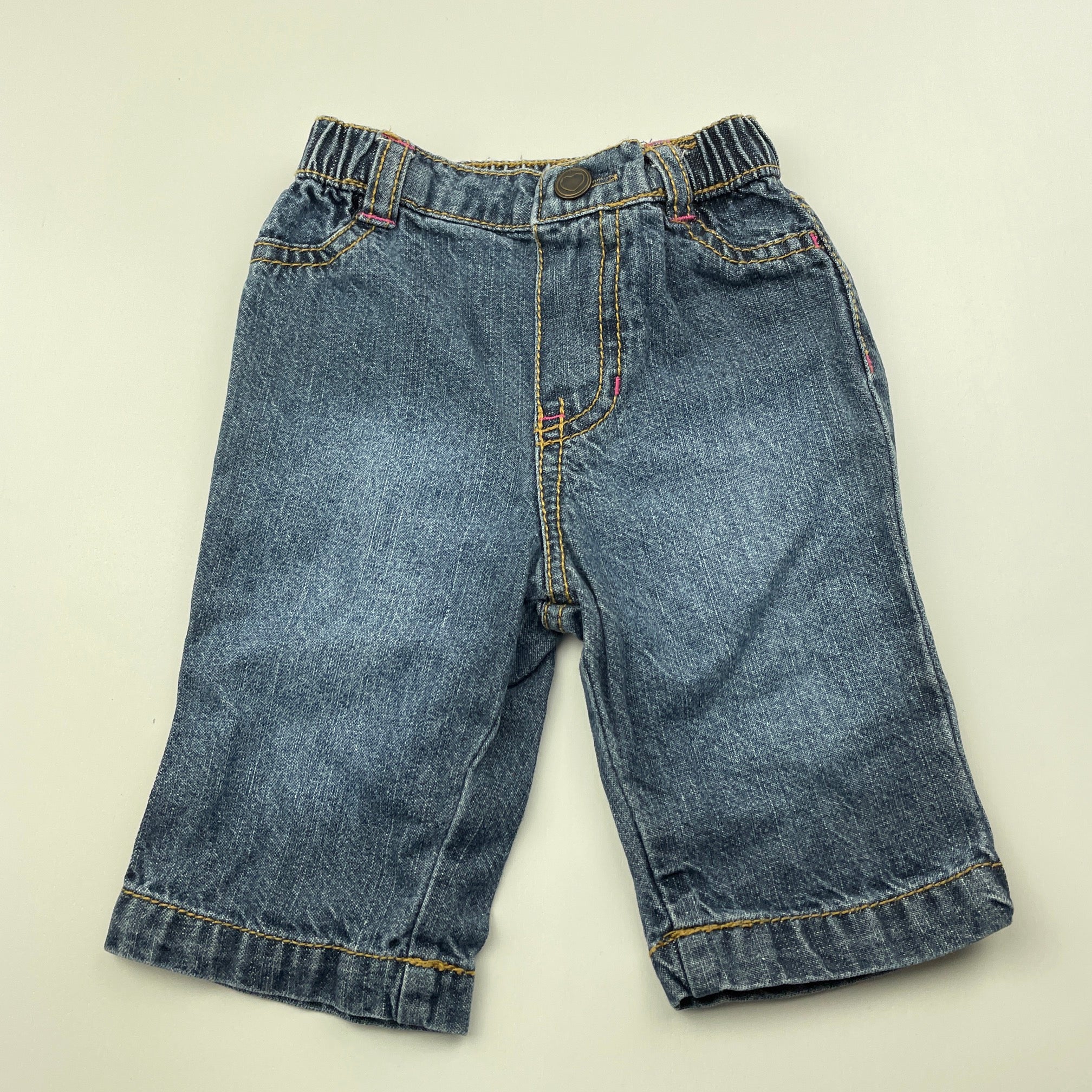 Circo, blue denim pants, elasticated, GUC, size 3 months,