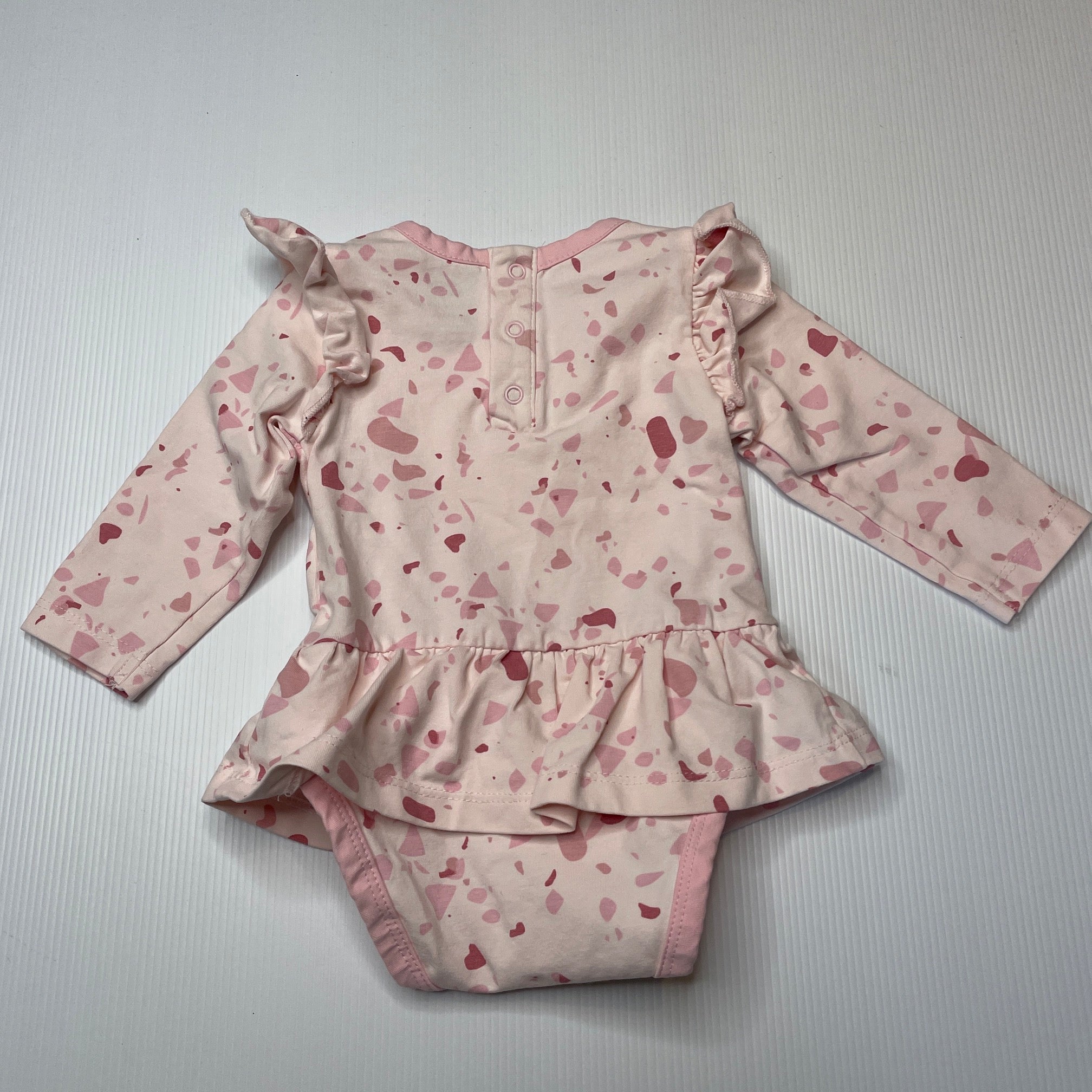 Monica + Andy, organic cotton blend romper, EUC, size 00,