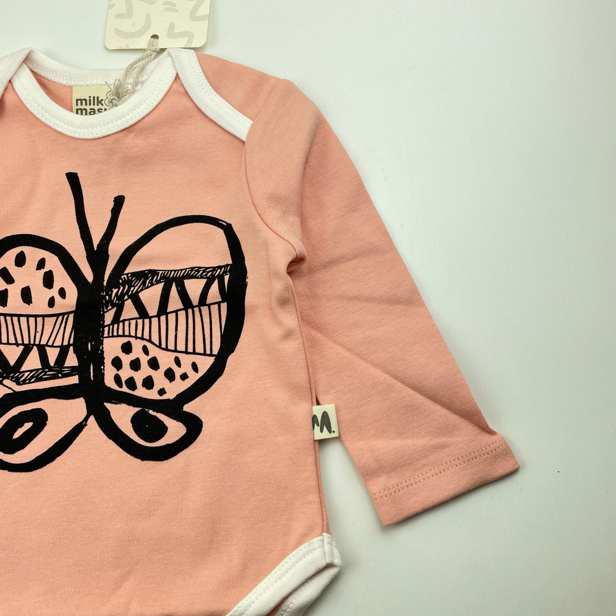 Milk & Masuki, soft organic cotton bodysuit / romper, butterfly, NEW, size 00,