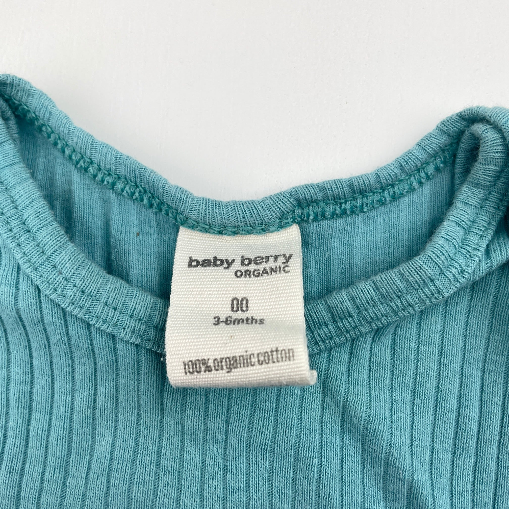 Baby Berry, ribbed organic cotton bodysuit / romper, GUC, size 00,