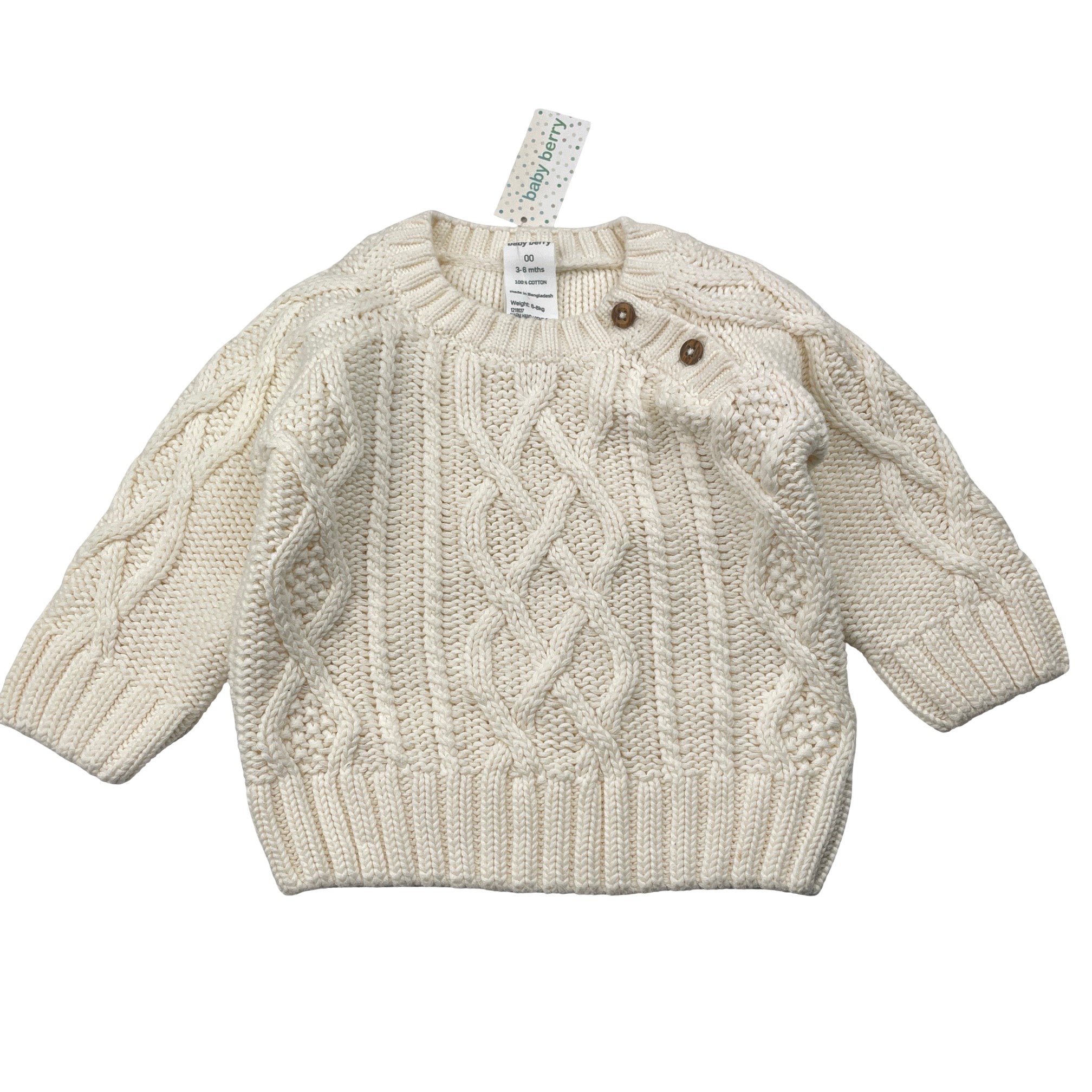 Baby Berry, chunky knit cotton sweater / jumper, NEW, size 00,