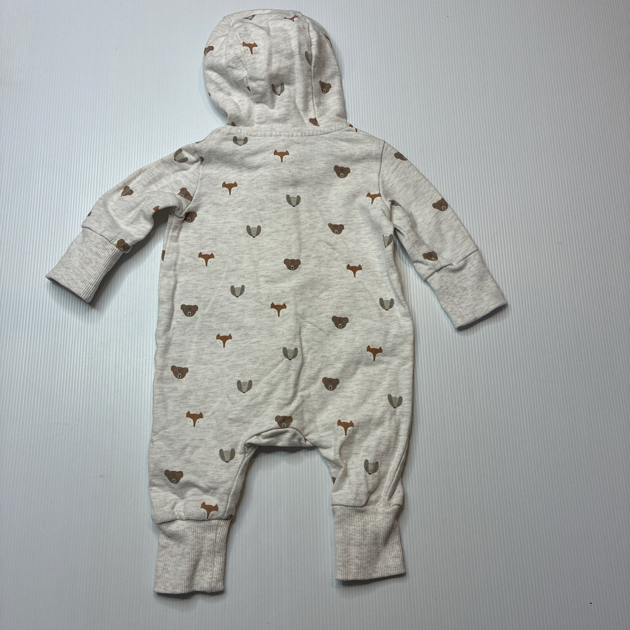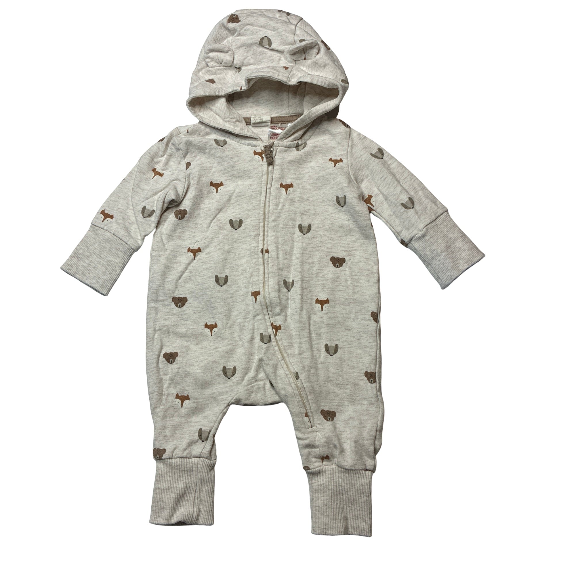 H&M, organic cotton blend hooded zip romper, EUC, size 000,
