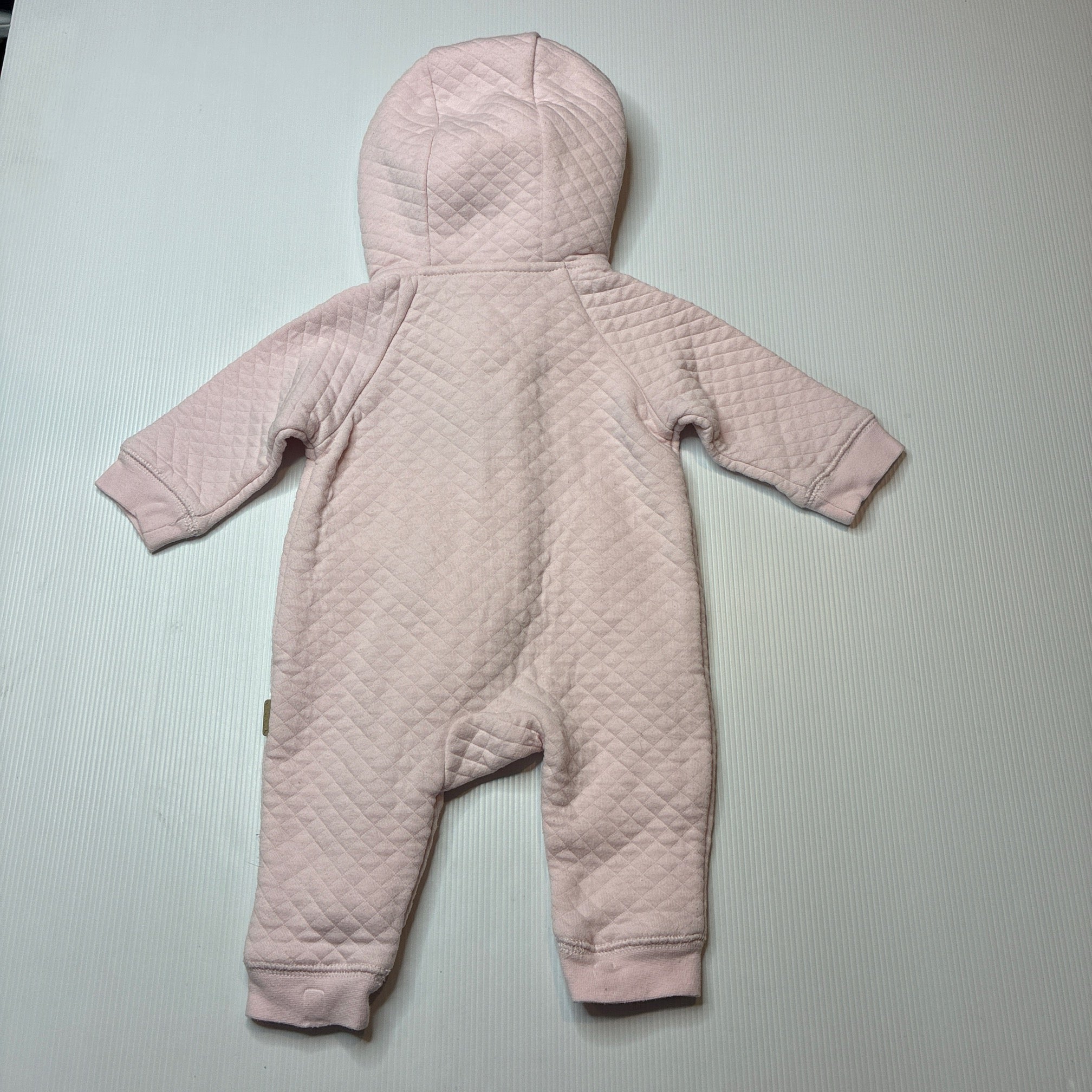 Sprout, lightly quilted zip up hooded romper, FUC, size 000,