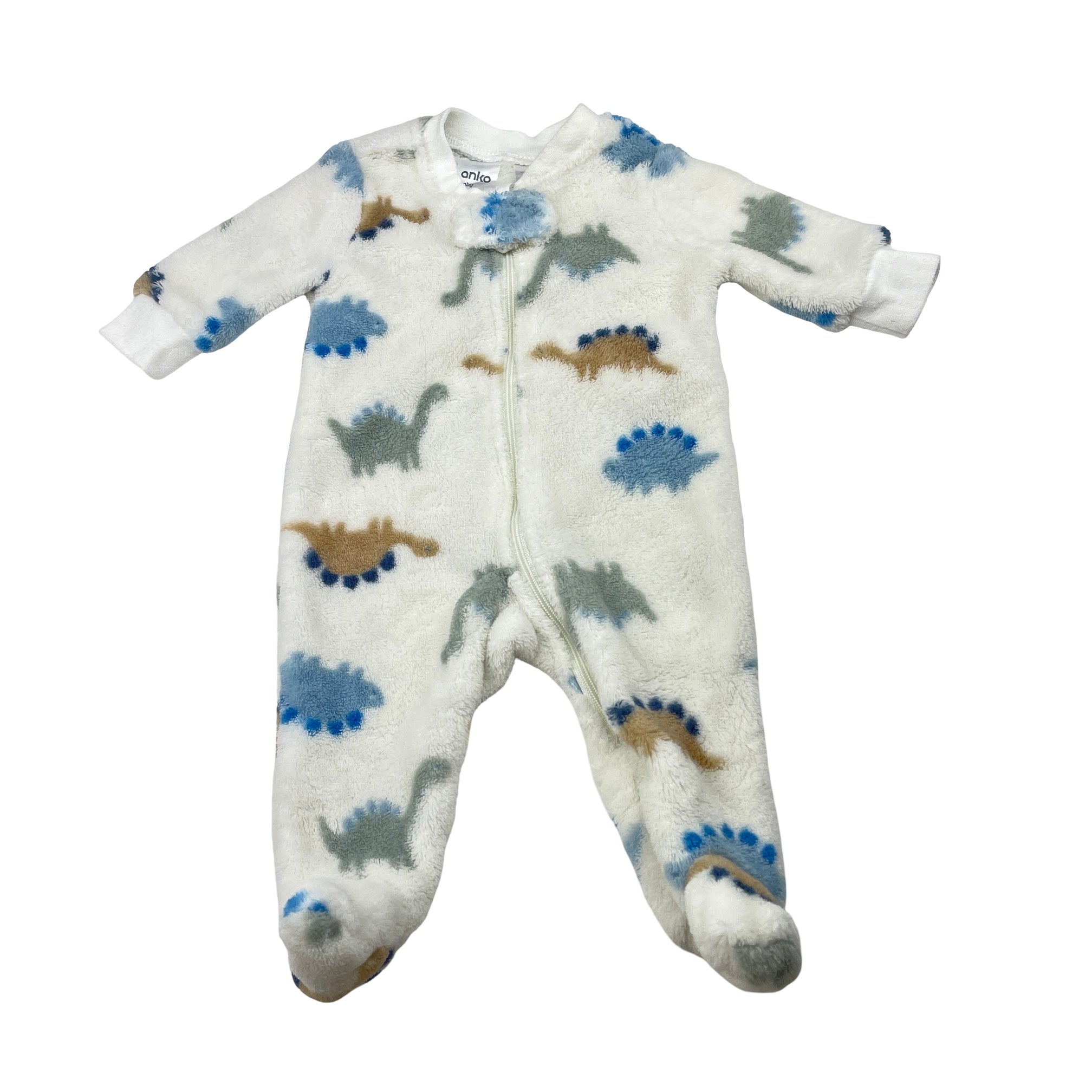 Anko soft fleece zip coverall / romper, dinosaurs, size 0000, Pre-loved