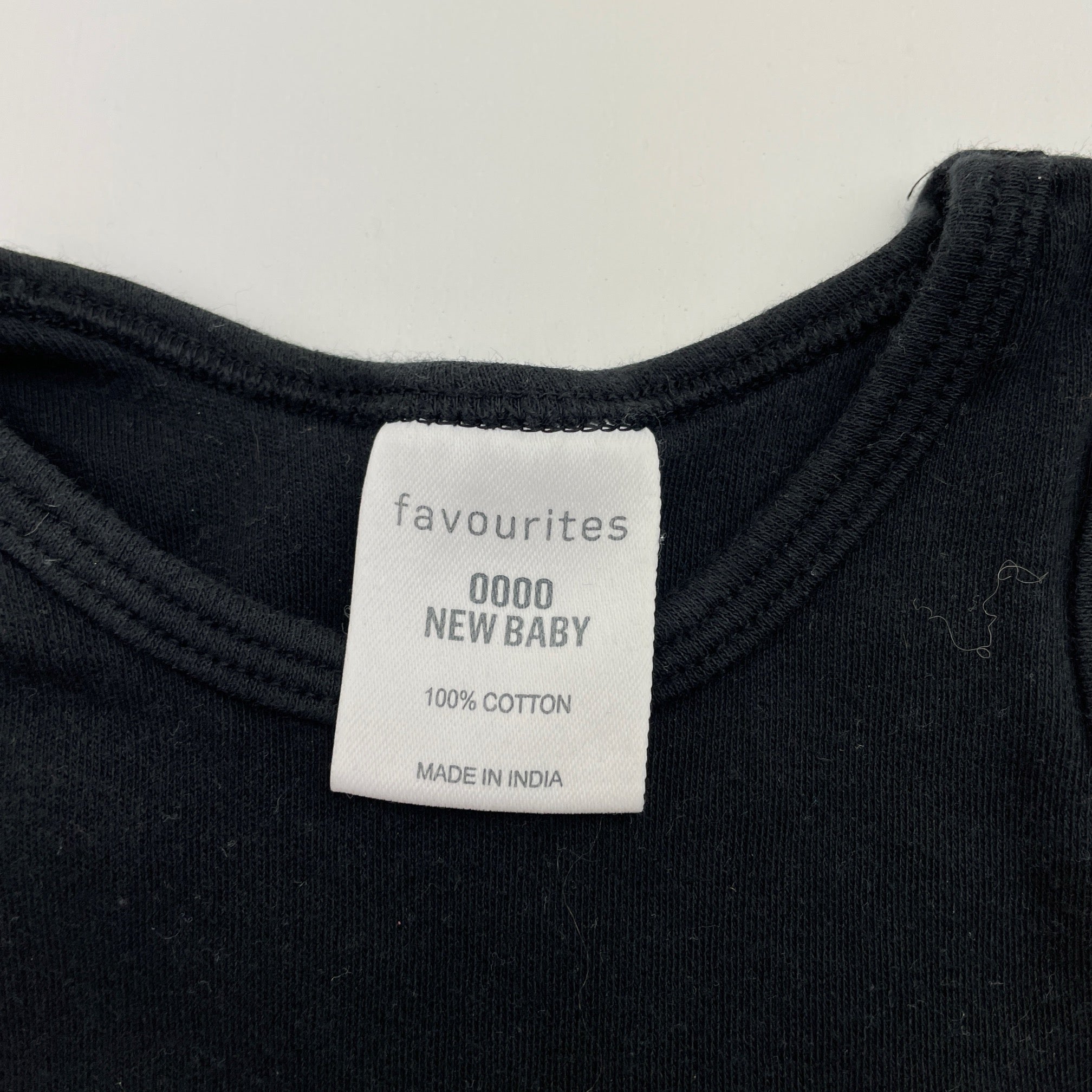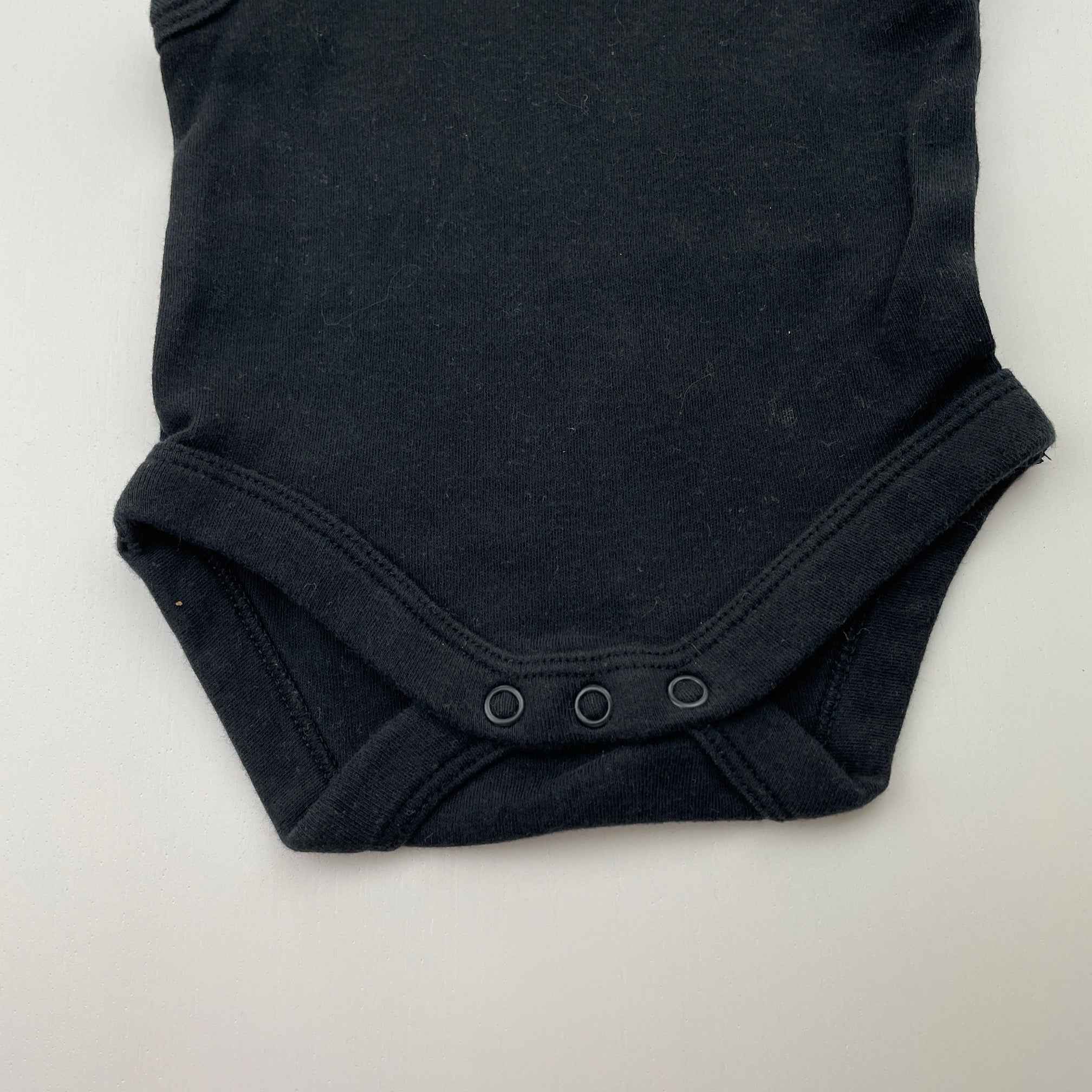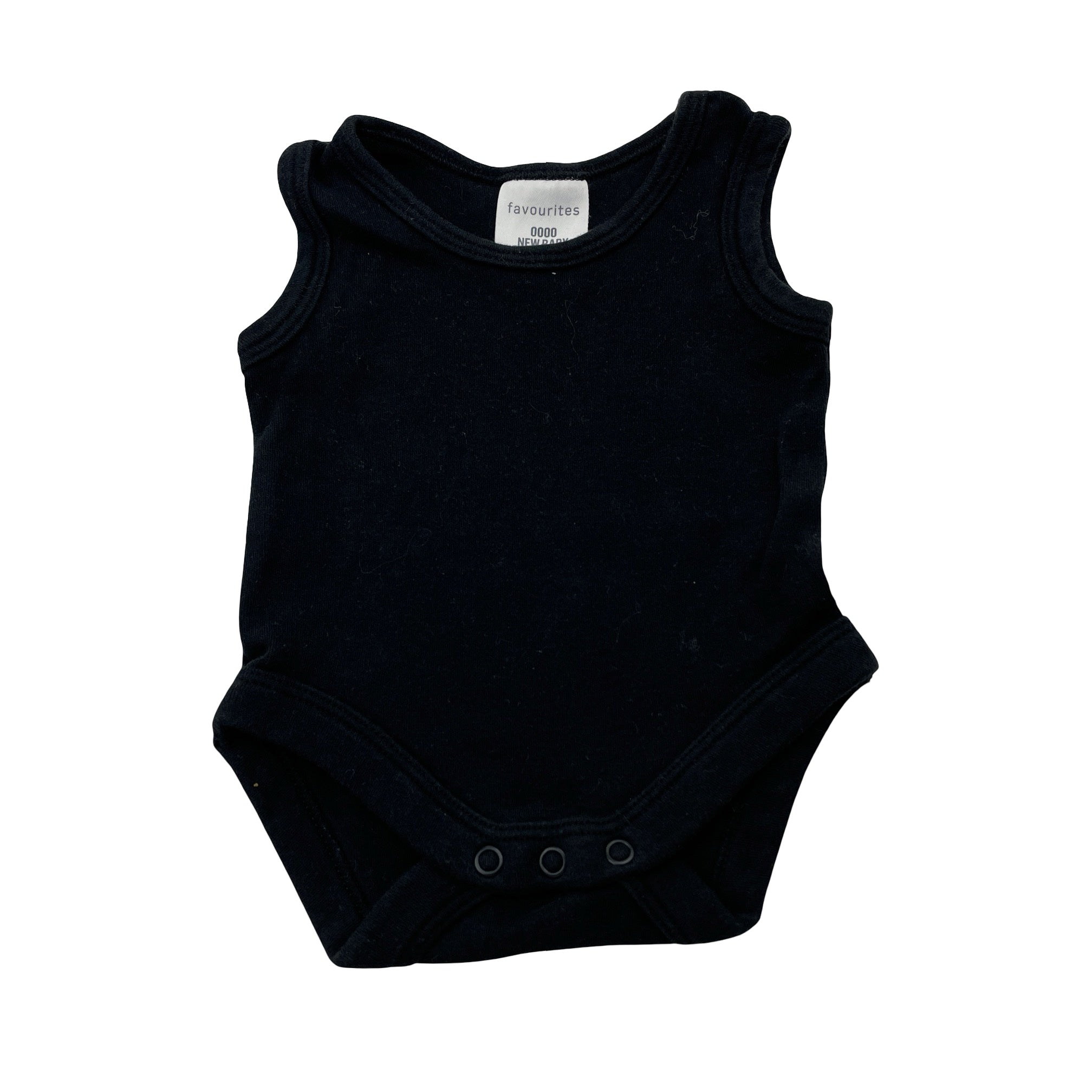 Favourites black cotton singletsuit romper, size 0000, Pre-loved