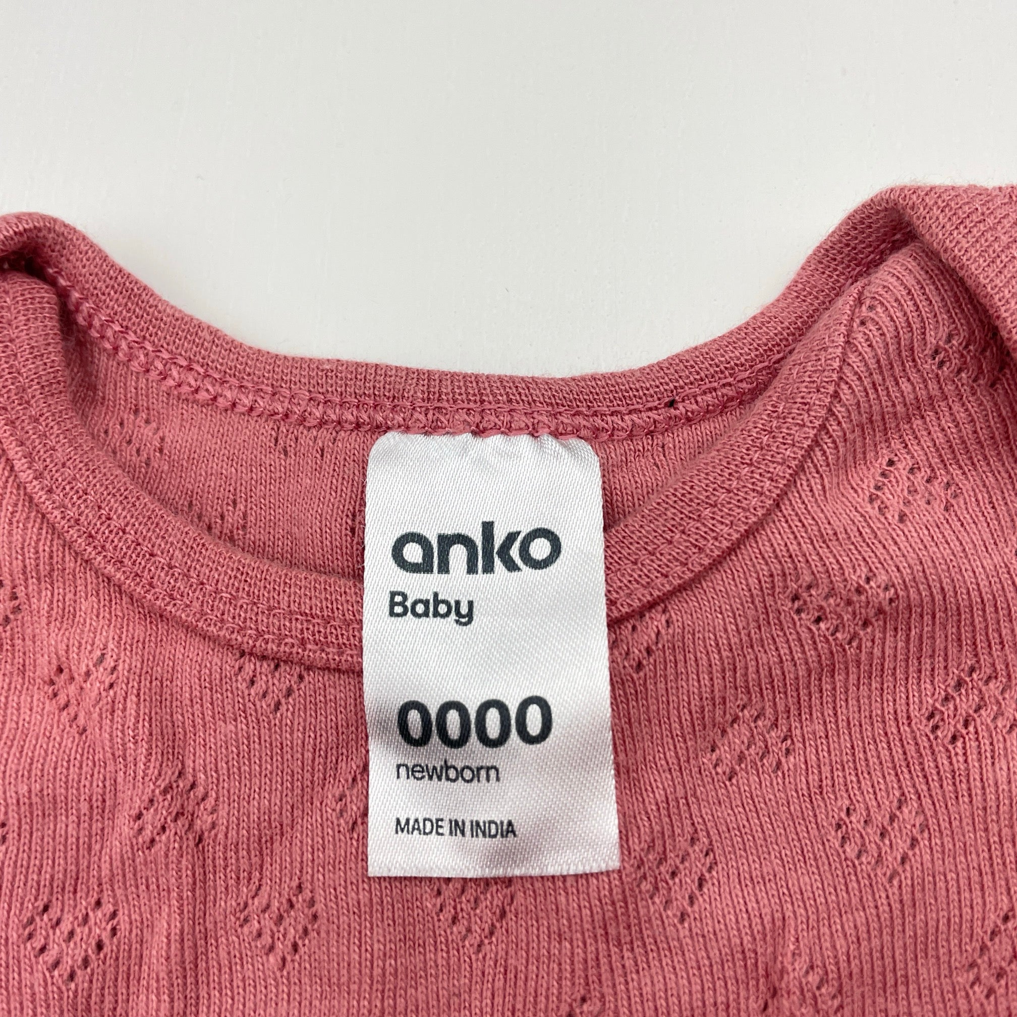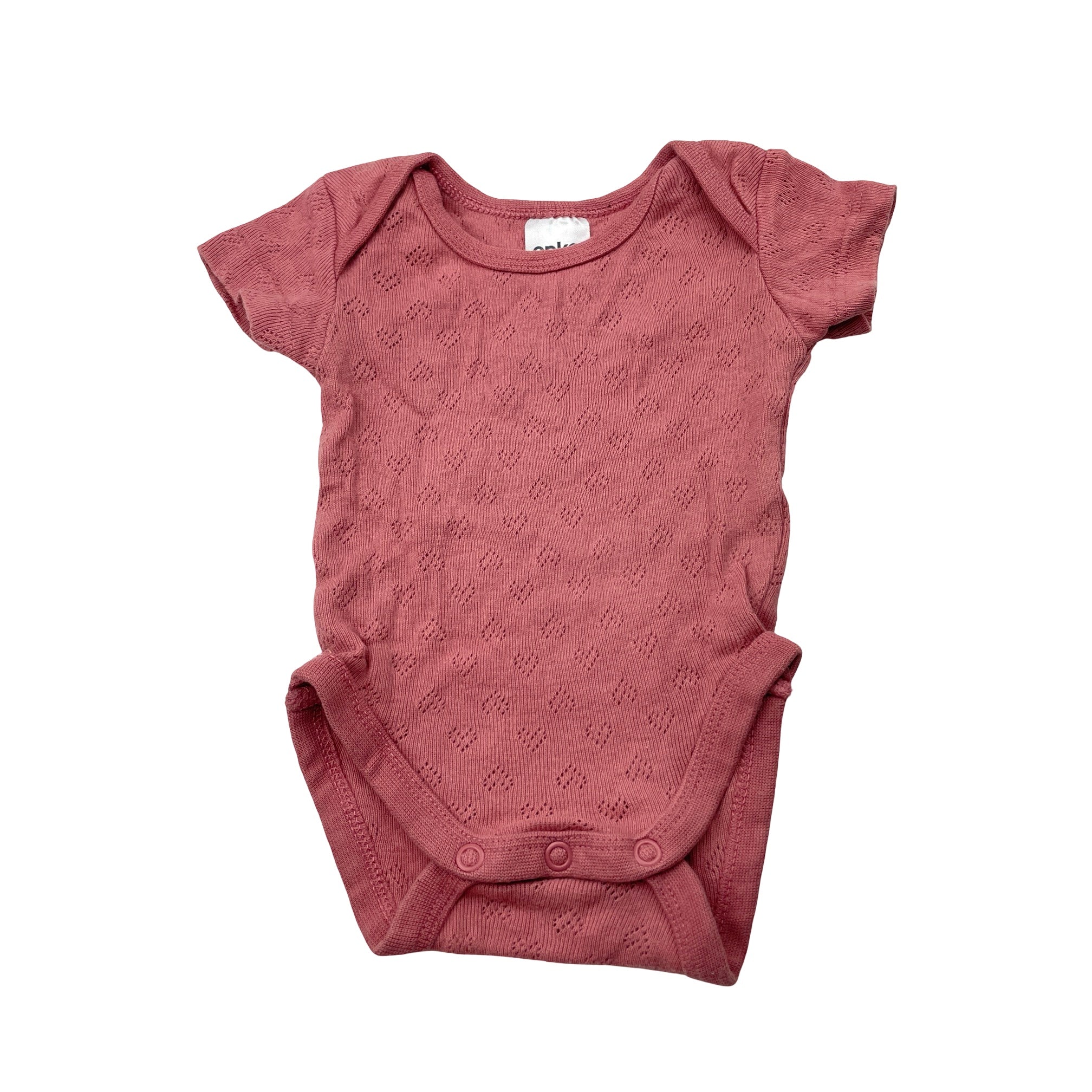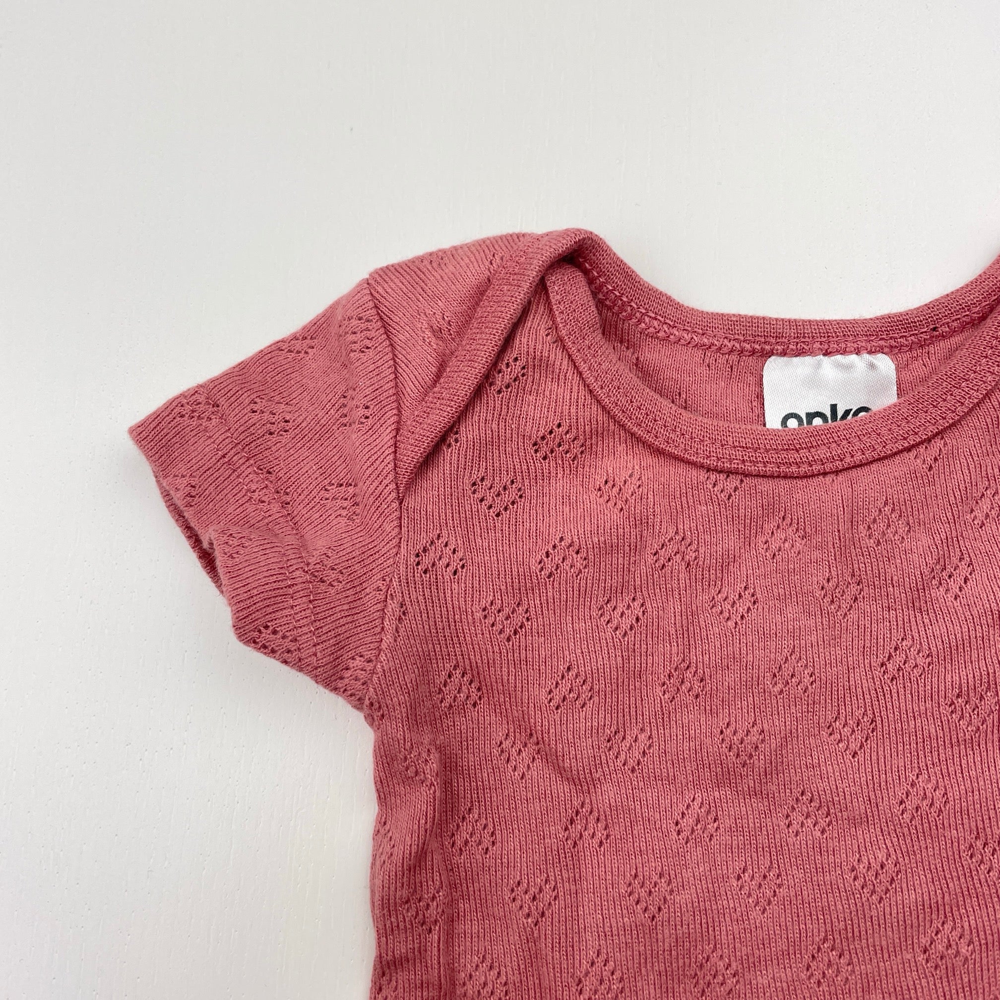 Anko, pointelle cotton bodysuit / romper, EUC, size 0000,