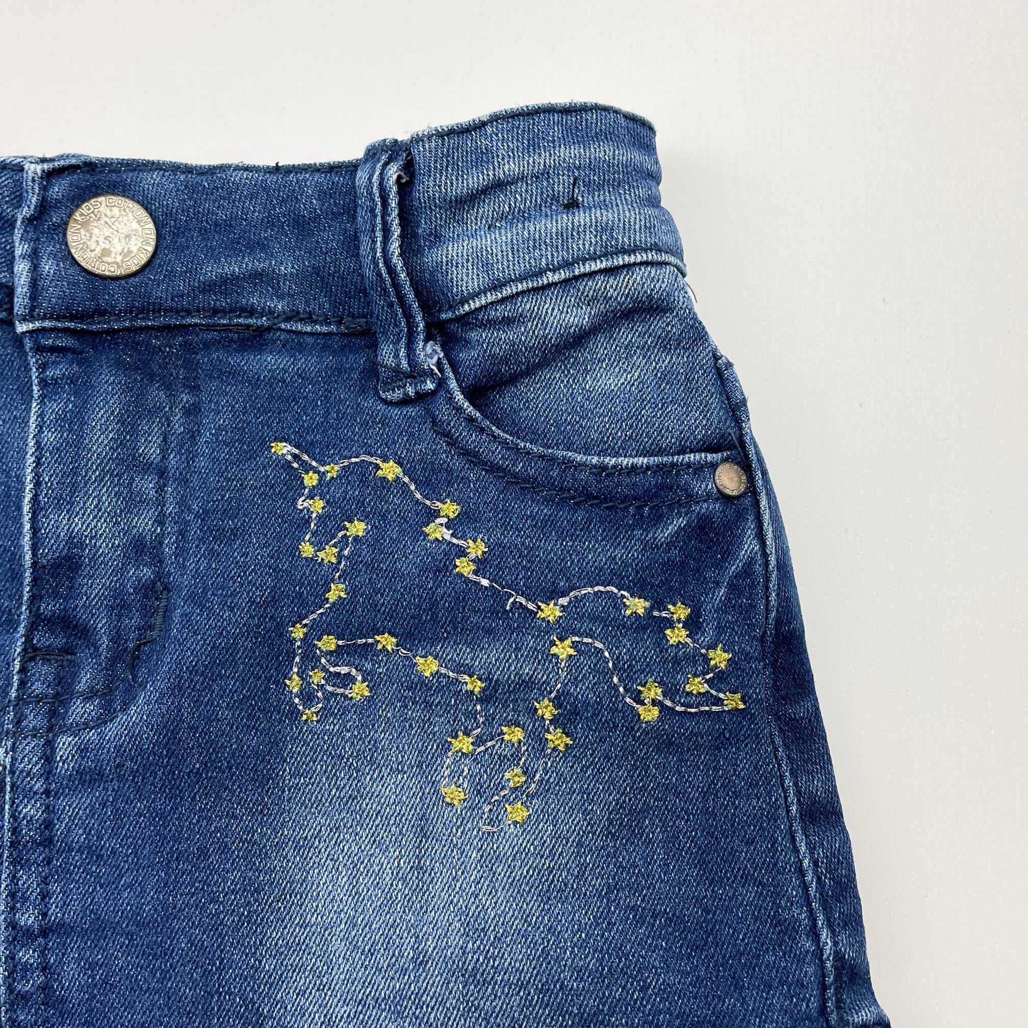 Cotton On, embroidered stretch denim skirt, adjustable, GUC, size 1,