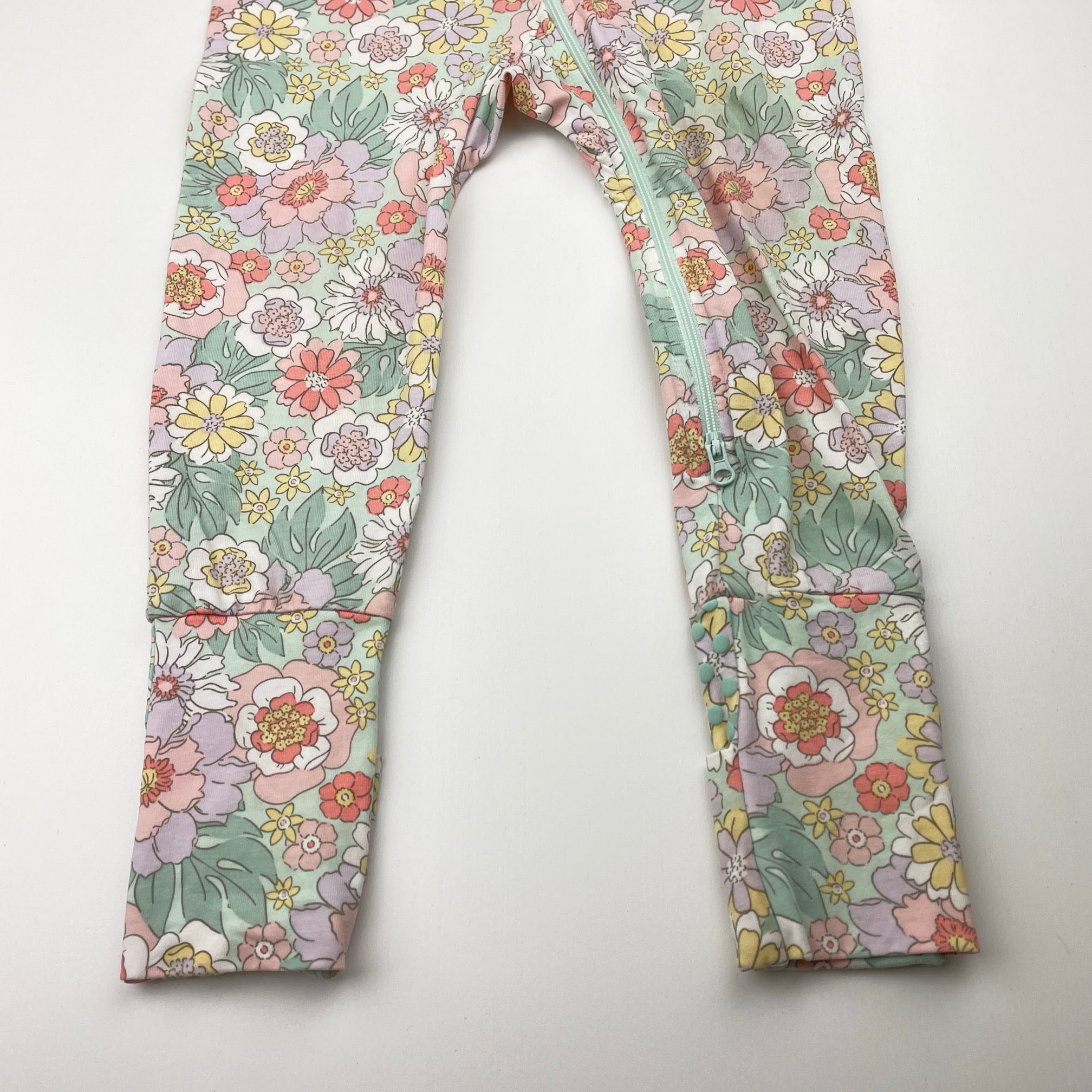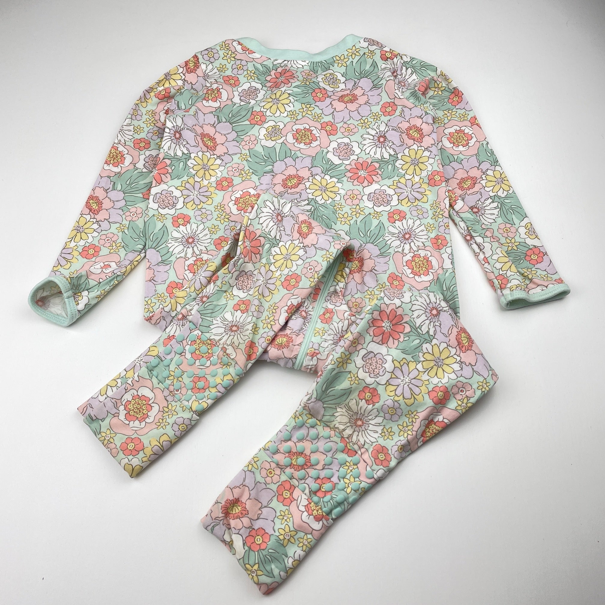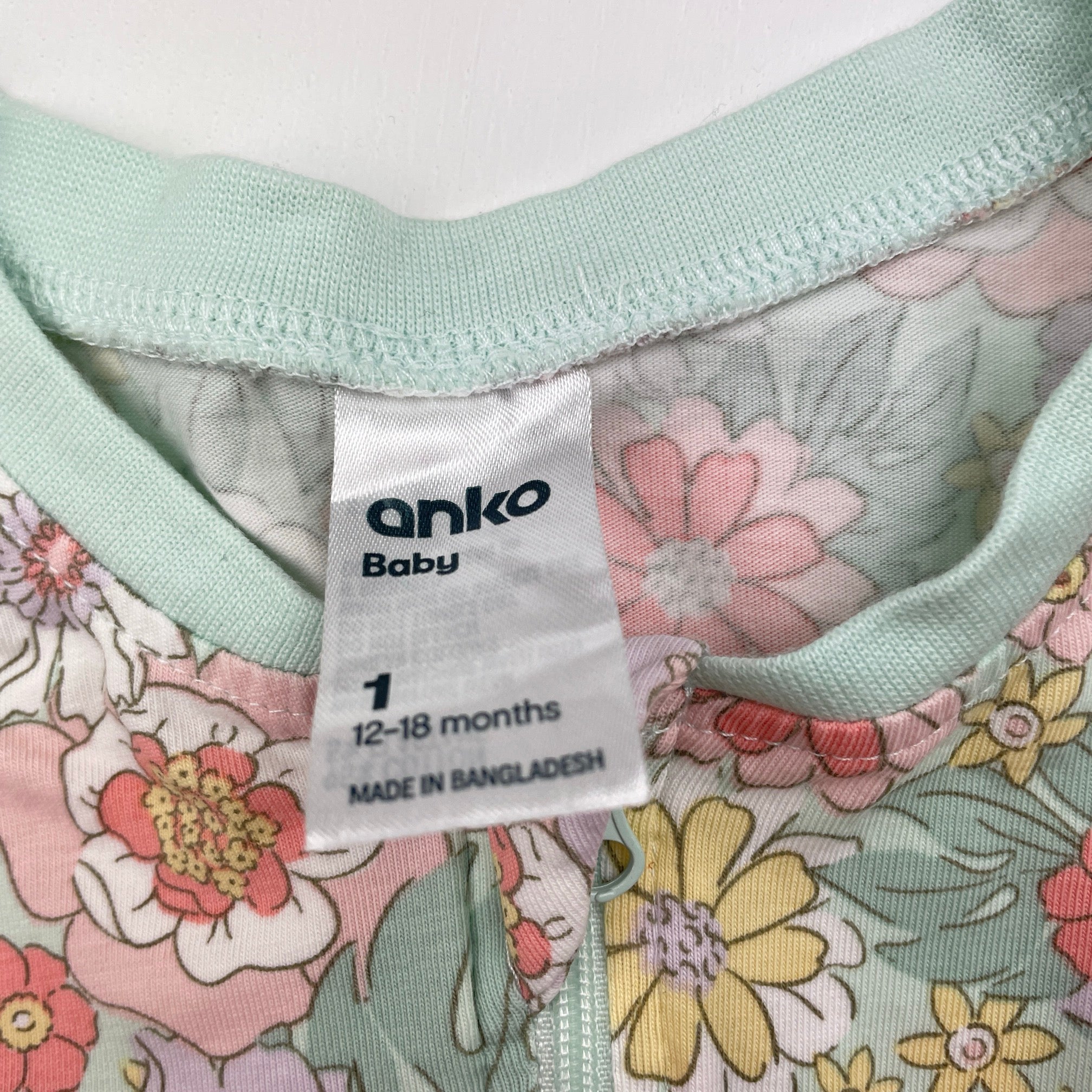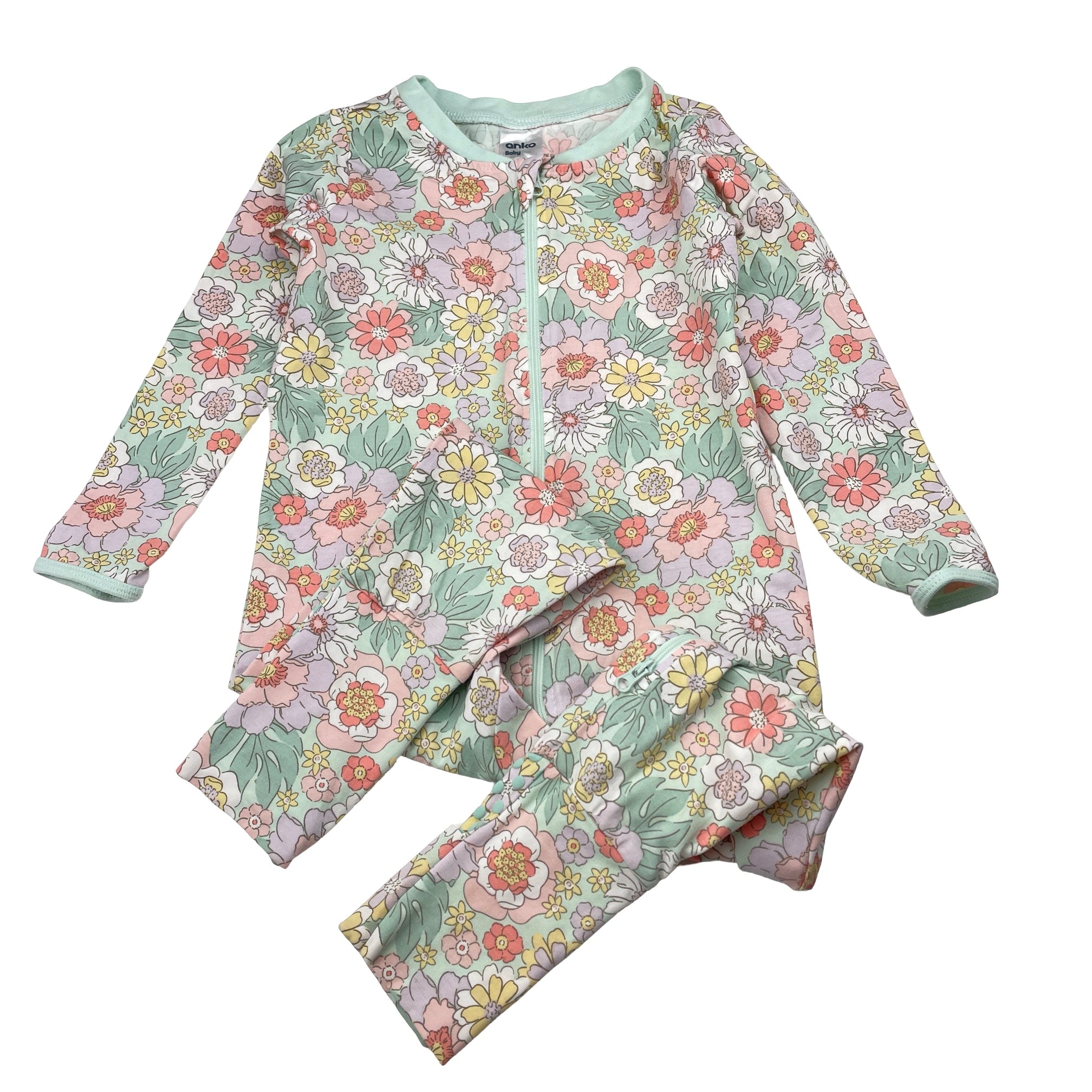Anko, floral stretchy zip coverall / romper, light marks on feet, FUC, size 1,