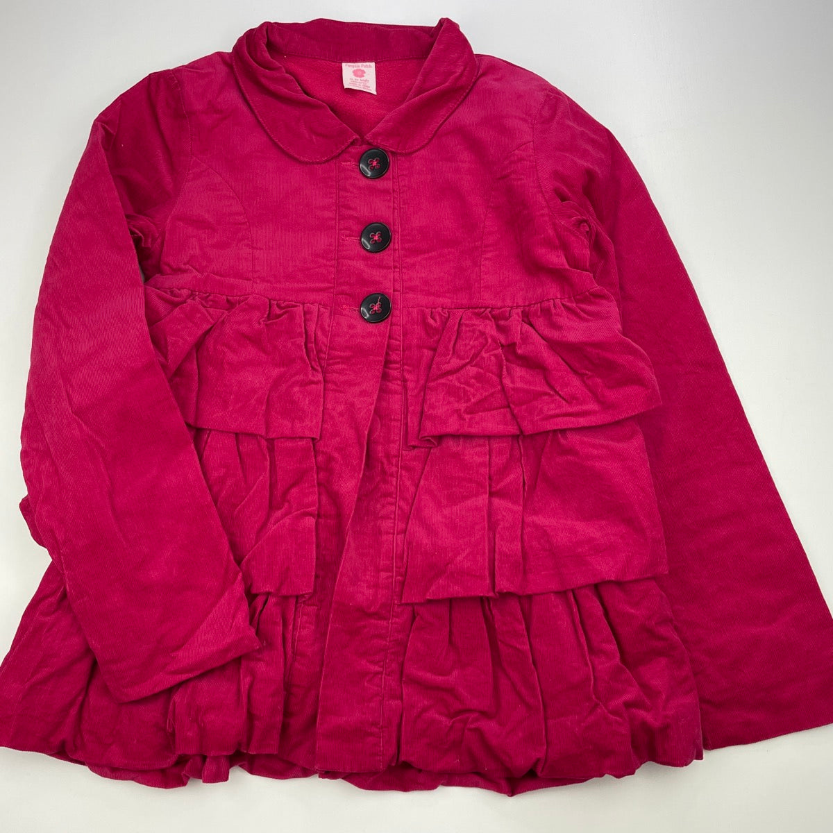 Girls Pumpkin Patch, fleece lined corduroy cotton jacket / coat, L: 55cm, small hole in back, FUC, size 10,