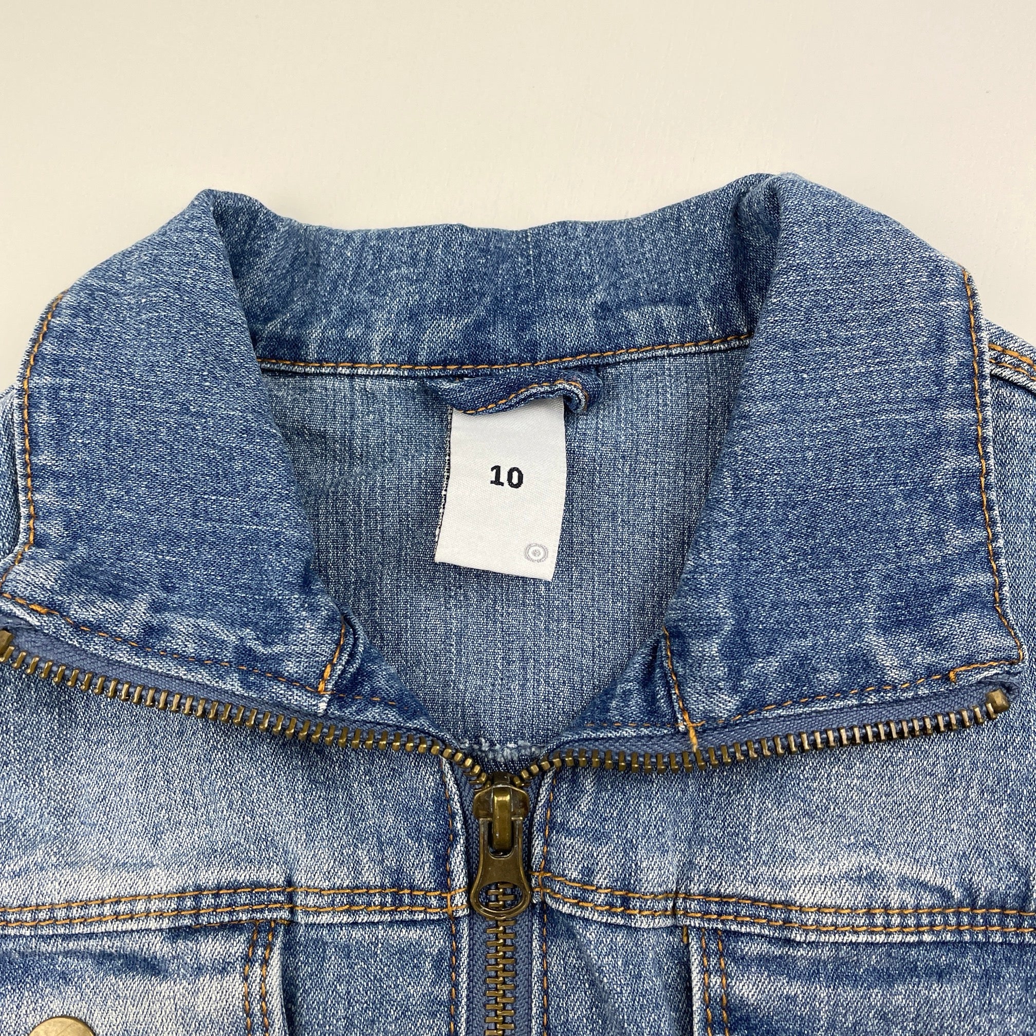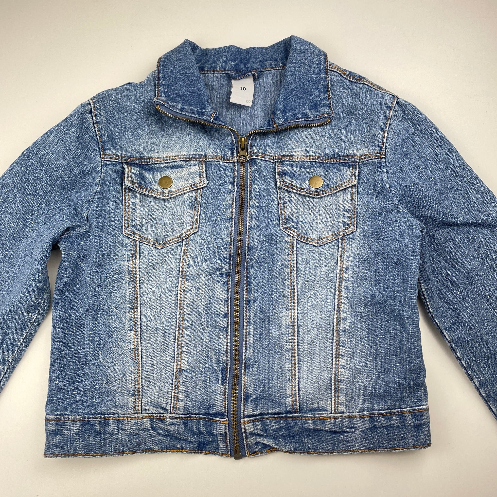Target zip up stretch denim jacket, size 10, Pre-loved