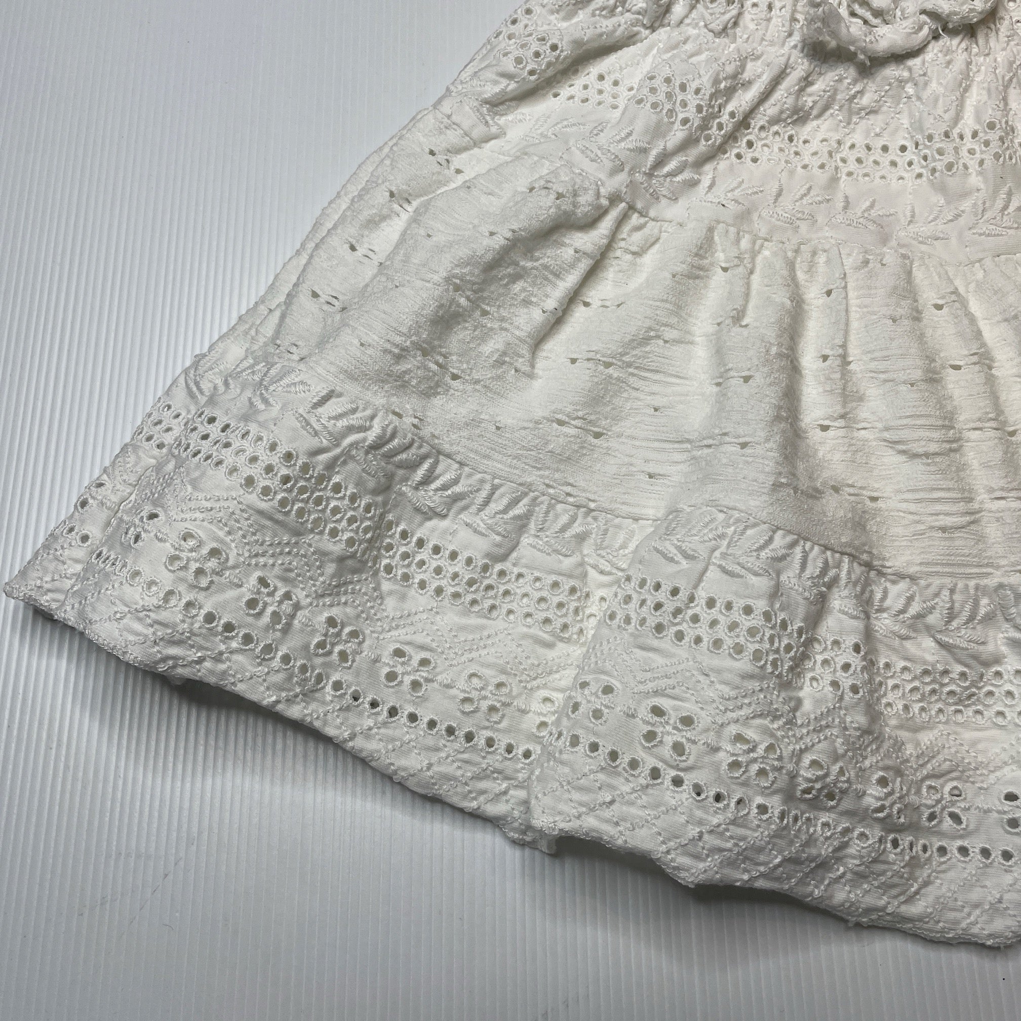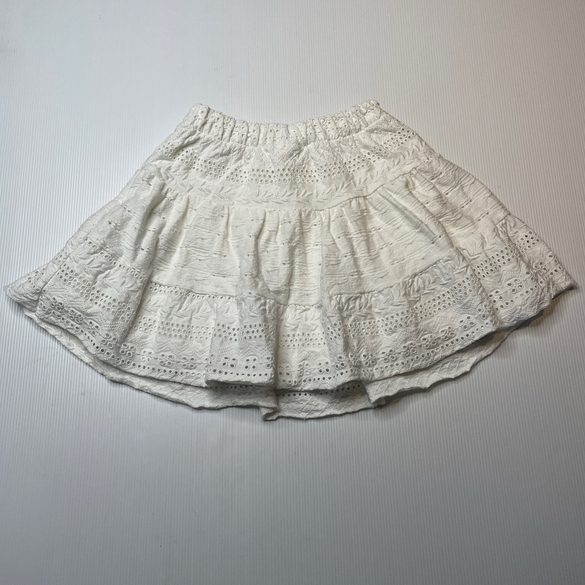 Zara, lined broderie cotton skirt, elasticated, L: 31cm, EUC, size 10,