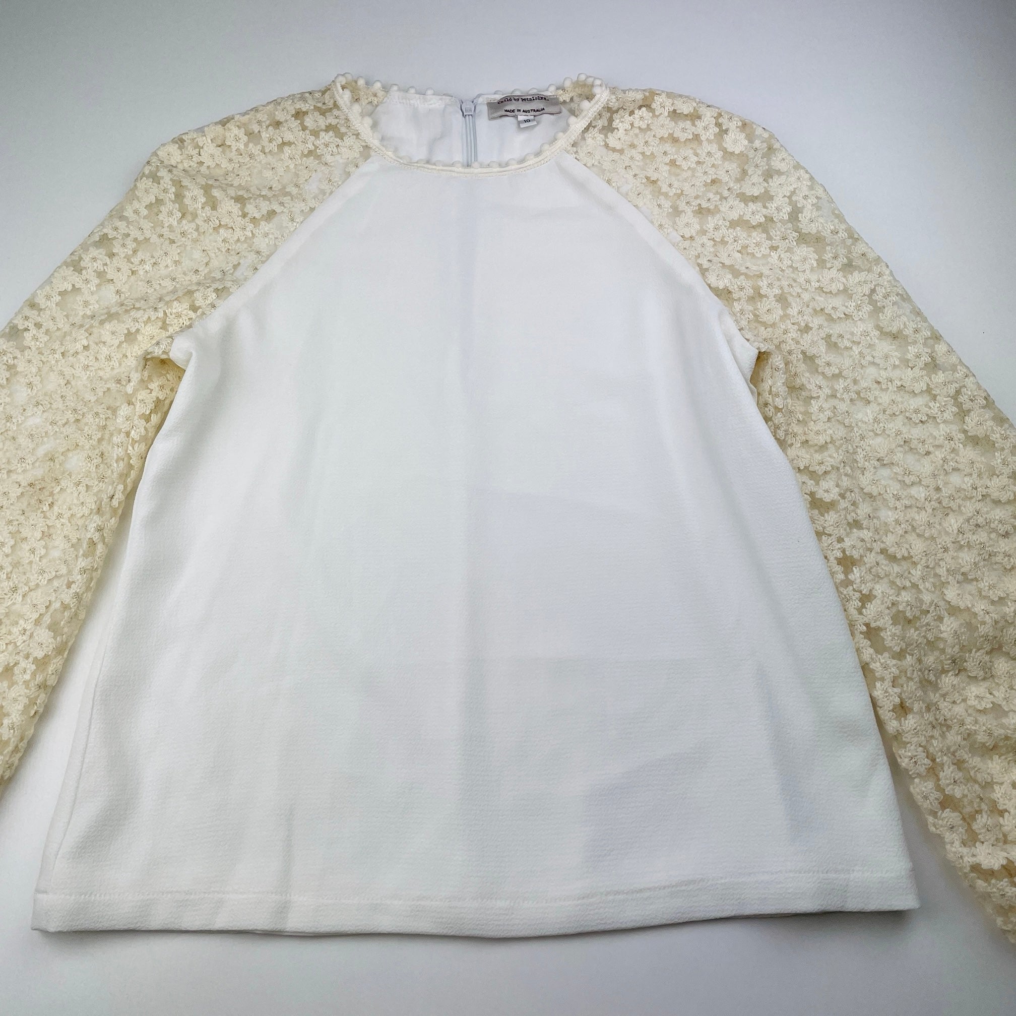 Child by Petals Ink, lined long sleeve top, floral lace sleeves, EUC, size 10,