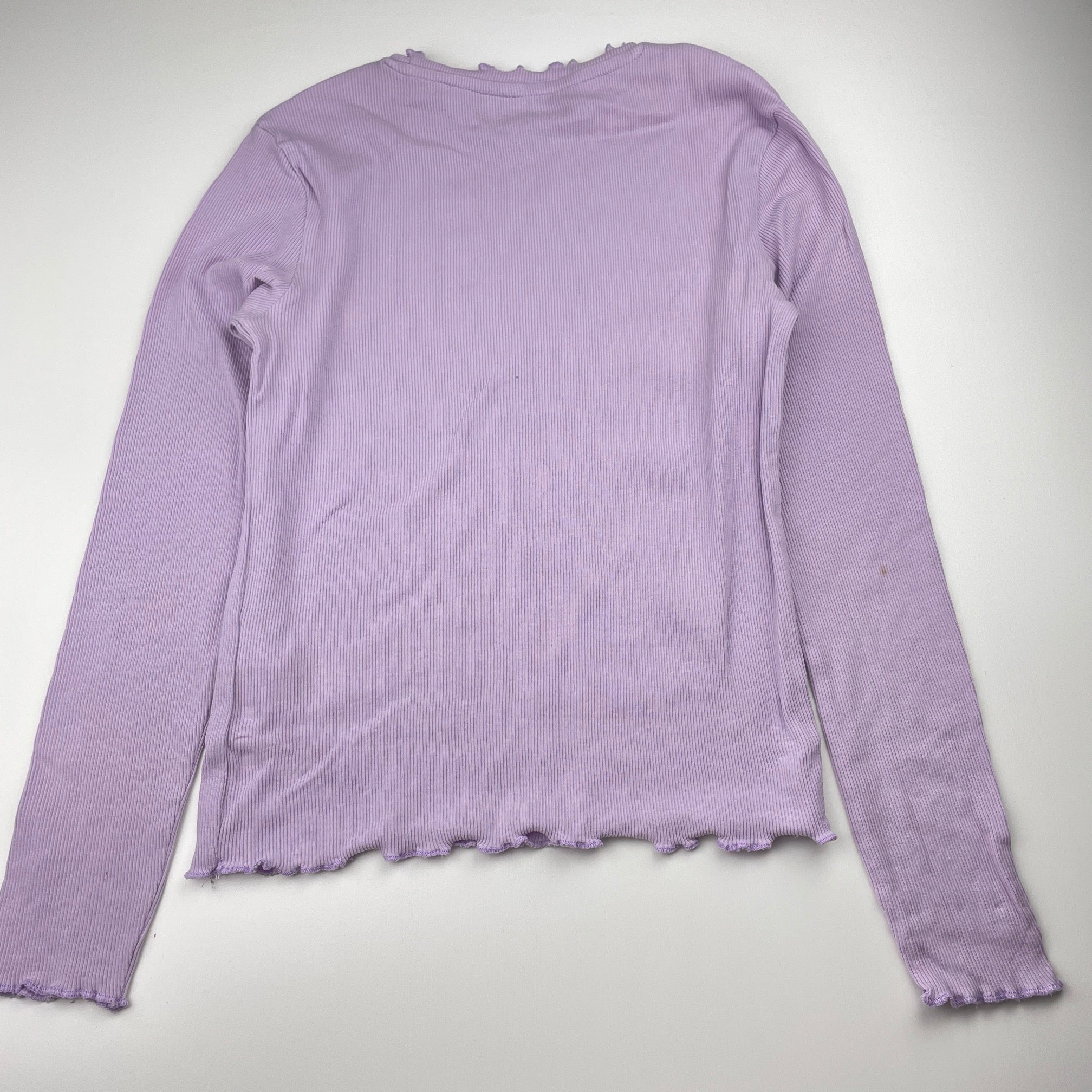 Girls purple, ribbed stretchy long sleeve top, mark right elbow, FUC, size 10,