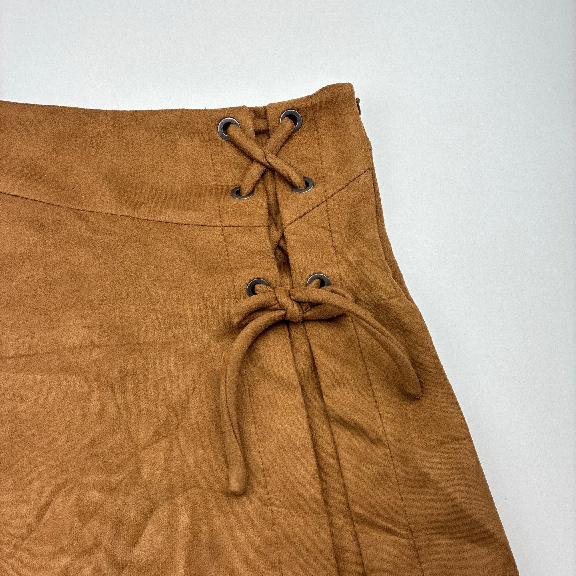 Zara, faux suede skirt, adjustable, L: 35cm, EUC, size 10,