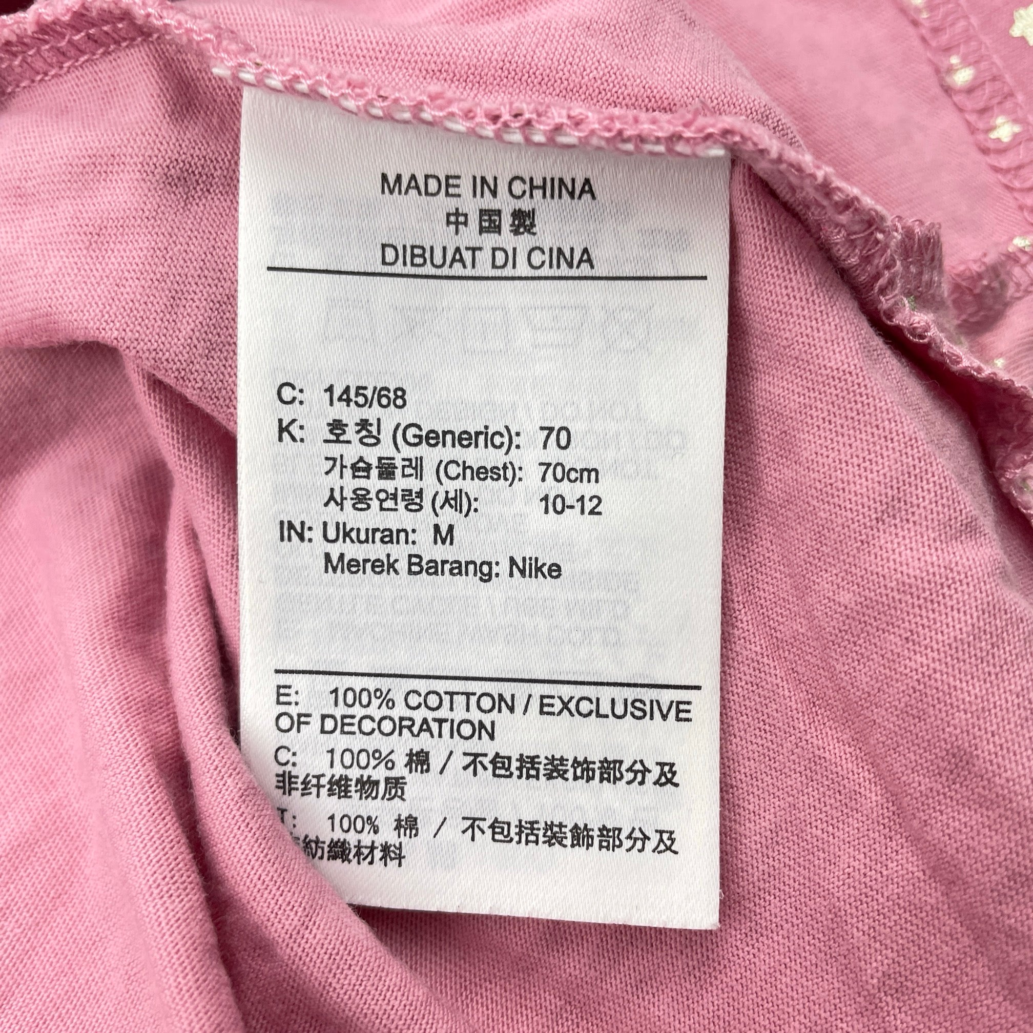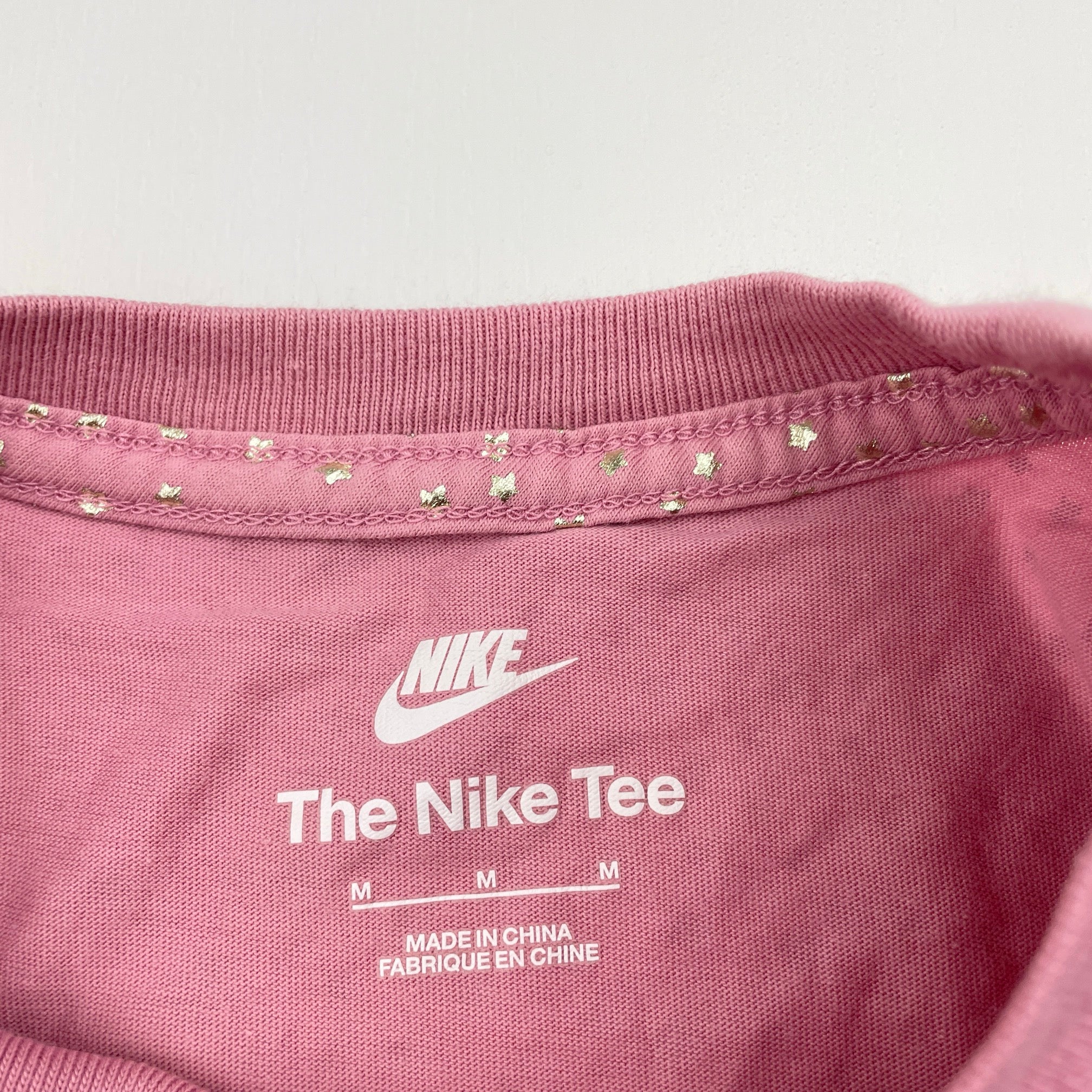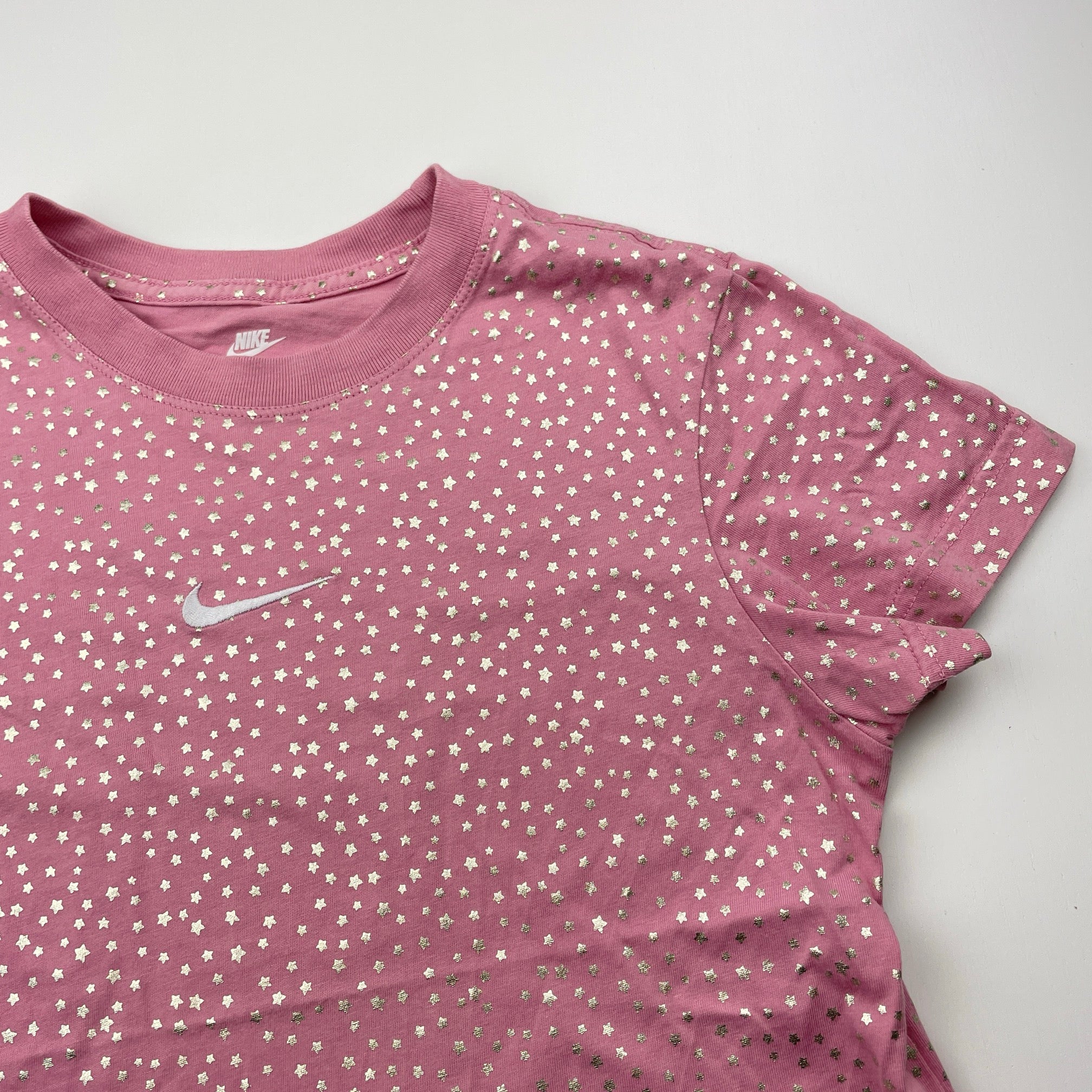 NIKE, pink cotton tee / top, gold stars, EUC, size 10-12,
