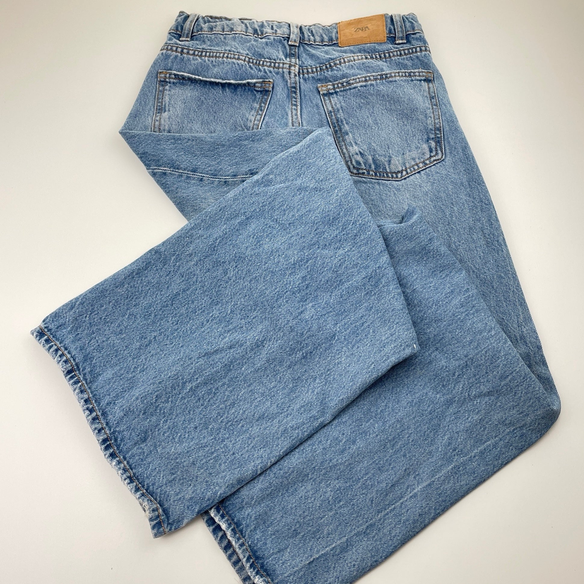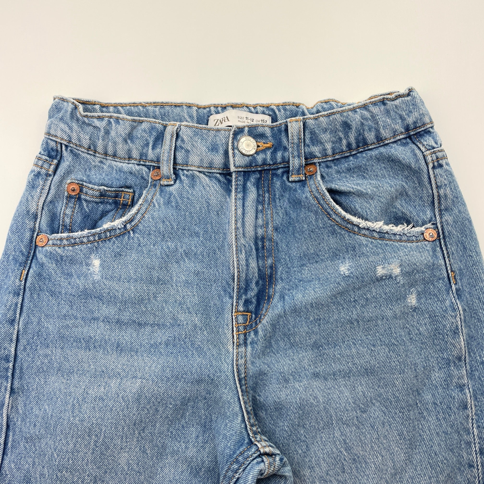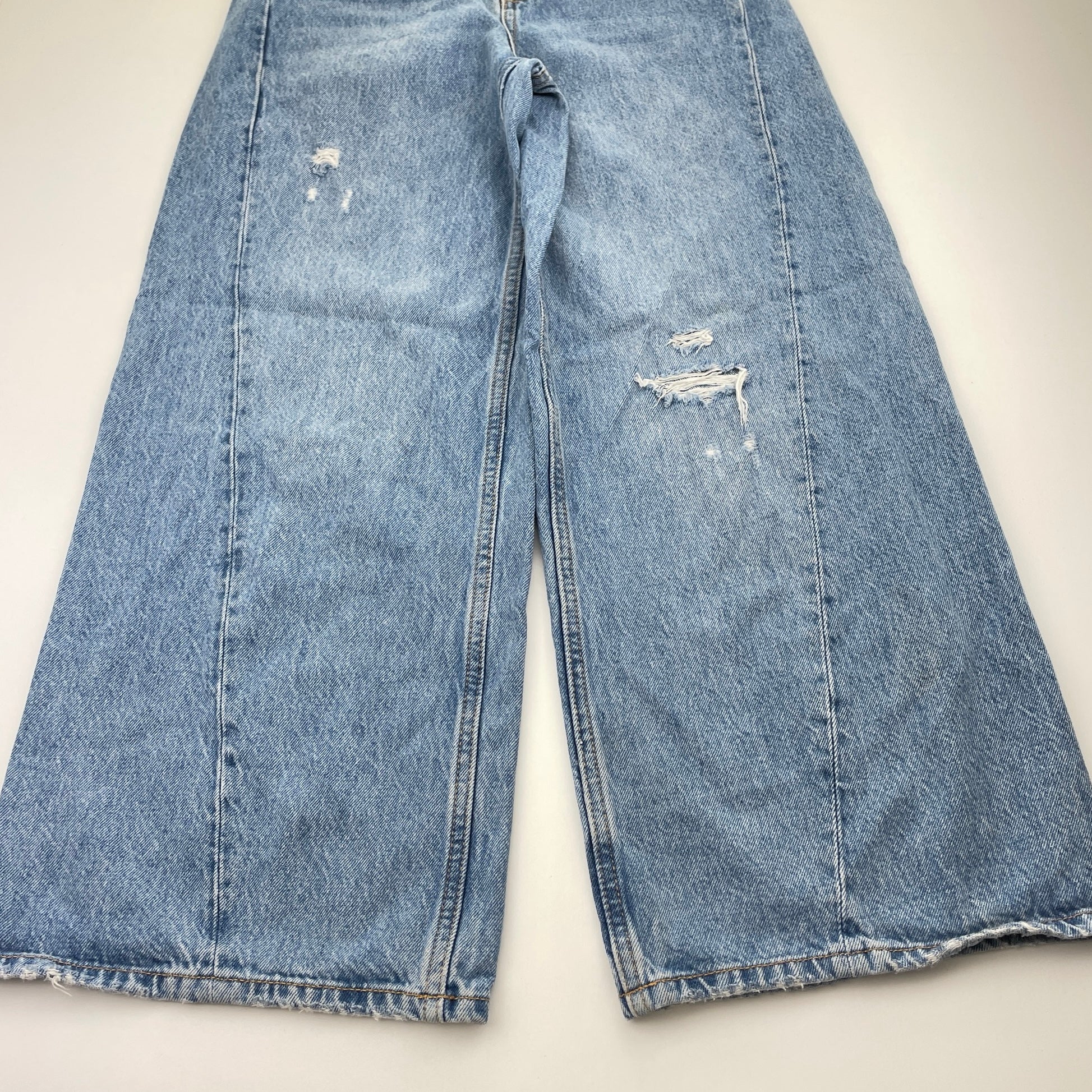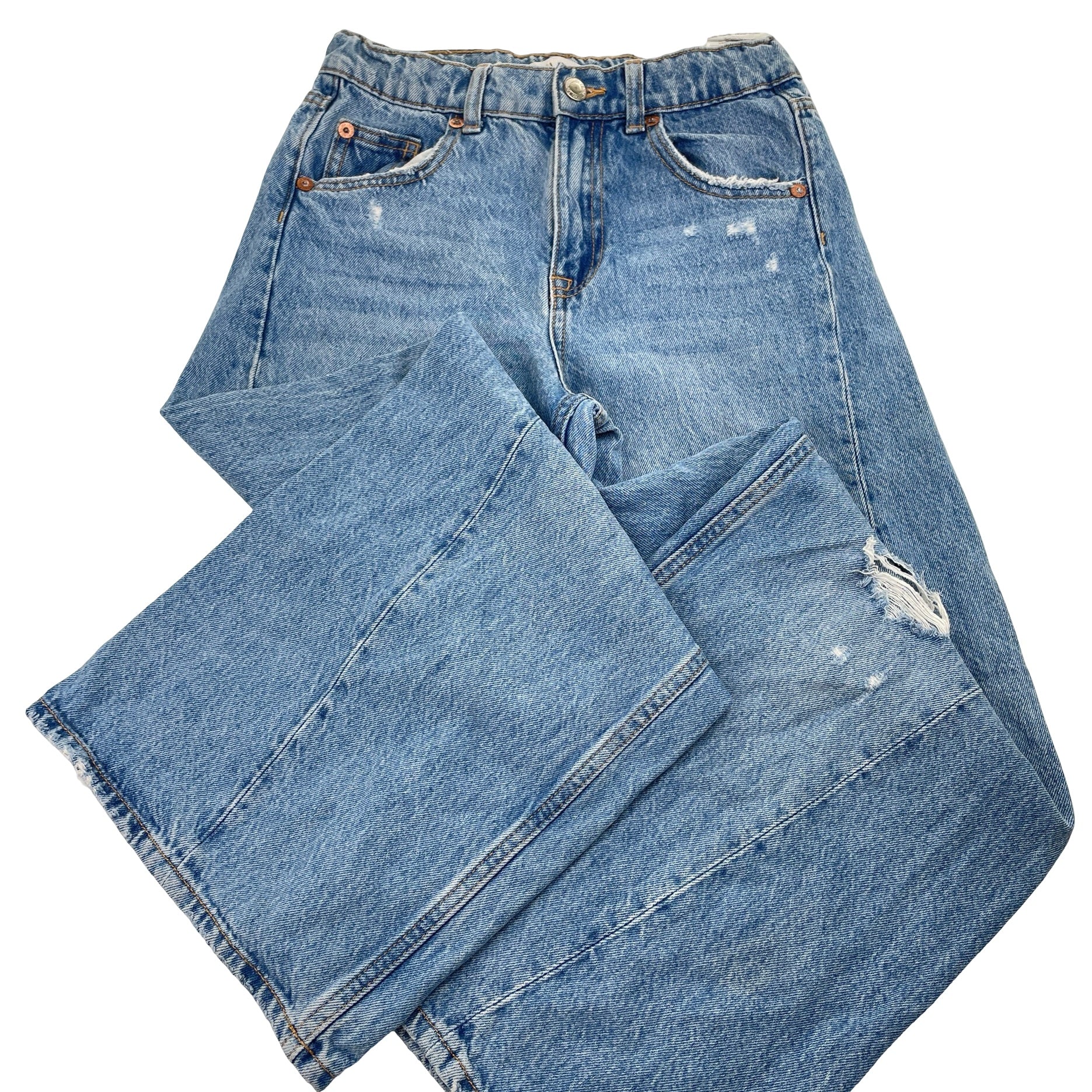 Zara, wide leg distressed denim jeans, adjustable, Inside leg: 60cm, FUC, size 11-12,